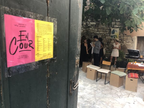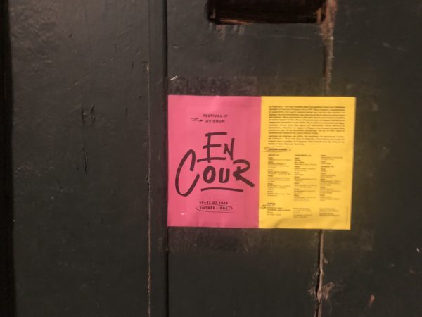« Le Festival “If —En Cour” consiste en l’occupation d’une cour intérieure à Avignon (23 rue des trois Colombes) pendant le Festival d’Avignon IN et OFF. Nous voulons y expérimenter la possibilité d’un autre espace-temps qui ne soit pas soumis à la logique de marchandisation des œuvres et de la mise en concurrence des artistes. Nous cherchons à créer des espaces qui rendent possibles un autre rapport à l’art, c’est-à-dire où ce rapport ne se réduit pas à de la consommation, ni à de la valorisation culturelle, où l’art n’est pas l’instrument d’une exclusion. Cela implique que nous refuserons que cet espace devienne un espace de promotion ou de vente. Nous ne cherchons pas des “programmateurs”, nous espérons de pouvoir partager quelque chose avec des gens, se rencontrer entre ami. e. s et camarades, chercher un rapport critique à nos travaux et peut-être construire par là de nouvelles solidarités. Ni IN, ni OFF, mais le conditionnel toujours en cours d’autre chose.
