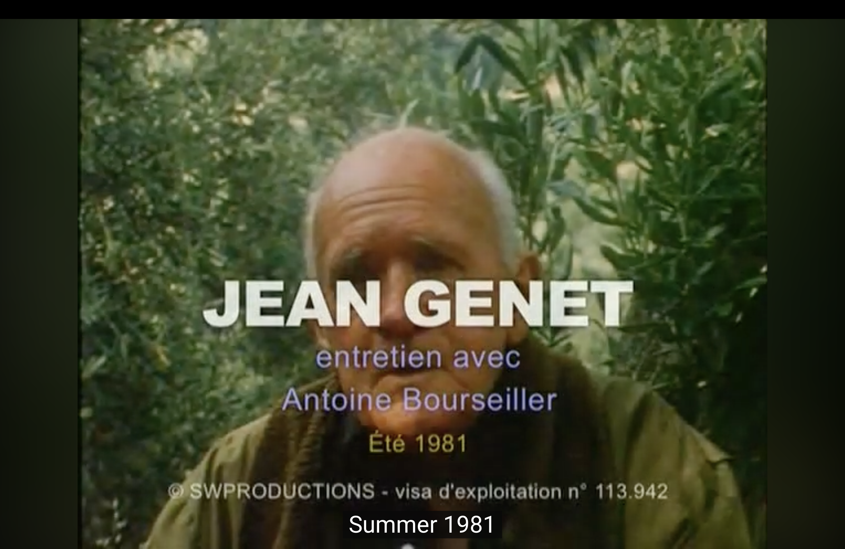 Produit par Danielle Delorme, à l’origine de la collection Témoins consacrée aux entretiens filmés, ce film tient moins du simple document que d’une œuvre à part entière de Jean Genet. L’écrivain y fut en effet pleinement partie prenante : choix des lieux, du long plan fixe, de la présence de la nature, des thèmes abordés comme de l’ordre même des séquences. Presque rien ne s’y fait sans lui. Tout porte à penser que les réponses furent longuement préparées — peut-être écrites, comme en attestent des notes conservées —, composant un véritable poème cinématographique. Pour en assurer la réalisation, c’est Antoine Bourseiller qui fut choisi. metteur en scène et écrivain, qui avait monté Le Balcon à deux reprises et avec lequel il était resté étroitement lié. Un premier entretien fut enregistré à l’été 1981, à Delphes, où Genet souhaitait se rendre ; il fut prolongé par un second tournage, quelques semaines plus tard, à Rambouillet, dans la demeure de Danielle Delorme. Coproduit par France 3, le film fut diffusé au lendemain de la mort de l’écrivain, en avril 1986.