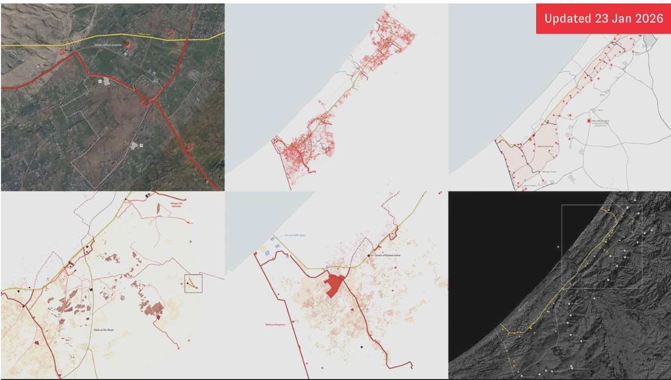 Sous l’arpentage patient de certains, la ville pourtant refuse de ne pas exister —retourne contre ses destructeurs la preuve de son désastre en signe de sa persistance. Forensic Architecture depuis Goldmisths et London University œuvre à faire raconter cette histoire des ruines et de leur langage. Munis de cartes et d’images satellites, ils bâtissent non des maisons mais des démonstrations, une géographie infra-ordinaire des territoires dévastés — machine de production de preuves rendues visibles. Sous l’impulsion de Eyal Weizman, c’est l’envers de l’architecture qui s’élabore : non plus le bel art de construire, mais celui de lire ce qui reste et de documenter la destruction : la ruine parle, à condition de savoir l’interroger. Les cratères dessinent des trajectoires ; les murs effondrés indiquent des angles de tir ; les cartes humanitaires révèlent les lignes d’enfermement. La violence n’est pas un chaos : elle est sa propre géométrie qui produit de l’espace et configure le territoire. Les murs tombés deviennent des phrases et les impacts, des preuves. Un fragment suffit à reconstituer un espace. Une fissure indique un mur. Ce que la destruction a voulu effacer, elle l’a inscrit : Gaza existe dans ses décombres comme dans aucun cadastre. Forensic Architecture cartographie les massacres de masse à Gaza, espace de violence trouée avec ses « zones soi-disant sûres », ses evacuation orders et ses lignes de fuite forcées. On y voit un territoire reconfiguré par la violence, où les « routes de survie » deviennent autant de lignes de menace