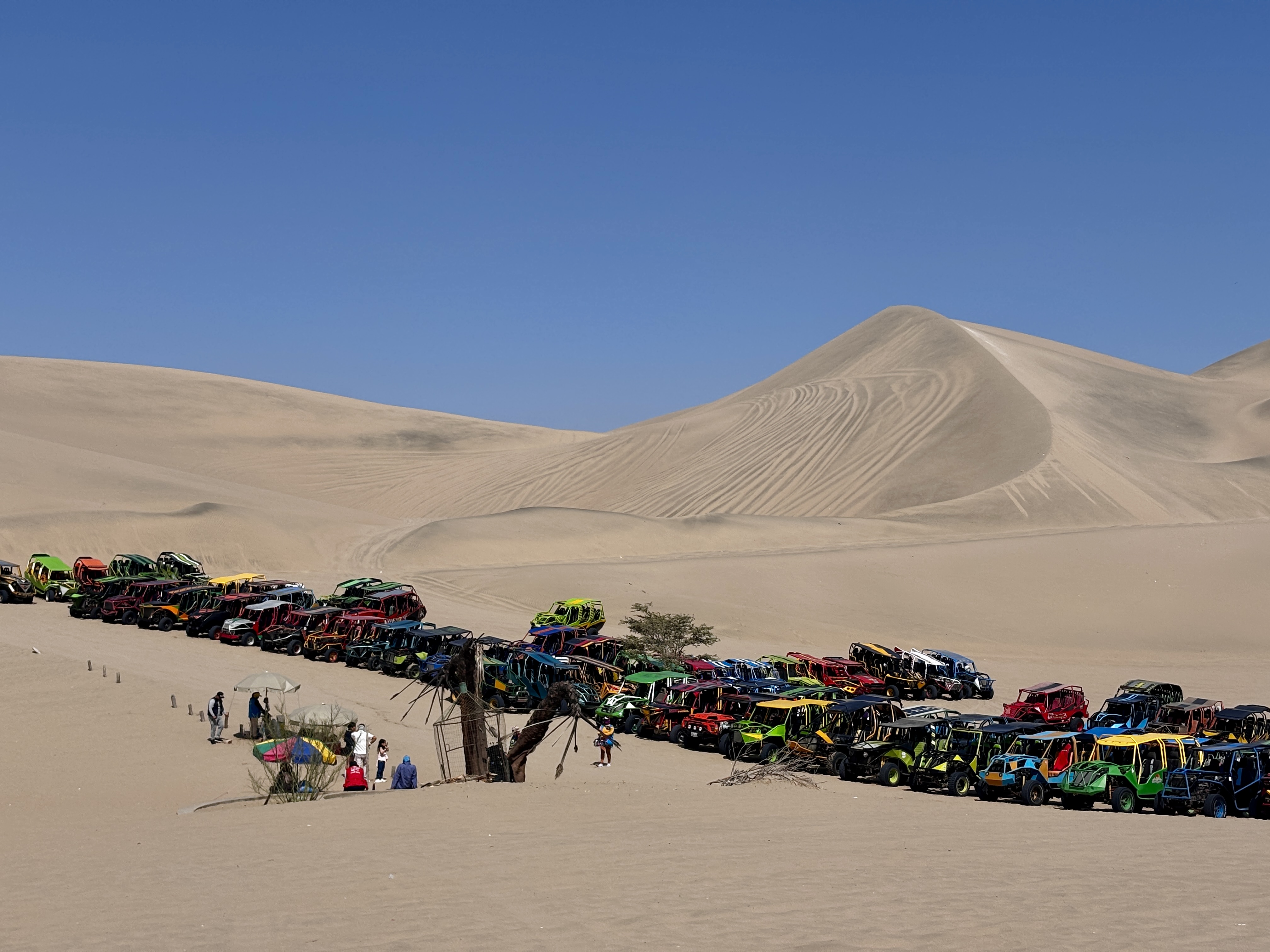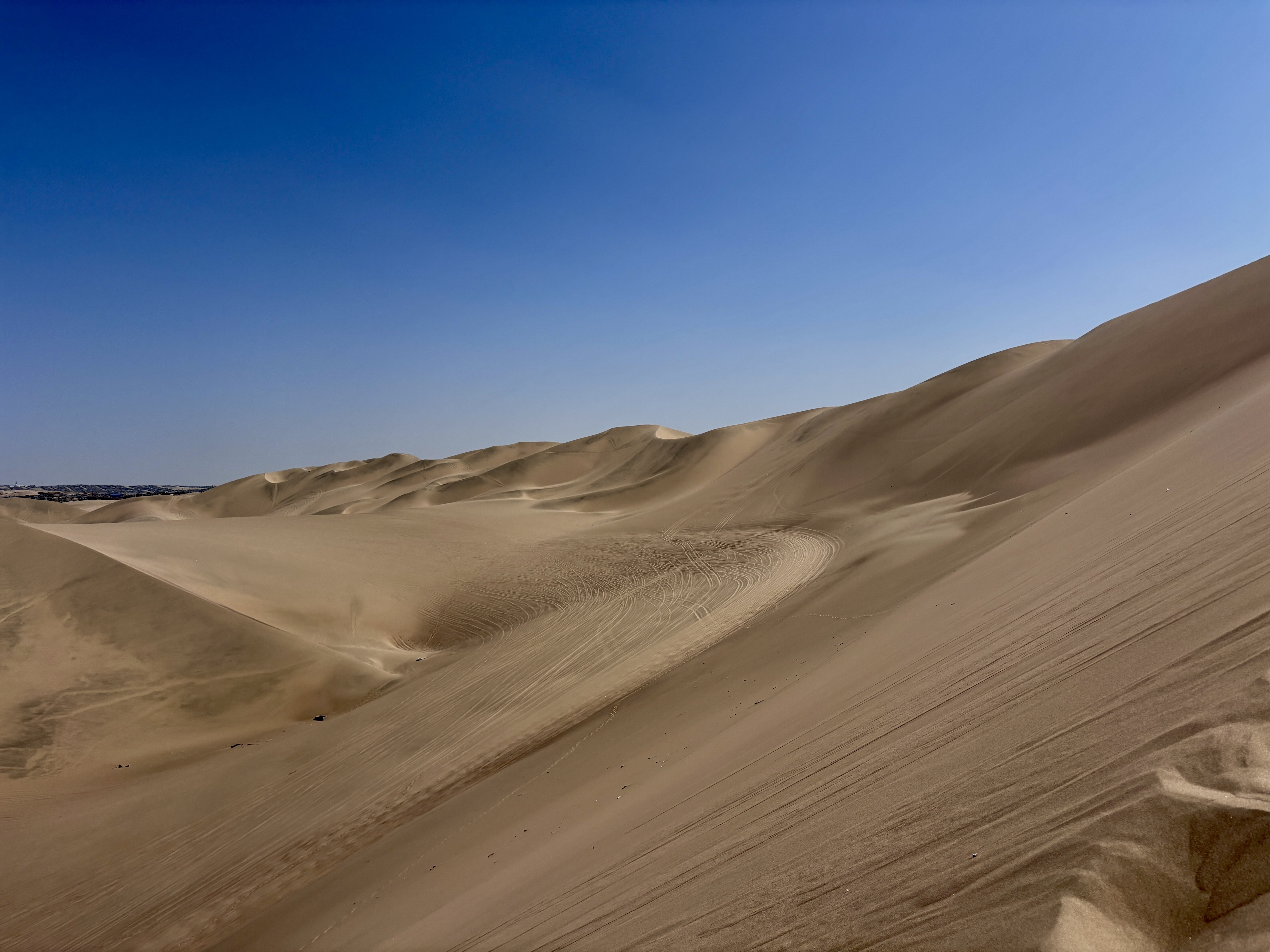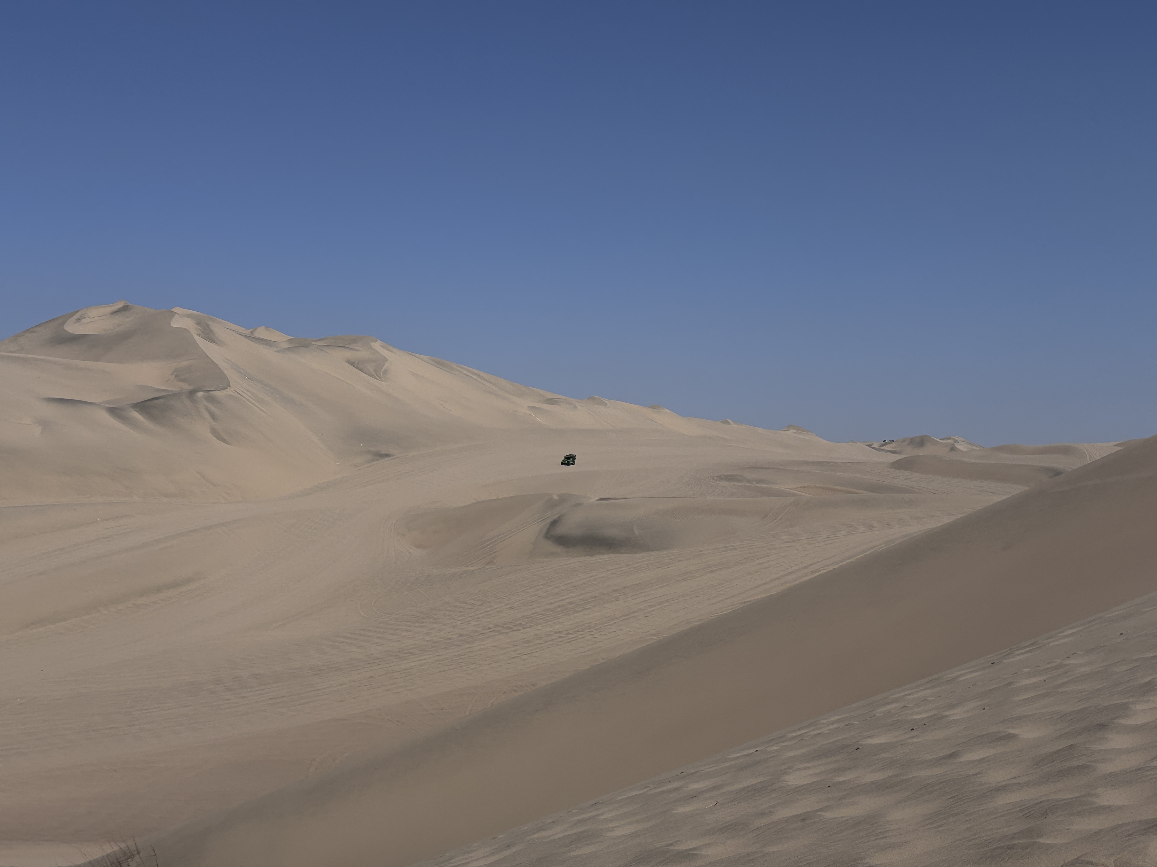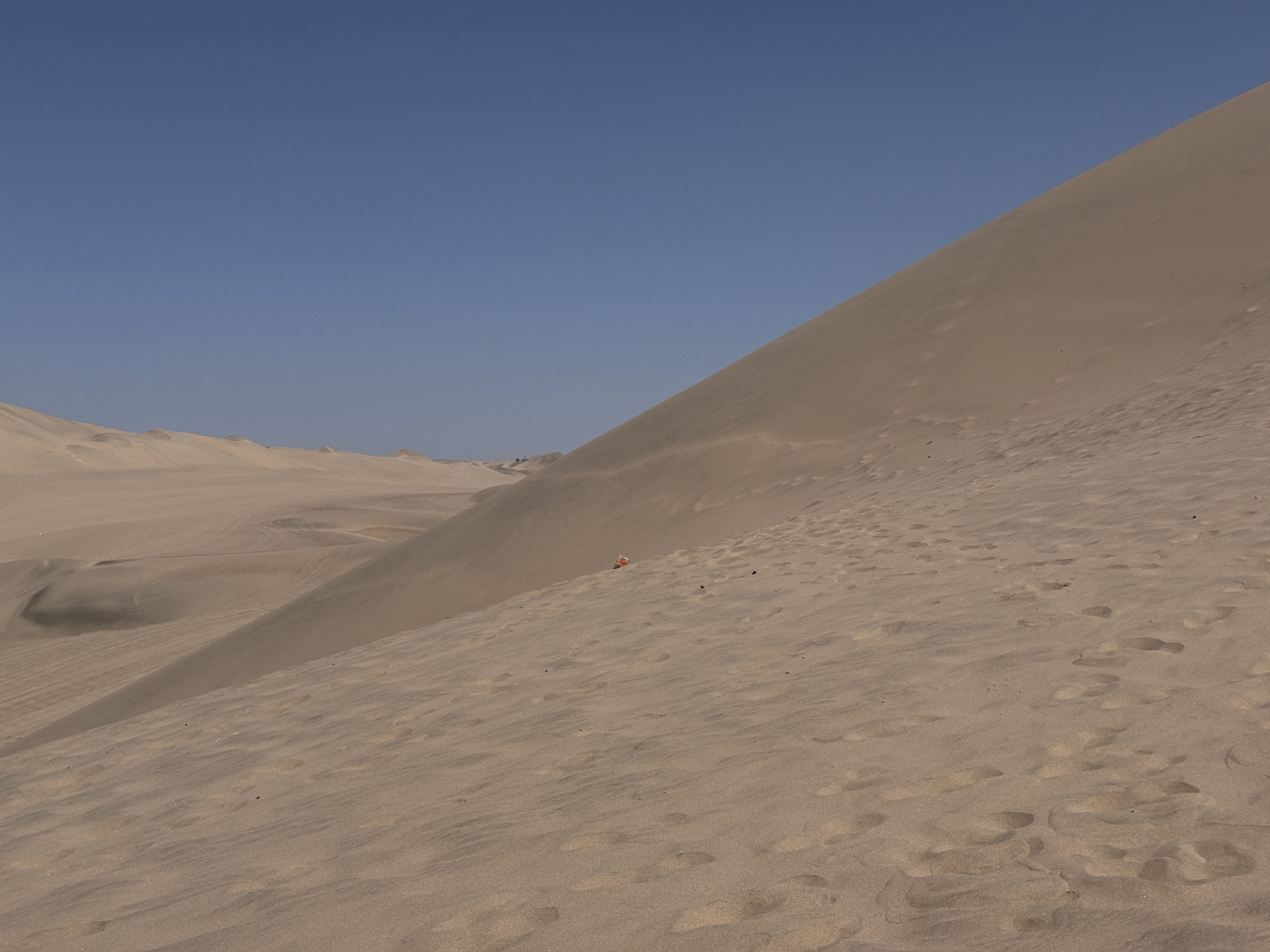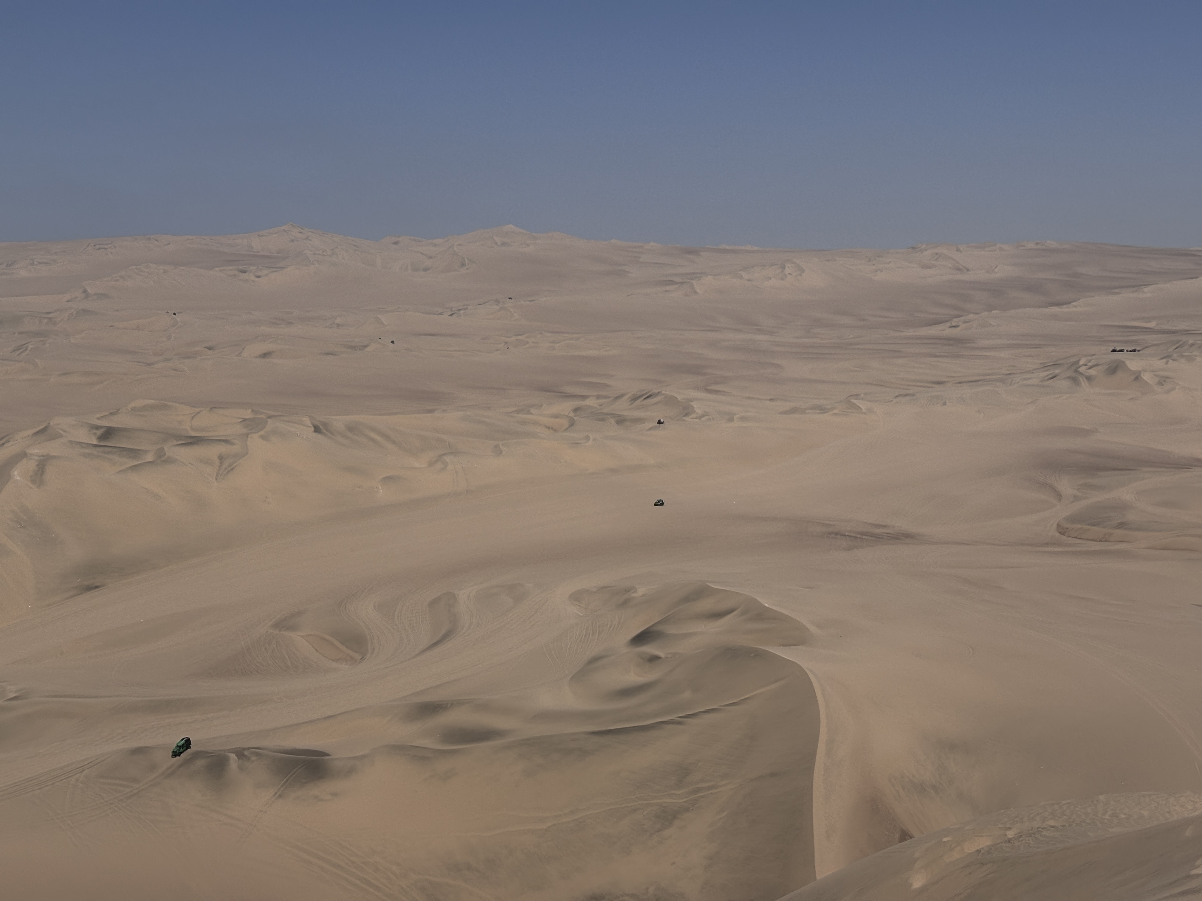 De Huacachina, le 17 avril, remontant les crêtes des dunes à l’ouest de l’oasis, entre le Pacifique et les premières pentes des Andes, sidéré par l’irréel des sables comme des vagues figées, entendre au loin les hurlements gras des buggies chevauchant sous le vent brûlant, chercher l’illusion d’un autre monde.