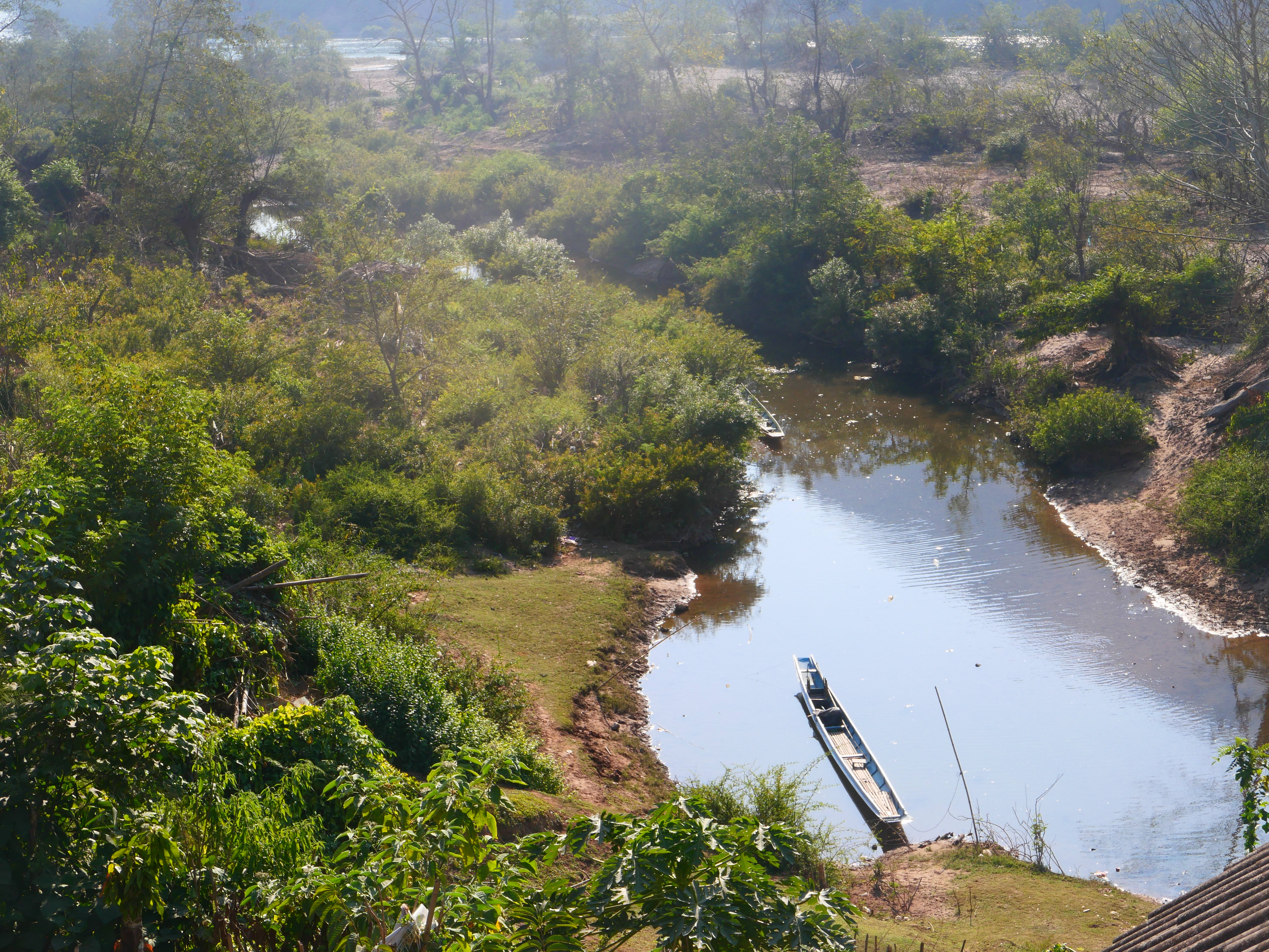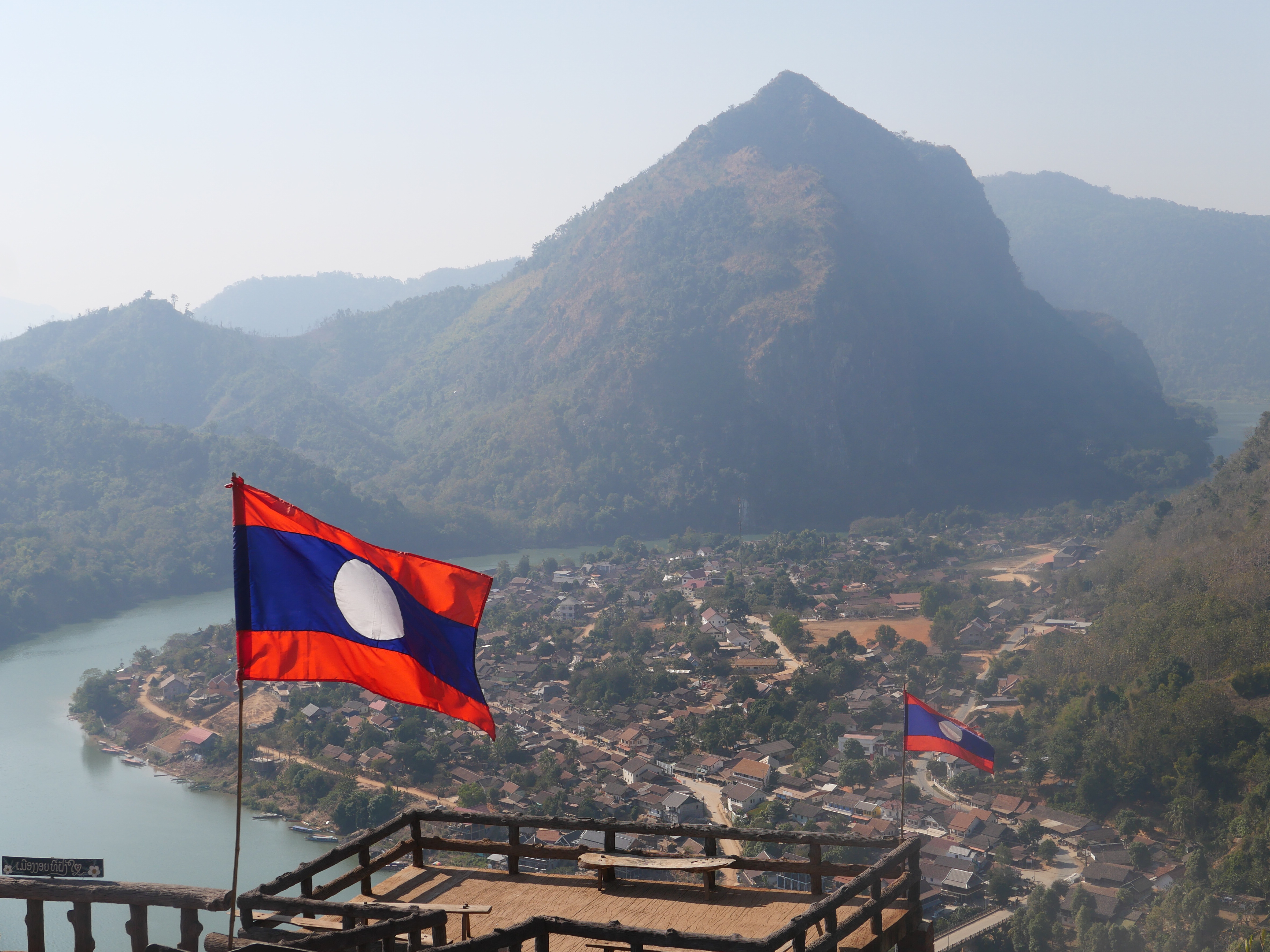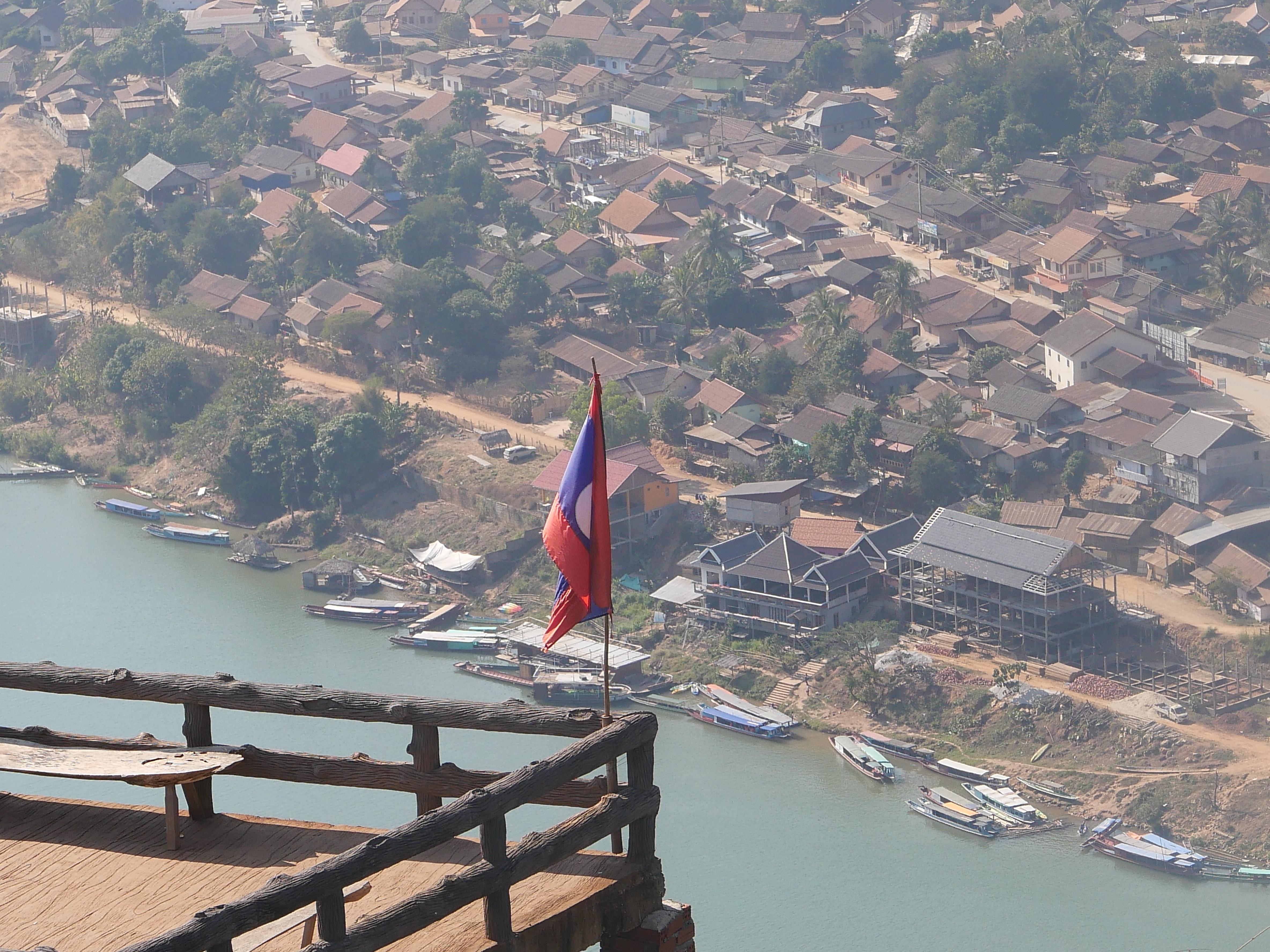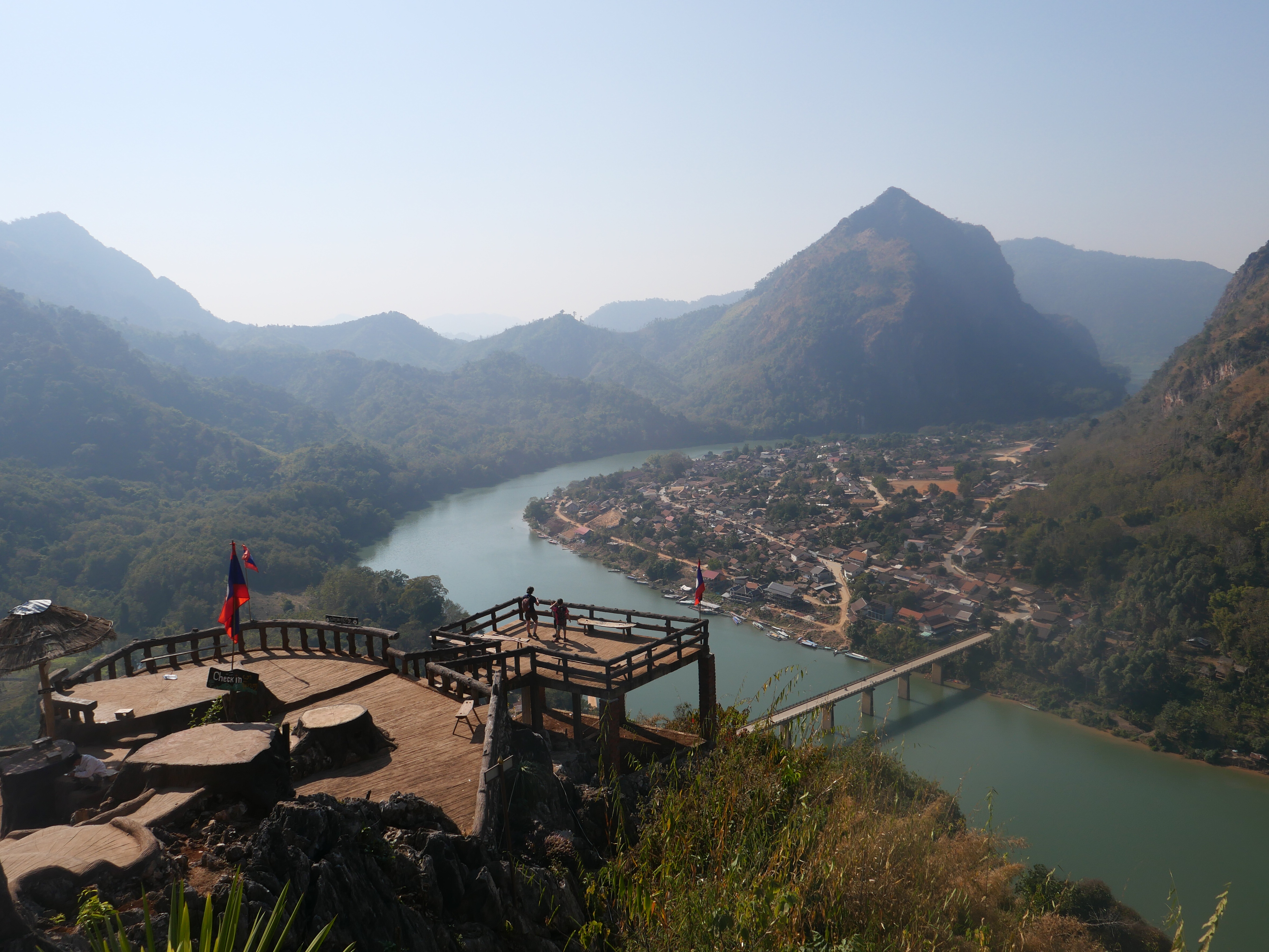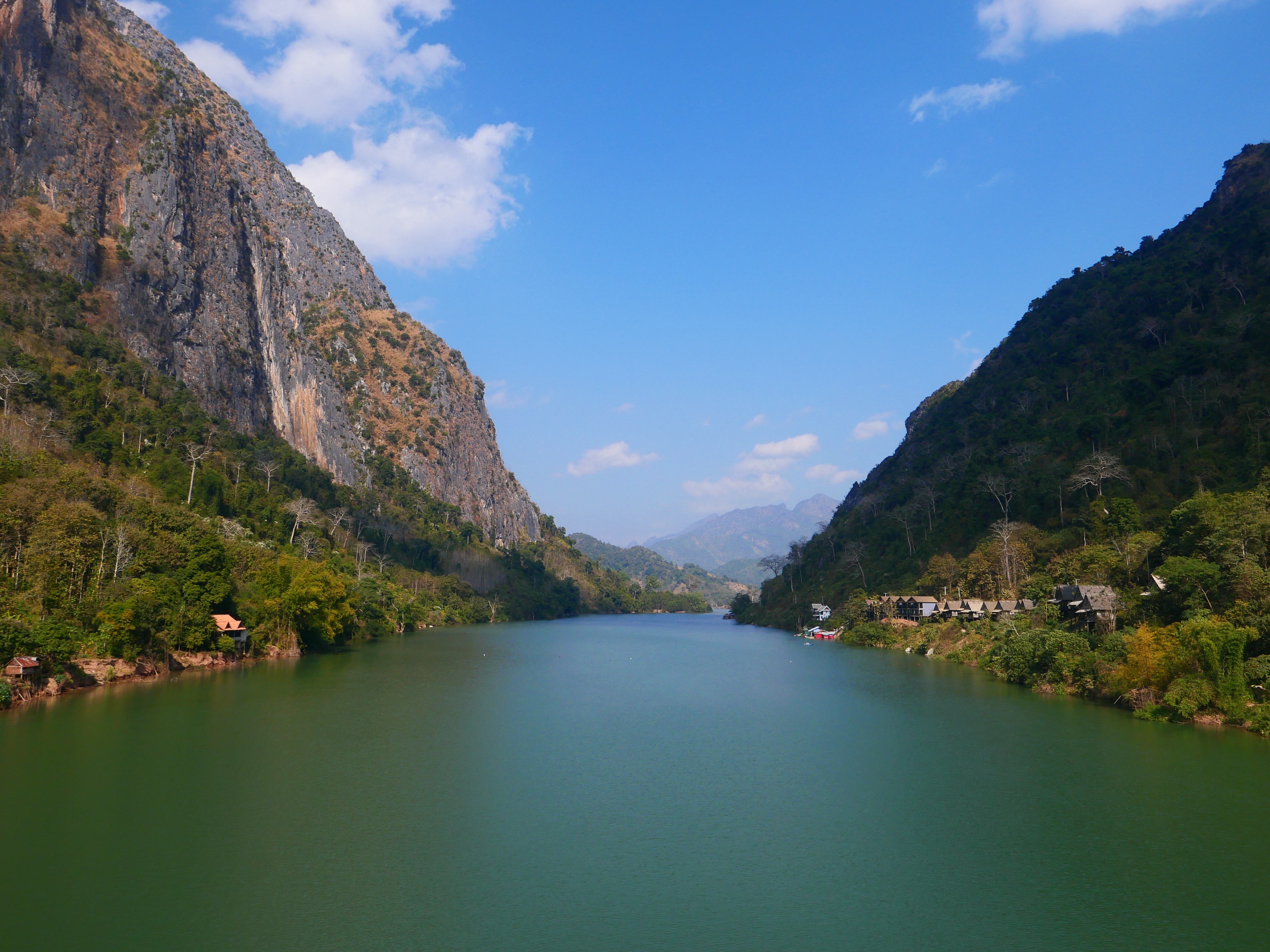 Le Laos, enclavé entre la Thaïlande à l’ouest, la Chine au nord, le Vietnam à l’est, et le Cambodge au sud est au cœur de la rose des vents : univers aux mille frontières, mais sans bord : si le pays est interdit d’accès à la mer, c’est aussi une terre d’eau striée de ces veinules qui se jettent tous désespérément dans le Mékong. Ici, c’est la Nam Ou qui serpente. Il y a peu, on pouvait la remonter depuis Luang Prabang, mais les barrages levés partout sur le fleuve par les puissances charognes alentour rendent la route par bateau désormais impossible.