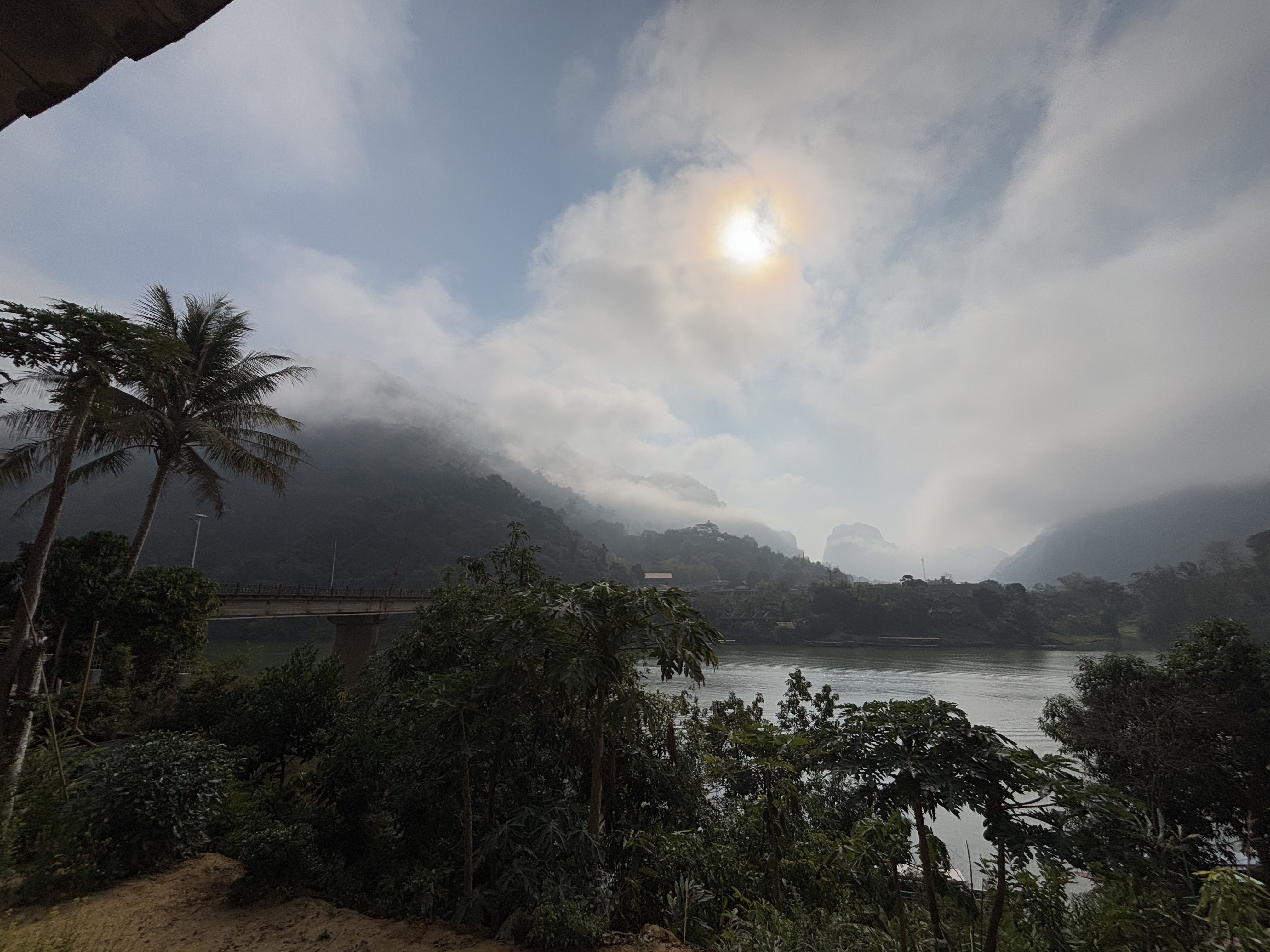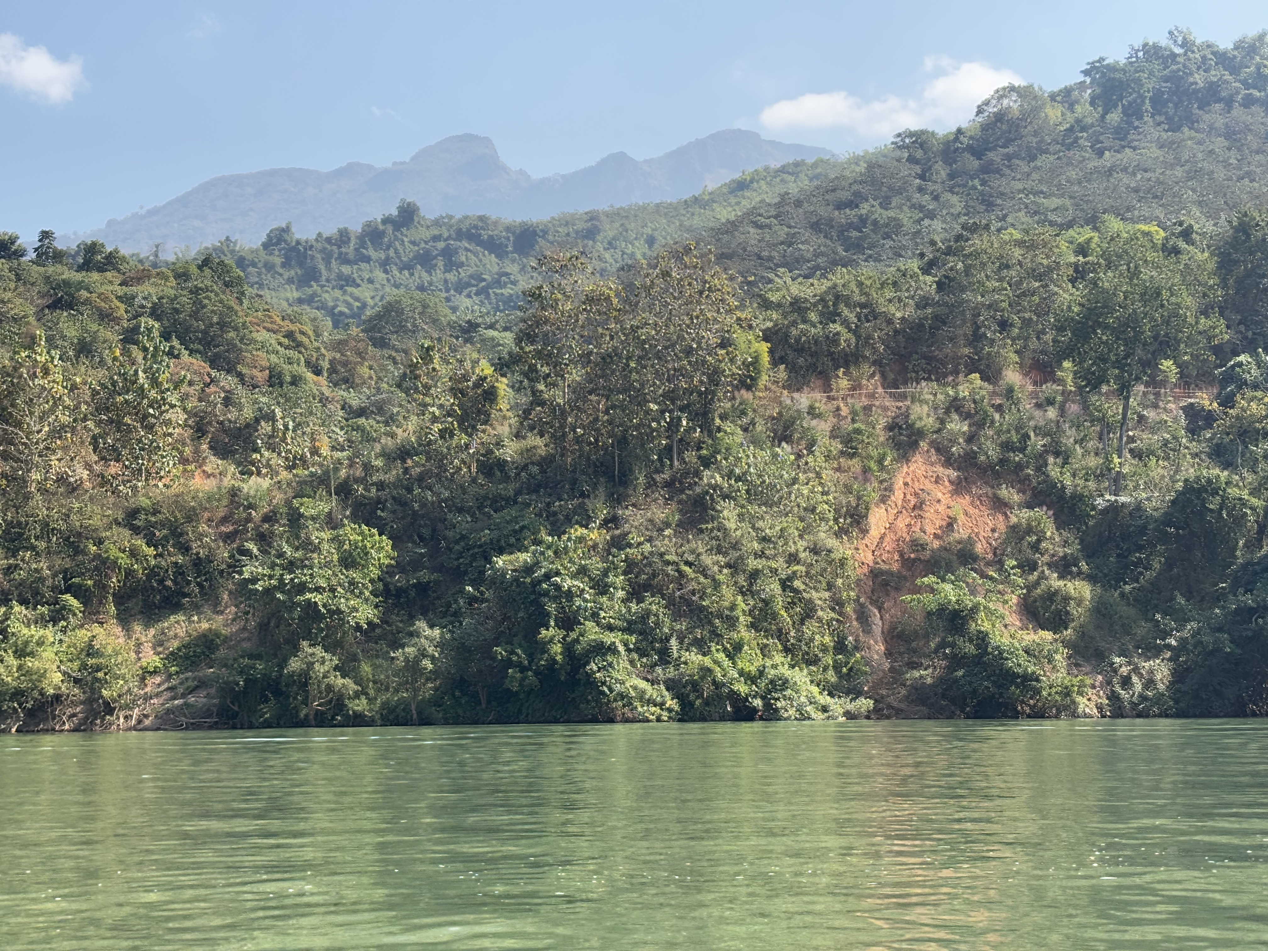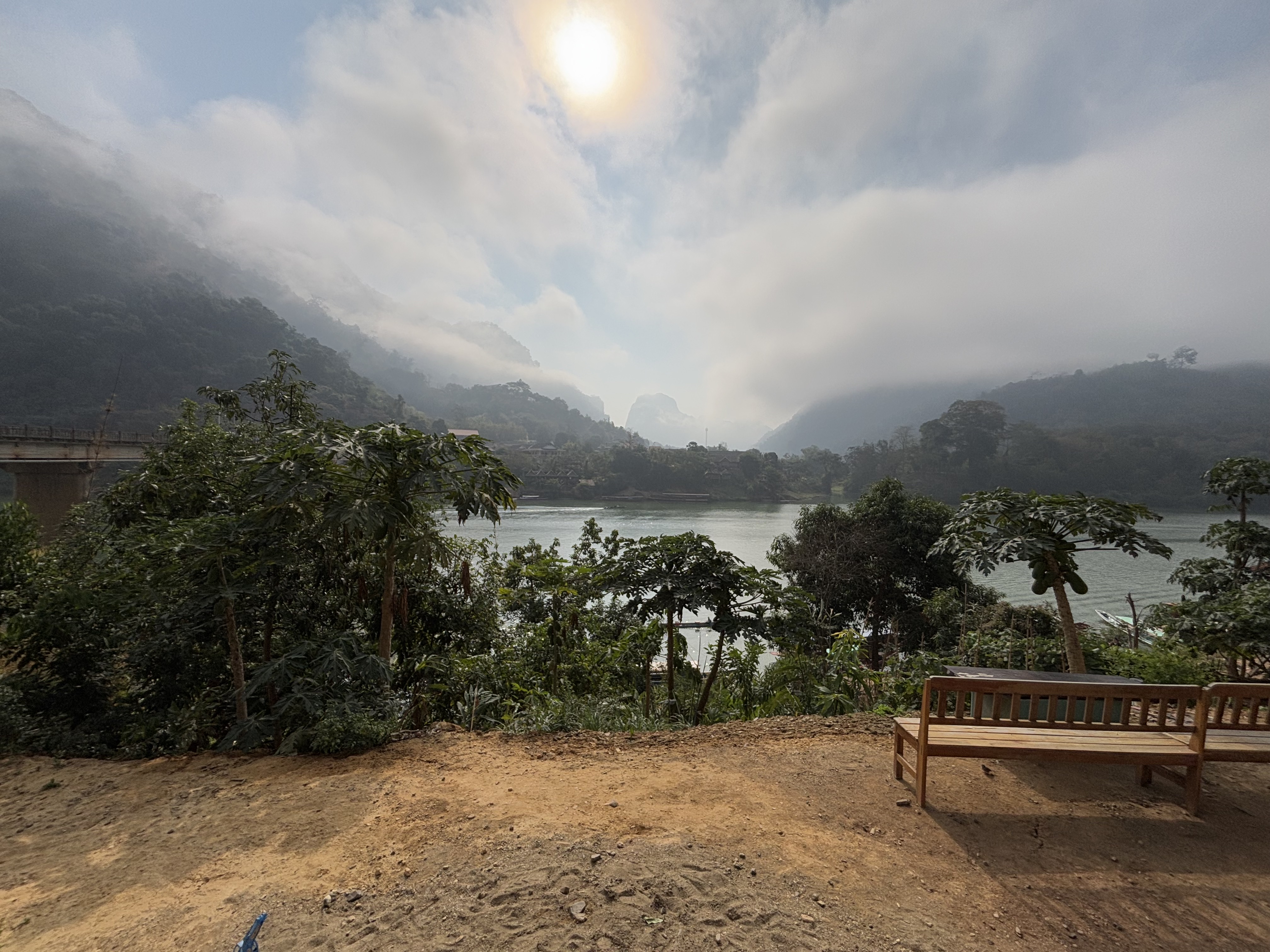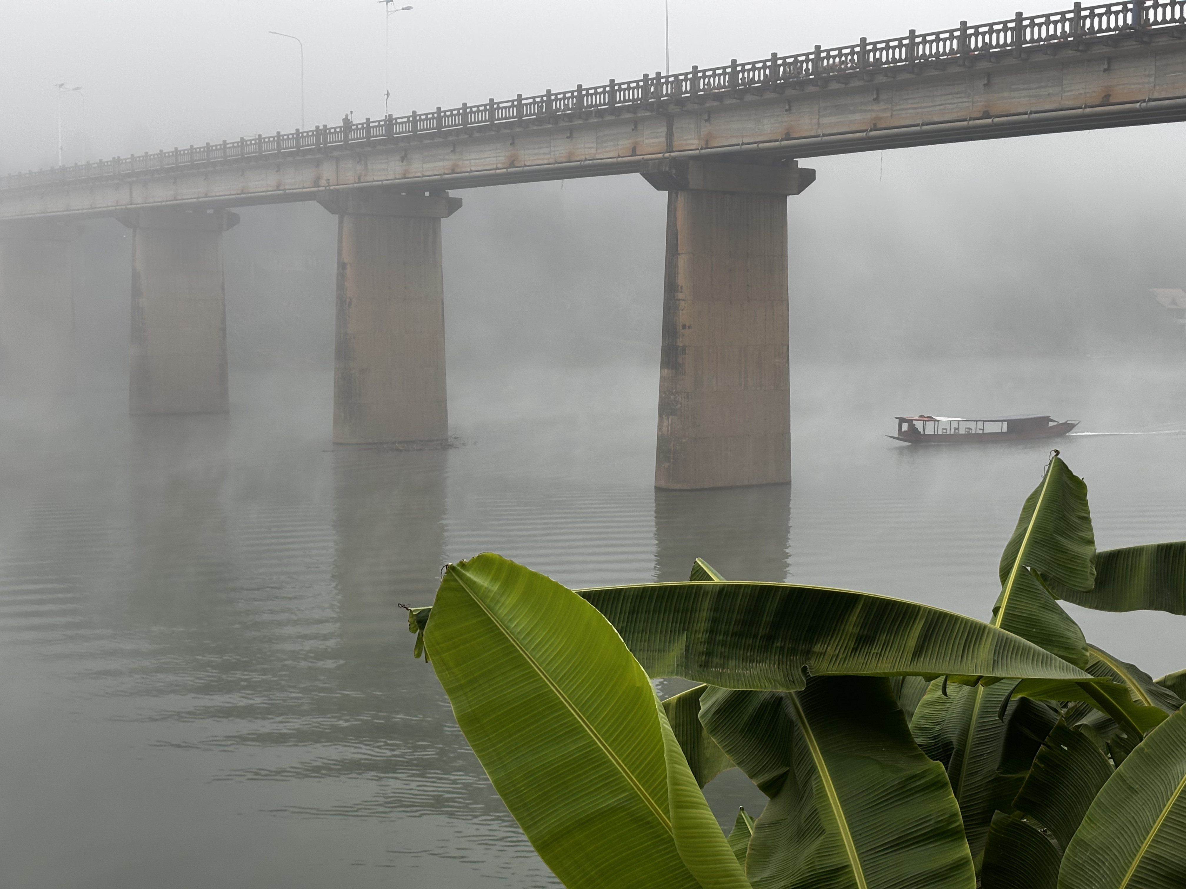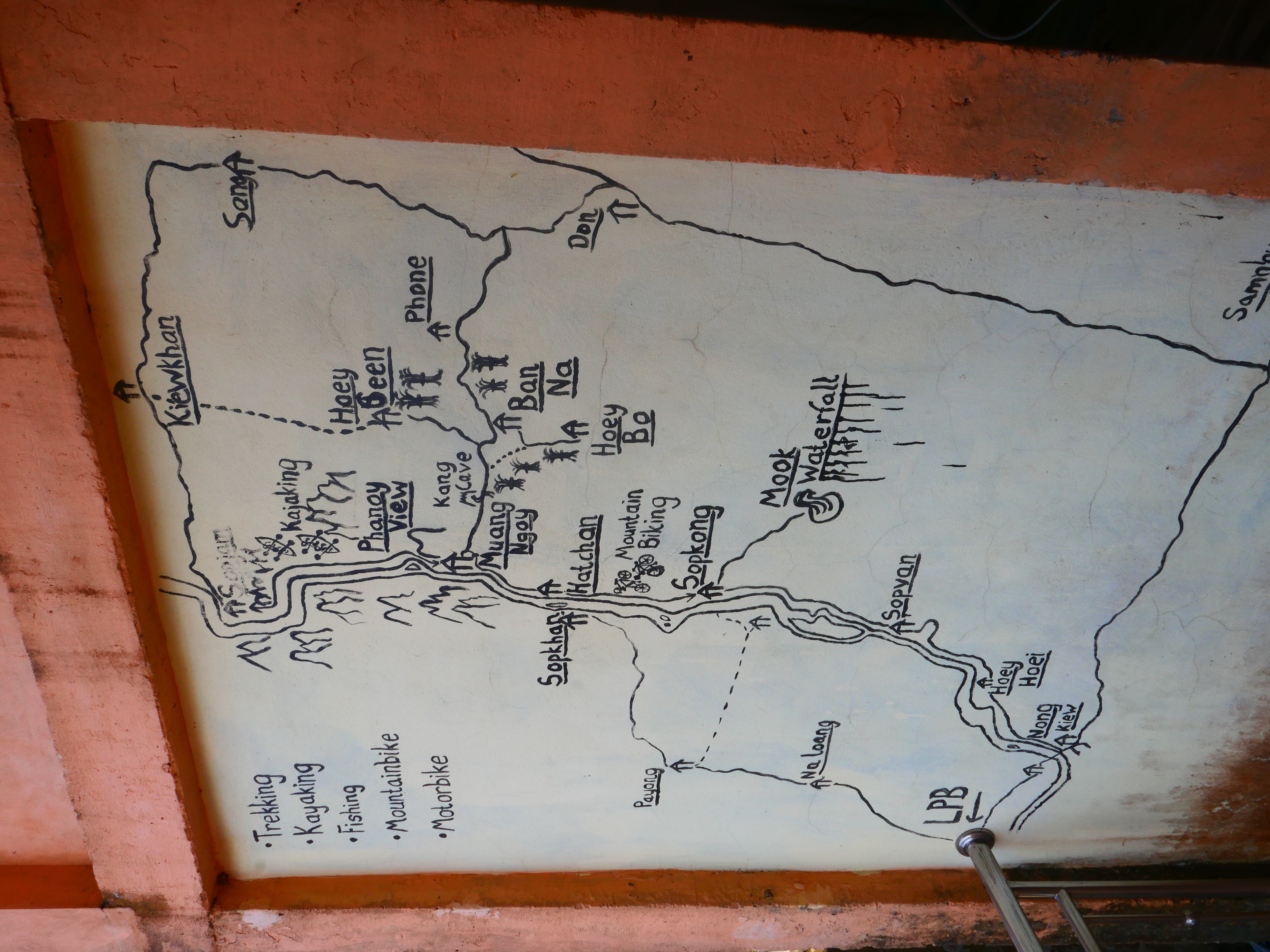 Le Laos, enclavé entre la Thaïlande à l’ouest, la Chine au nord, le Vietnam à l’est, et le Cambodge au sud est au cœur de la rose des vents : univers aux mille frontières, mais sans bord : si le pays est interdit d’accès à la mer, c’est aussi une terre d’eau striée de ces veinules qui se jettent tous désespérément dans le Mékong. Ici, c’est la Nam Ou qui serpente. Il y a peu, on pouvait la remonter depuis Luang Prabang, mais les barrages levés partout sur le fleuve par les puissances charognes alentour rendent la route par bateau désormais impossible.