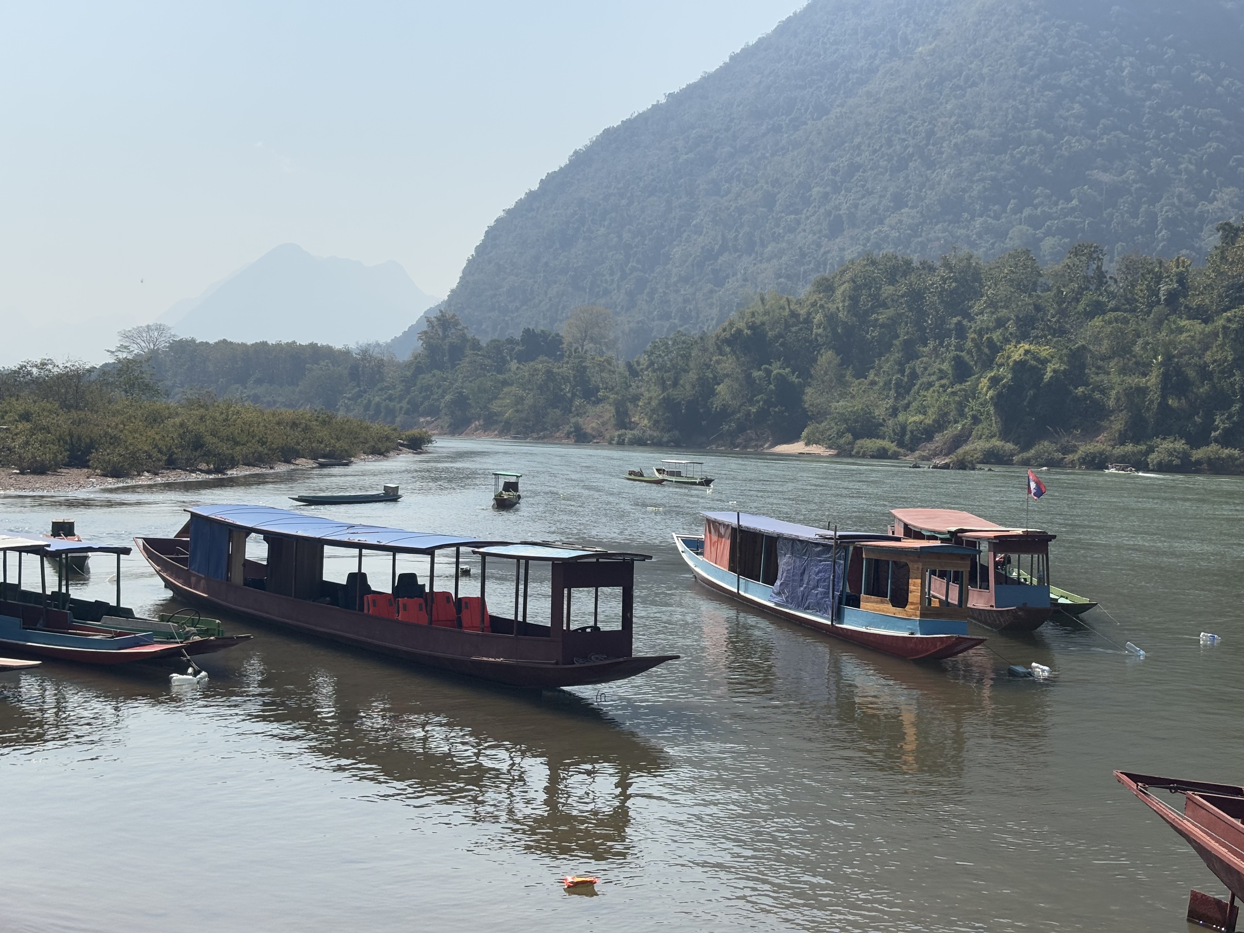 On saute de la voiture qui repart presque aussitôt en sens inverse, on lève les yeux, on est cerné : par les sommets karstiques couverts de forêts, par la rivière Nam Ou qui semble amorcer son virage ici pour nous encercler, par toute cette beauté ahurissante qui saute au visage.