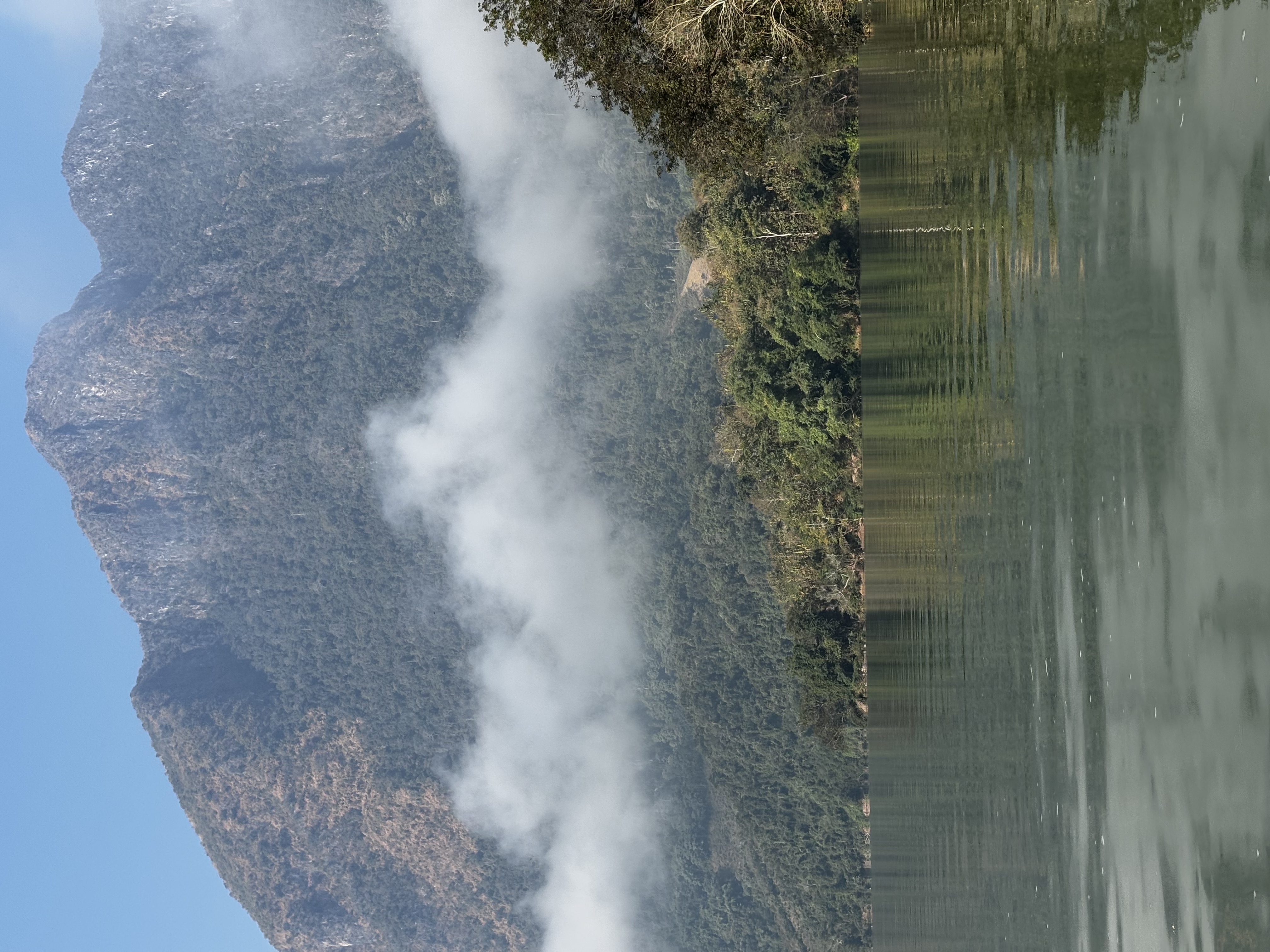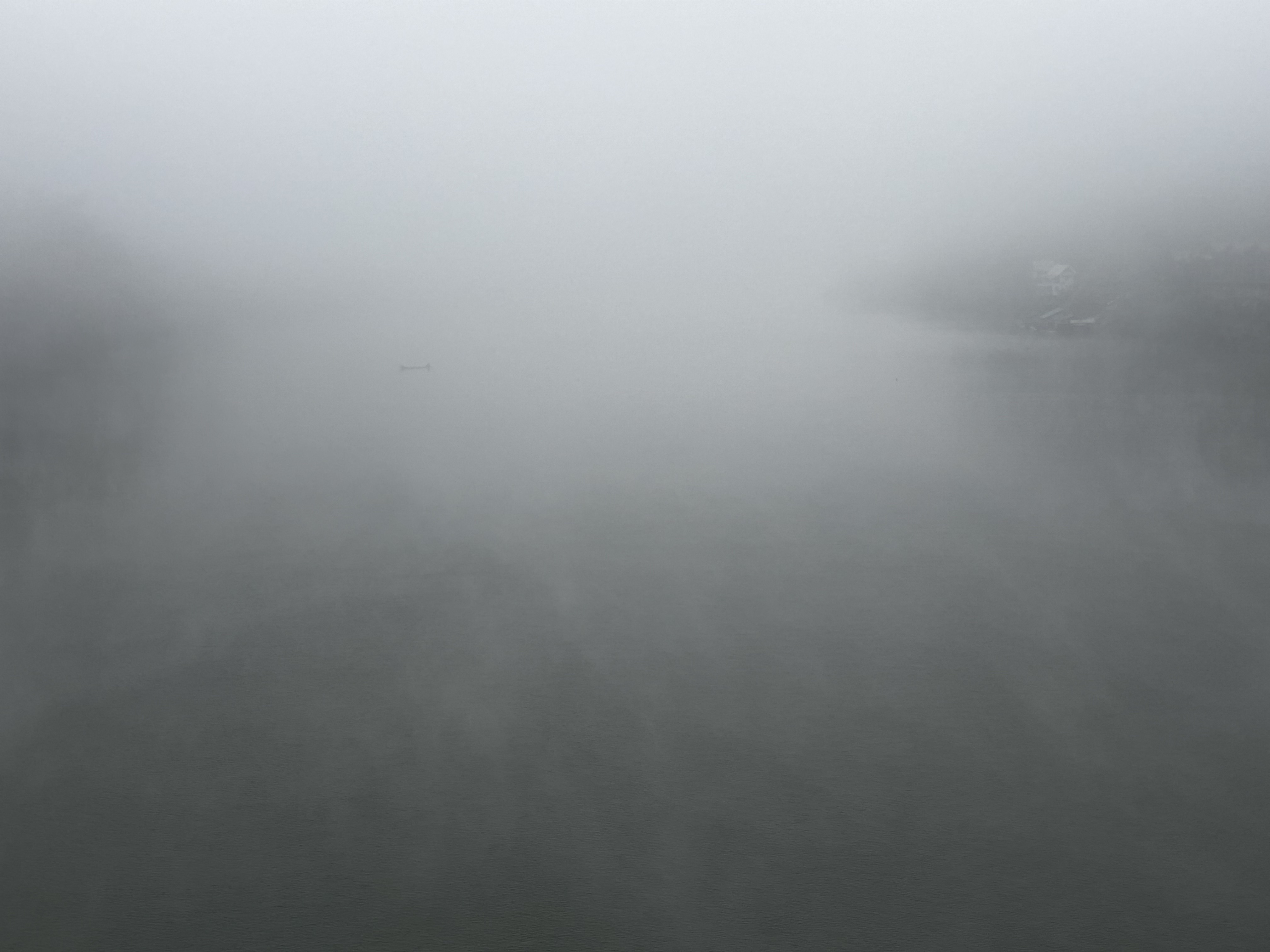 Le matin, la vallée disparaît sous la brume épaisse qui ne laisse rien voir que quelques apparitions de forêts sous les trouées. Et le jour, la chaleur recouvre tout.