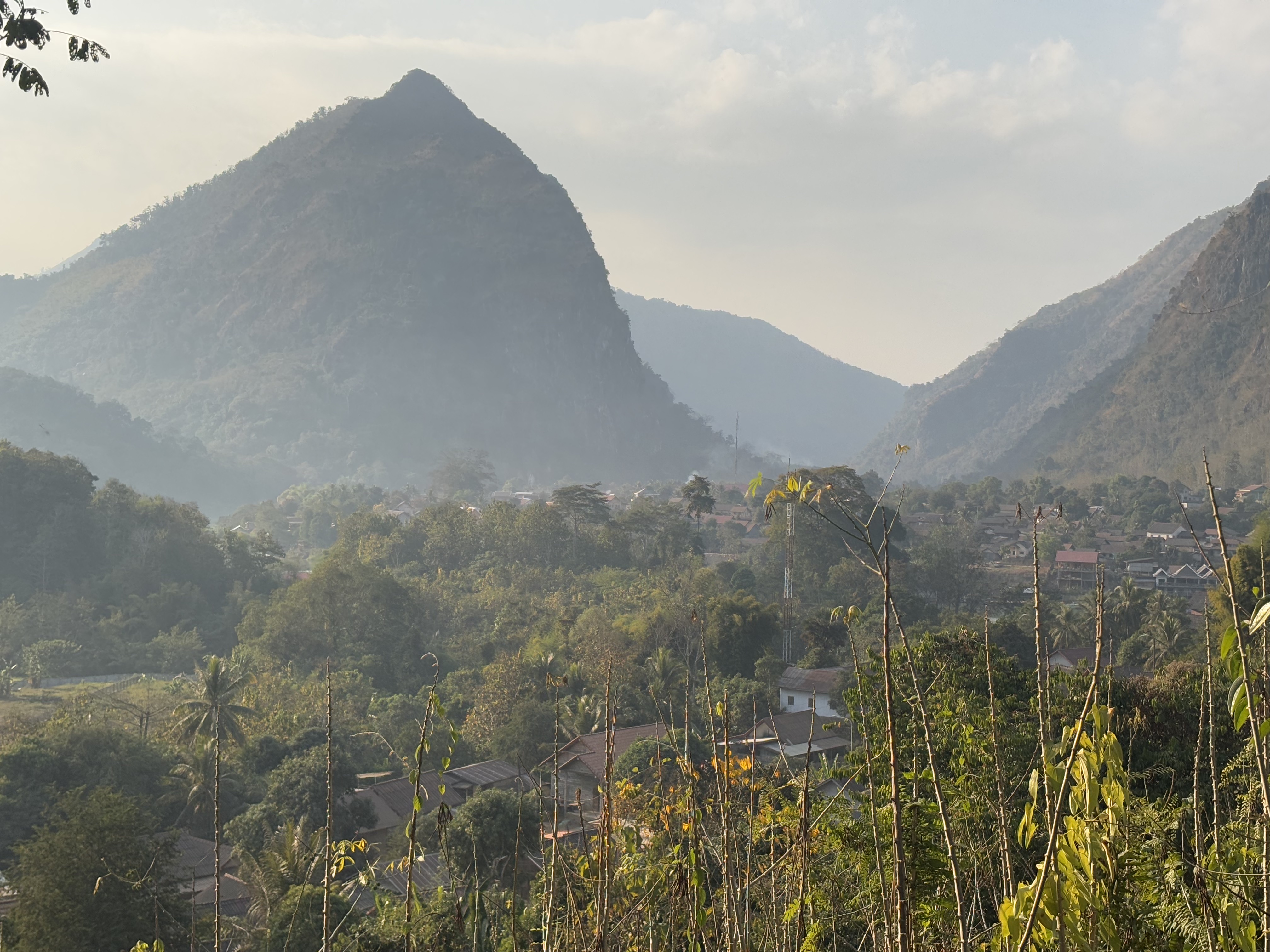 C’est à quelques heures de mauvaise route depuis Luang Prabang, en tournant le dos à la ville et en remontant le fleuve : le bitume d’abord défoncé laisse place à une piste de poussière au milieu de laquelle dorment les chiens, les vaches qu’on contourne en s’excusant presque, d’un coup de klaxon timide. Et puis, on arrive.