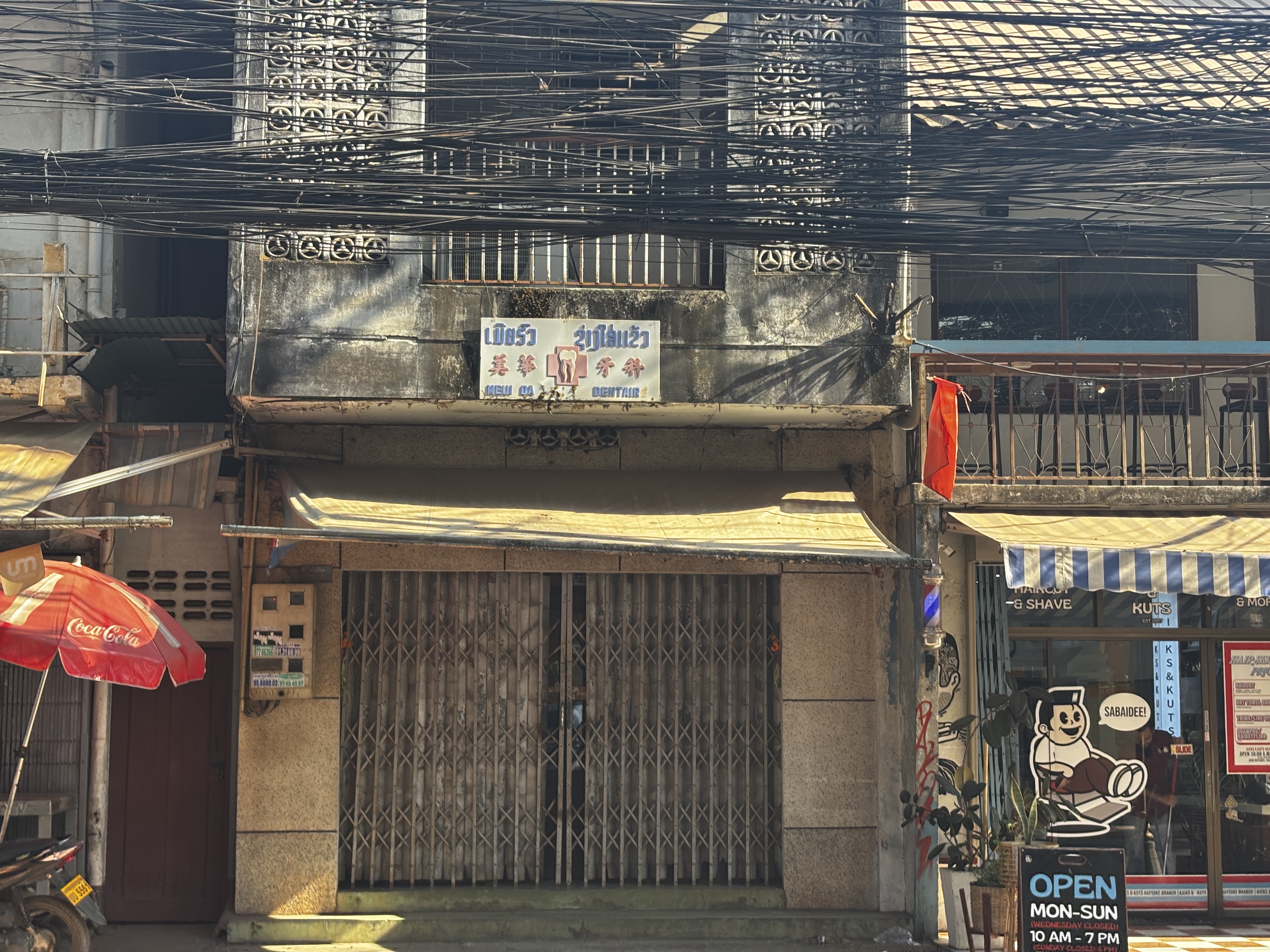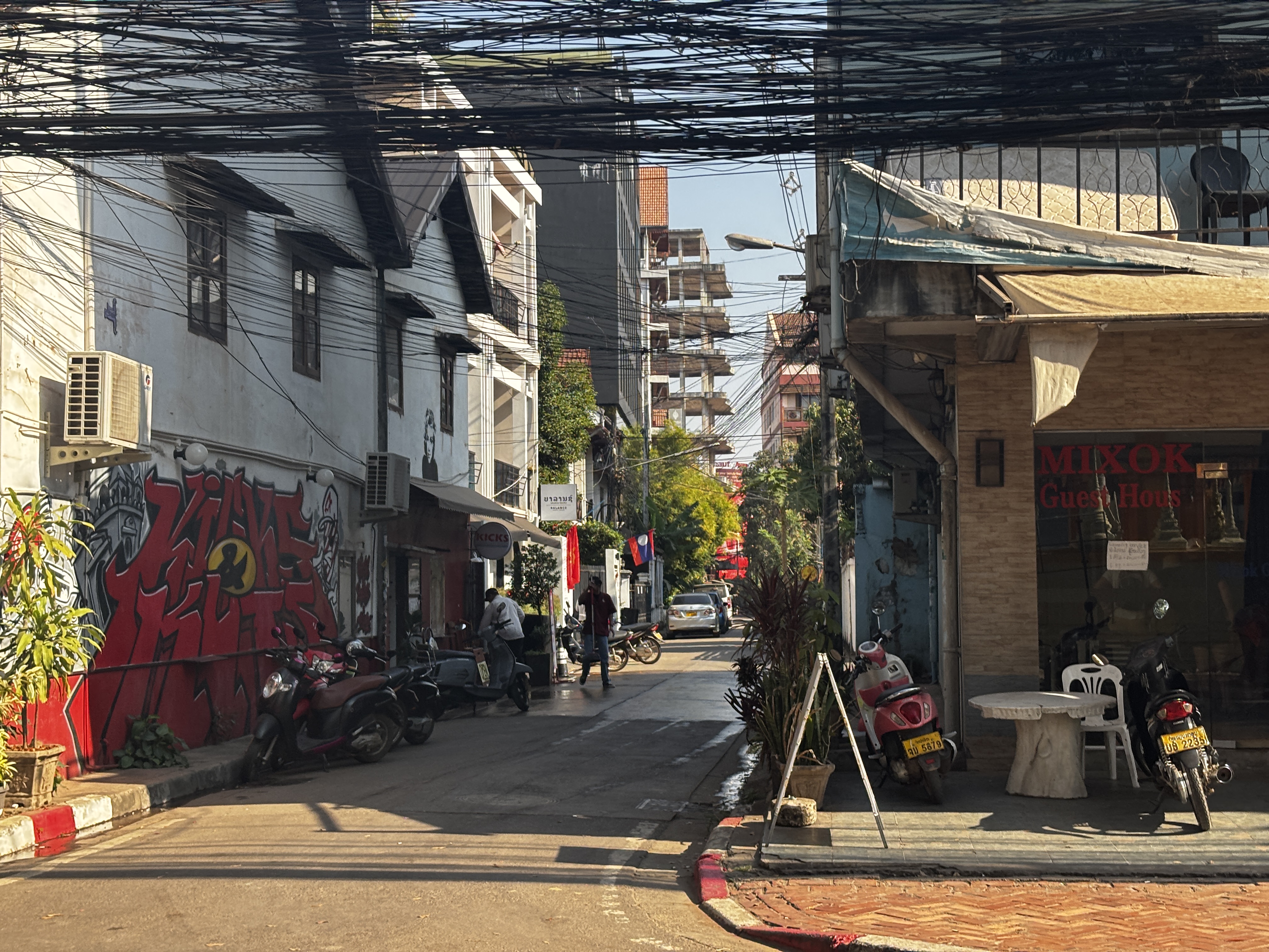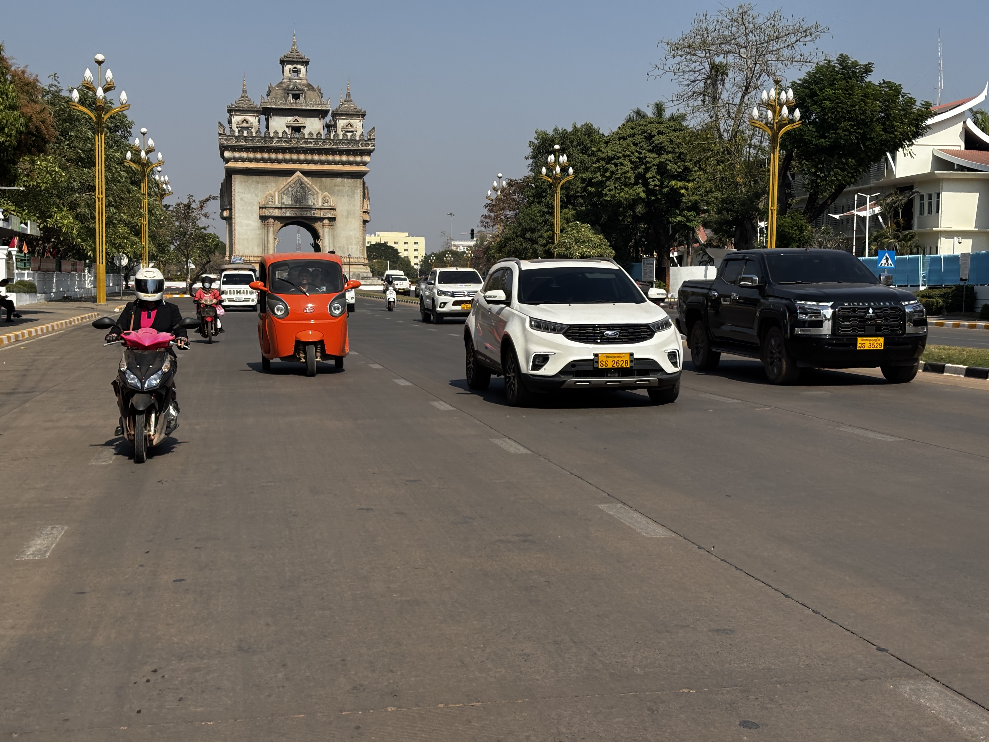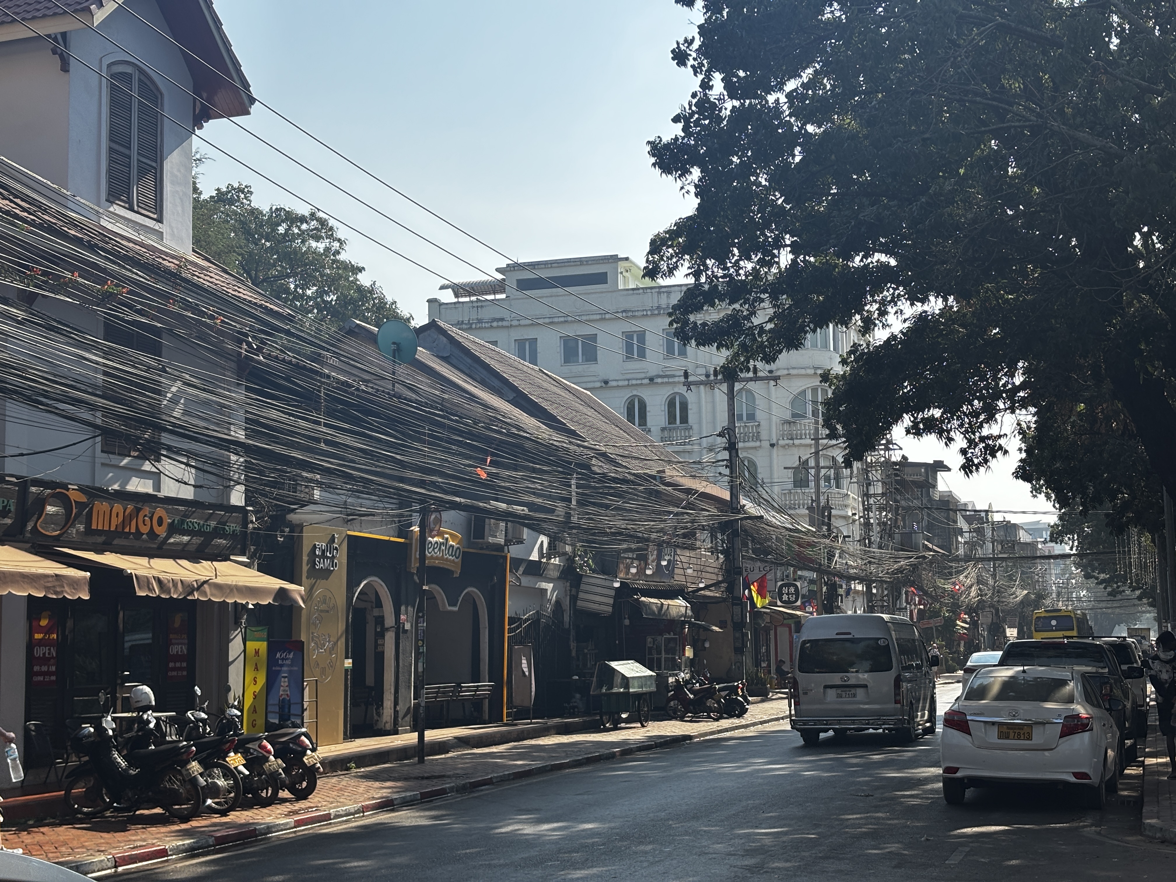 La lumière s’écrase sur les rues. Vientiane paraît posée sur elle-même, immobilisée dans sa torpeur. On y glisse plus qu’on ne marche, entre bâtiments bas et panneaux effacés. Le temps n’a pas d’accroche ici, mais dérive.