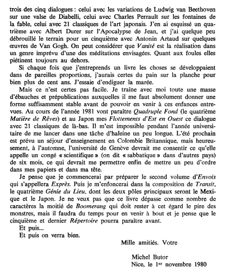 Accueil > ANTHOLOGIE PERSONNELLE | PAGES > Pages | Arrachées > Michel Butor | « Du pain sur la planche pour bien plus de cent ans »
