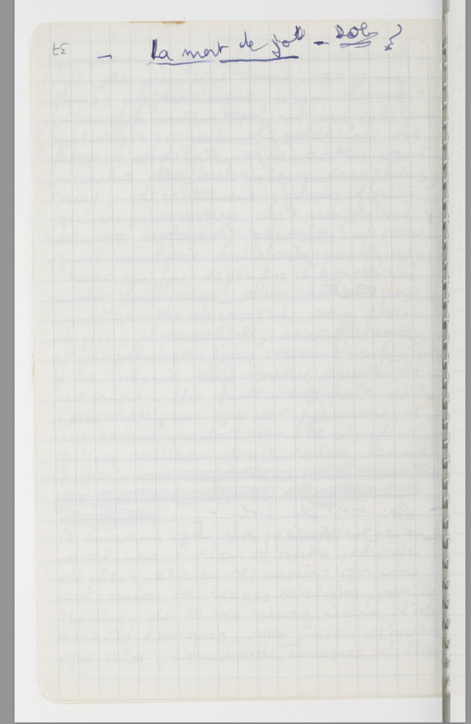Puis, si l’on saisit le Carnet à l’envers, griffonnée sur l’une des premières pages, ces quelques mots jetés peut-être au début de l’année 89, un peu avant le printemps ?