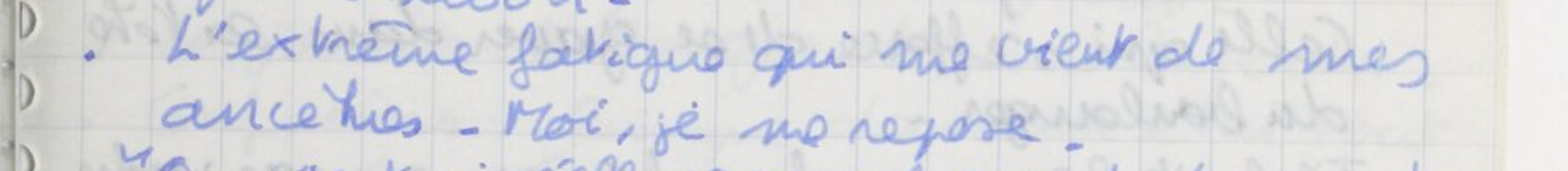 L’extrême fatigue me vient de mes ancêtres. Moi, je me repose [20].