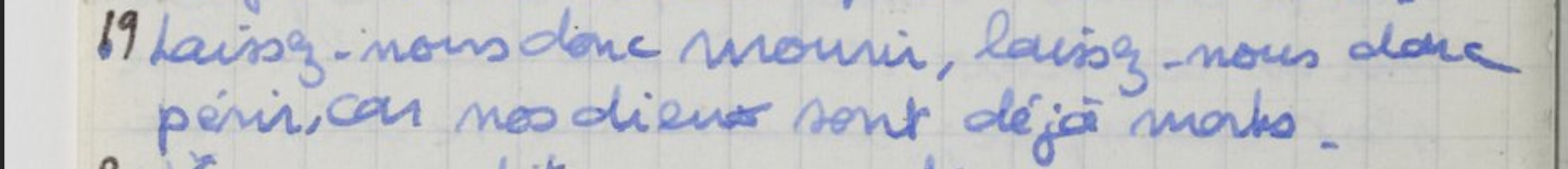 19. Laissez-nous donc mourir, laissez-nous donc périr, car nos dieux sont déjà morts [17].