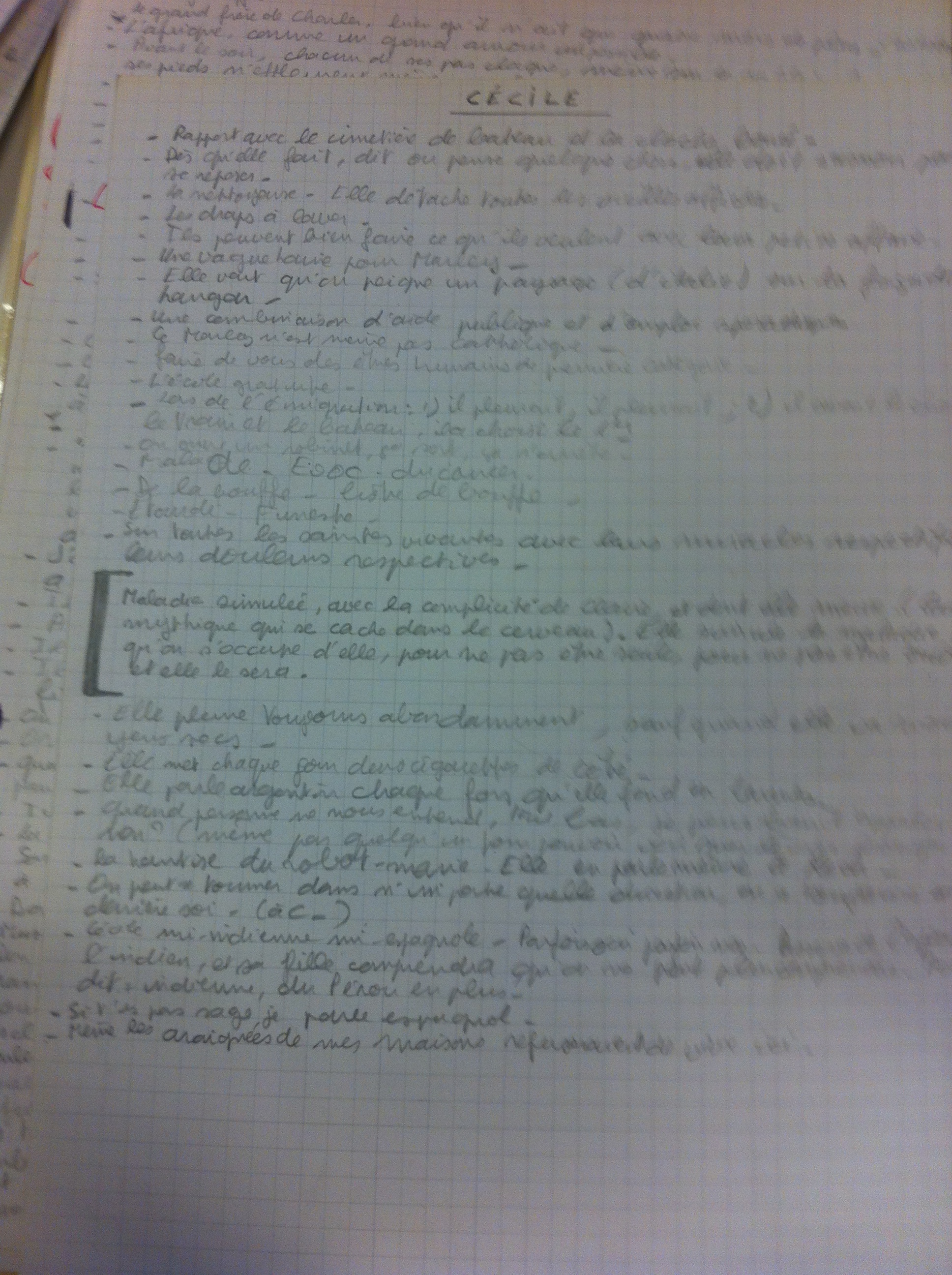 La vie se vit d’un côté et elle s’écrit à l’inverse, c’est-à-dire que j’ai le sentiment que les choses, les expériences que je vis et les gens que je côtoie à partir du moment où je les écris, je les mets à mort en quelque sorte. C’est d’ailleurs un peu le problème, le seul problème que je me pose en tant qu’écrivain : c’est que quand je vis des expériences et quand je rencontre des gens, je sais qu’un jour ou l’autre, ils vont me servir… de pâture… Enfin, je vais m’en servir pour les écrire, si je peux dire. Et à partir de ce moment-là, je ferai une œuvre de mort, vis-à-vis de cette expérience vécue et vis-à-vis de ces gens que j’ai rencontrés. Non pas que j’éprouve un sentiment de culpabilité vis-à-vis de cela. Mais disons que j’éprouve une certaine difficulté à doser l’existence d’une part et à lui garder son indépendance par rapport à l’écriture, et d’un autre côté à continuer à écrire. Et je sens des deux côtés, à la fois du côté de l’existence et à la fois du côté de l’écriture, une attirance pour vivre l’un et l’autre d’une manière entière et je sais très bien que ce n’est pas possible. [2]