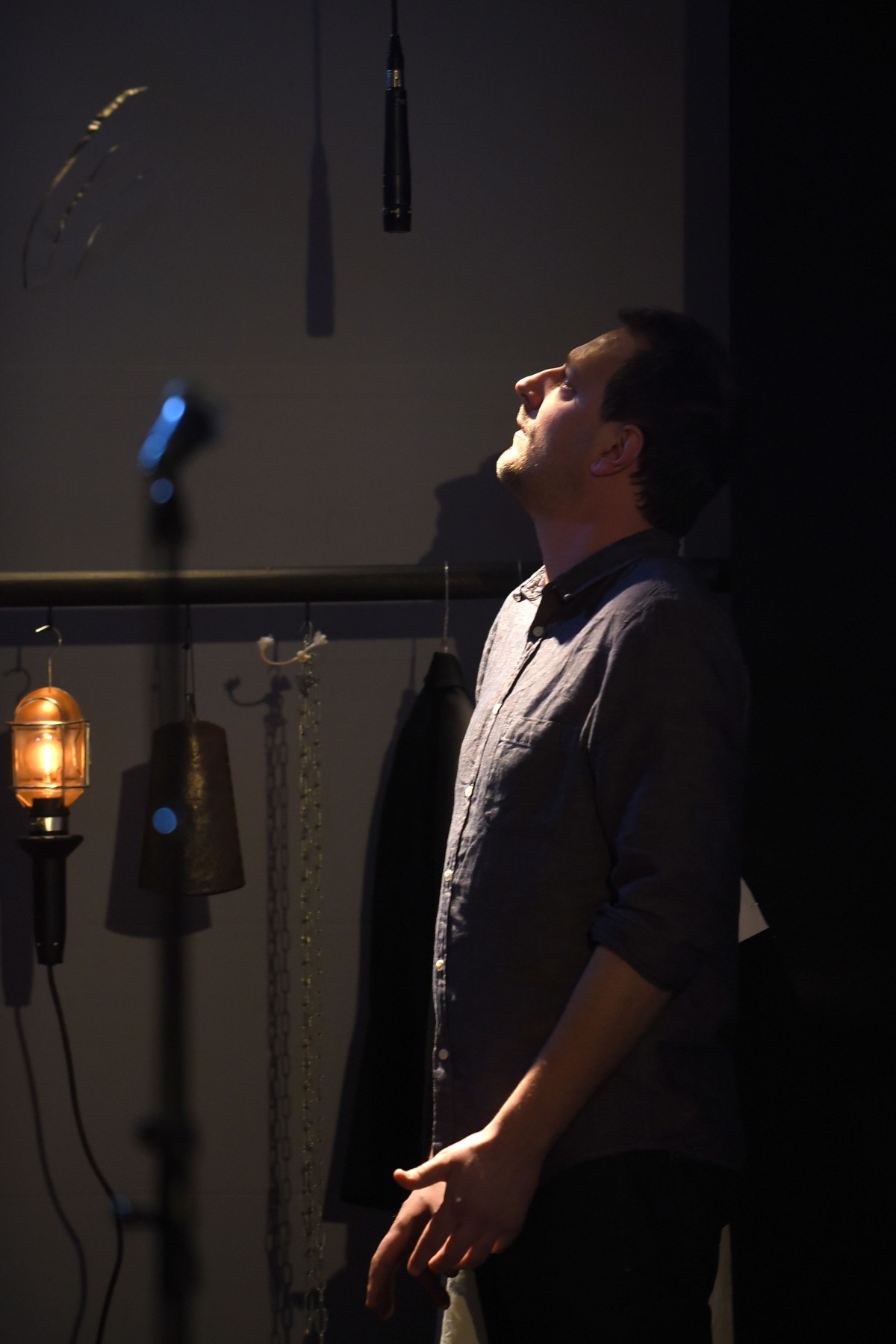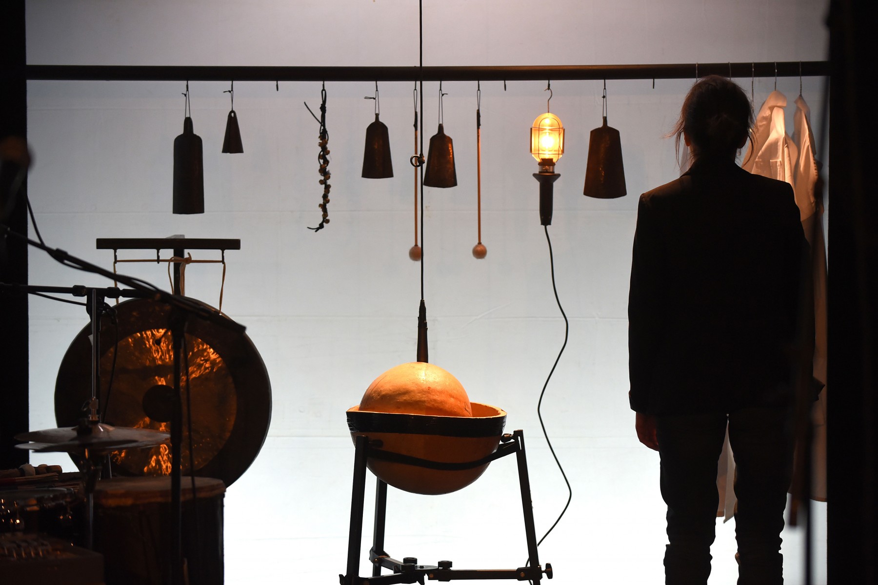 Sur un fil, la musique n’est pas posée sur la scène, elle s’en échappe. Les musiciens n’interprètent pas, ils jouent avec les acteurs une musique en dialogue et en tension. Chaque séquence est aussi l’occasion d’une fabrique de la théâtralité au présent : chaque tableau l’enjeu d’une invention des voix et des corps, des présences et des images. Micros, chants, confessions puisées dans l’intime, rêves intérieurs, échanges, espaces perdus, affrontements, abstractions, naturalisme, bascule des lumières, sonorisation : le spectaculaire du plateau tient aussi à son artisanat, conçu avec franchise devant nous.