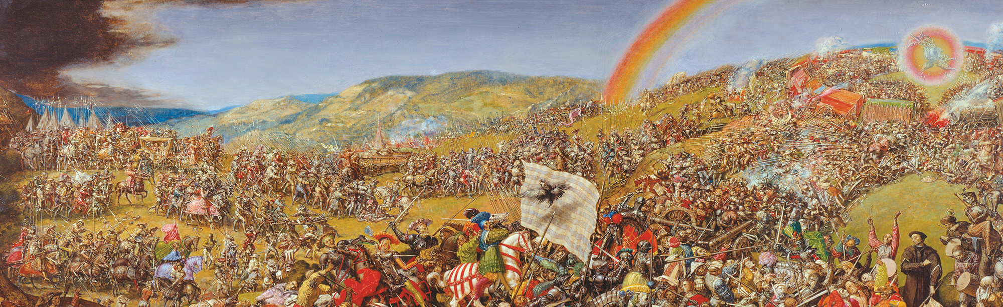 Au lieu même où les paysans sont morts, sur le champ de bataille de Frankenhausen, on avait décidé de lever un mémorial — c’est ce qu’on fait toujours avec la mort, la défaite et les regrets, on lève quelque part où le sang a séché une pierre et on écrit quelques mots sur elle, Passants, va dire aux hommes qu’ici sont morts ceux qui voulaient défendre leurs lois et souviens-toi ; des phrases comme ça, inutiles et belles, lapidaires. C’est ici, sur la Schlachtberg, qu’on lèvera la pierre. Sauf que c’est une colossale bâtisse qu’on prévoit, de marbre et tout en colonne, en gravité terrible. Dedans, on y mettrait la bataille elle-même, toute entière, celle du soulèvement, celle de l’arc-en-ciel et du massacre, celle sur quoi avant le massacre et sous l’arc-en-ciel Müntzer avait jeté les dernières paroles.