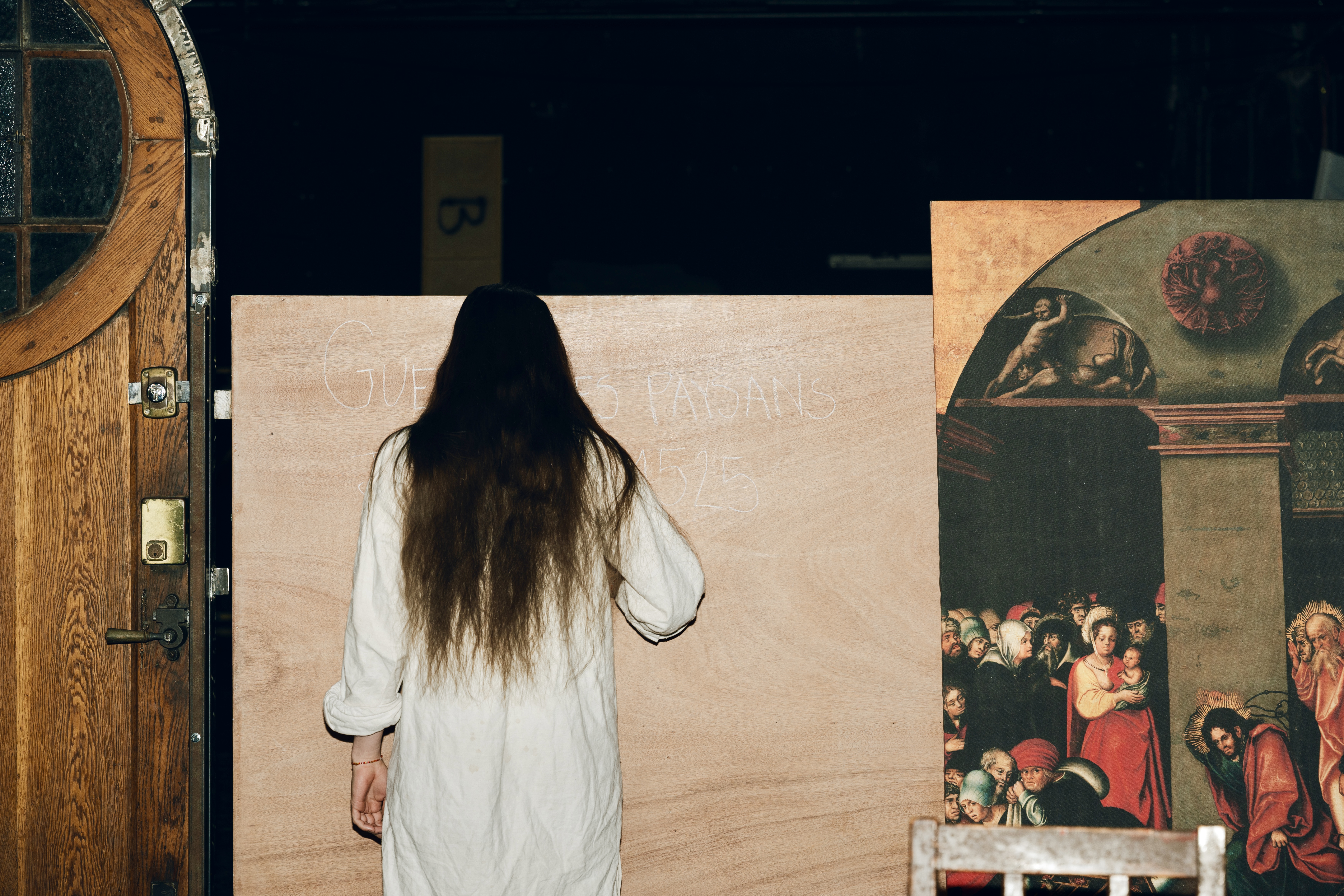 Cette année, je l’aurai beaucoup passée dans l’hiver et le printemps 1525, entre la Souabe et la Franconie, dans les plaines d’Allemagne avant d’être nommée ainsi, parmi les cris paysans jetés par les corps qui se soulèvent, et devant l’ombre de Thomas Müntzer — traquant le théâtre et les mots pour le dire.