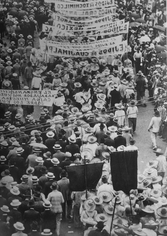Son art change : auprès du rédacteur d’El Machete dans laquelle elle publie ses séries, elle abandonne ses recherches formalistes, compositions parfaites de rues vides et de fleurs mortes, cherche plutôt dans les corps en mouvement l’image souterraine qui saura dire le grand soulèvement en cours, tout en témoignant pour la réalité. Car, surtout, en compagnie de l’intransigeant Mella, radicalement anti-stalinien, elle participe à montrer que la Révolution n’est pas achevée tant que dure la misère et la peine.