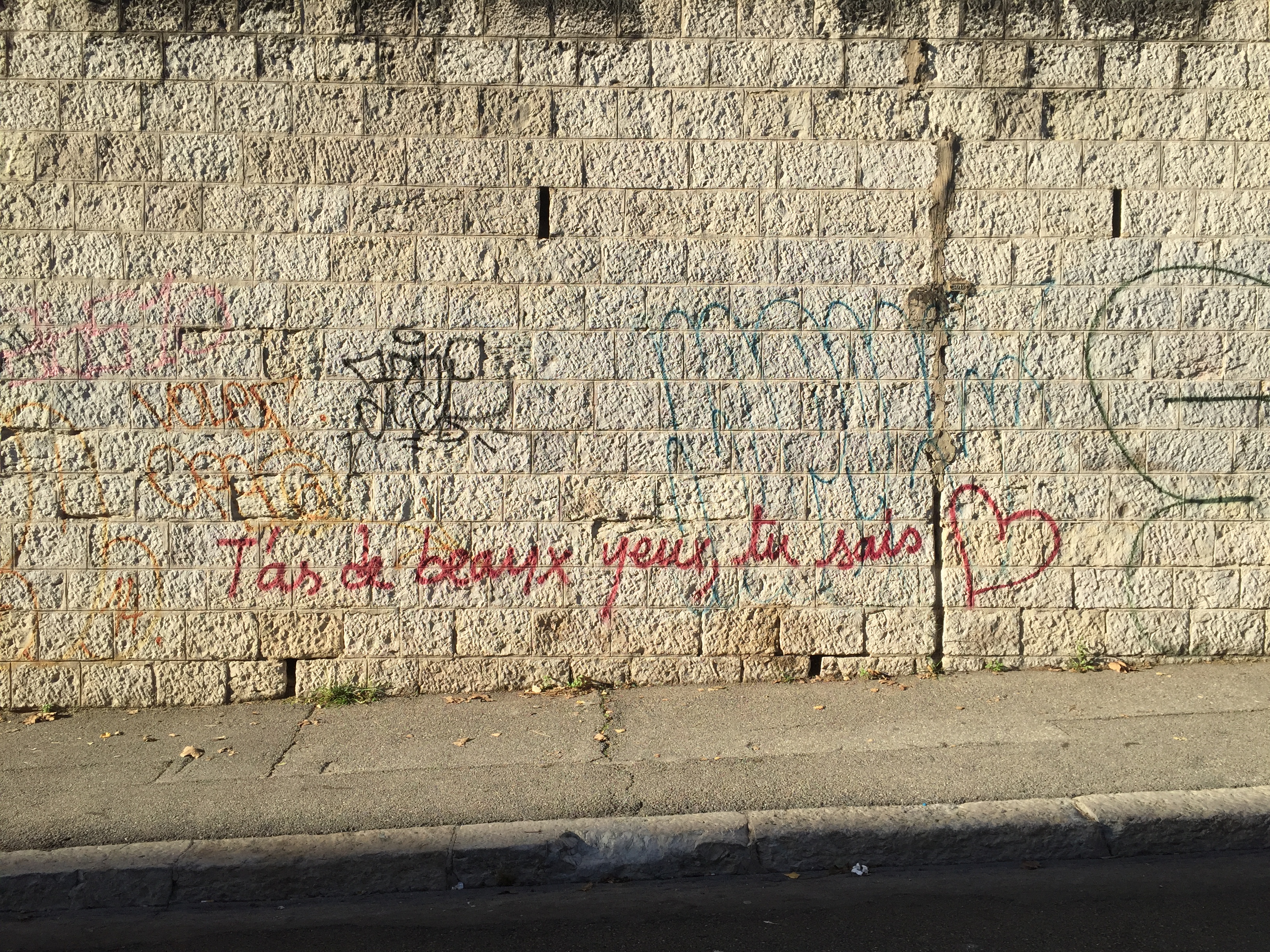 Régulièrement, on nettoie les murs. On croit sans doute que ces murs sont sales. On voudrait en recouvrir les violences et les beautés, apurer les comptes, renouveler la pureté raciale de ces murs qui ne tiennent pourtant debout que grâce à ces rages écrites.