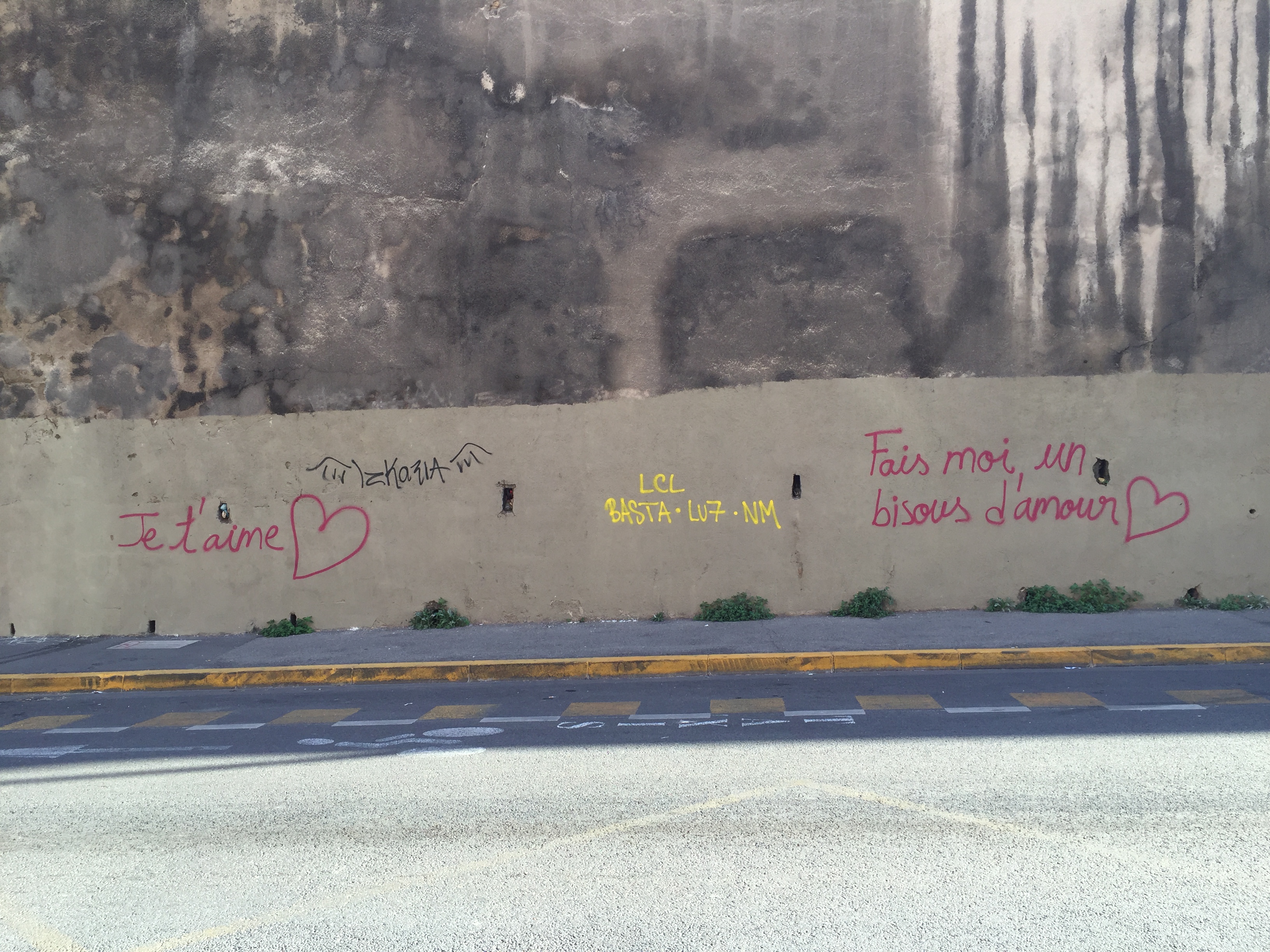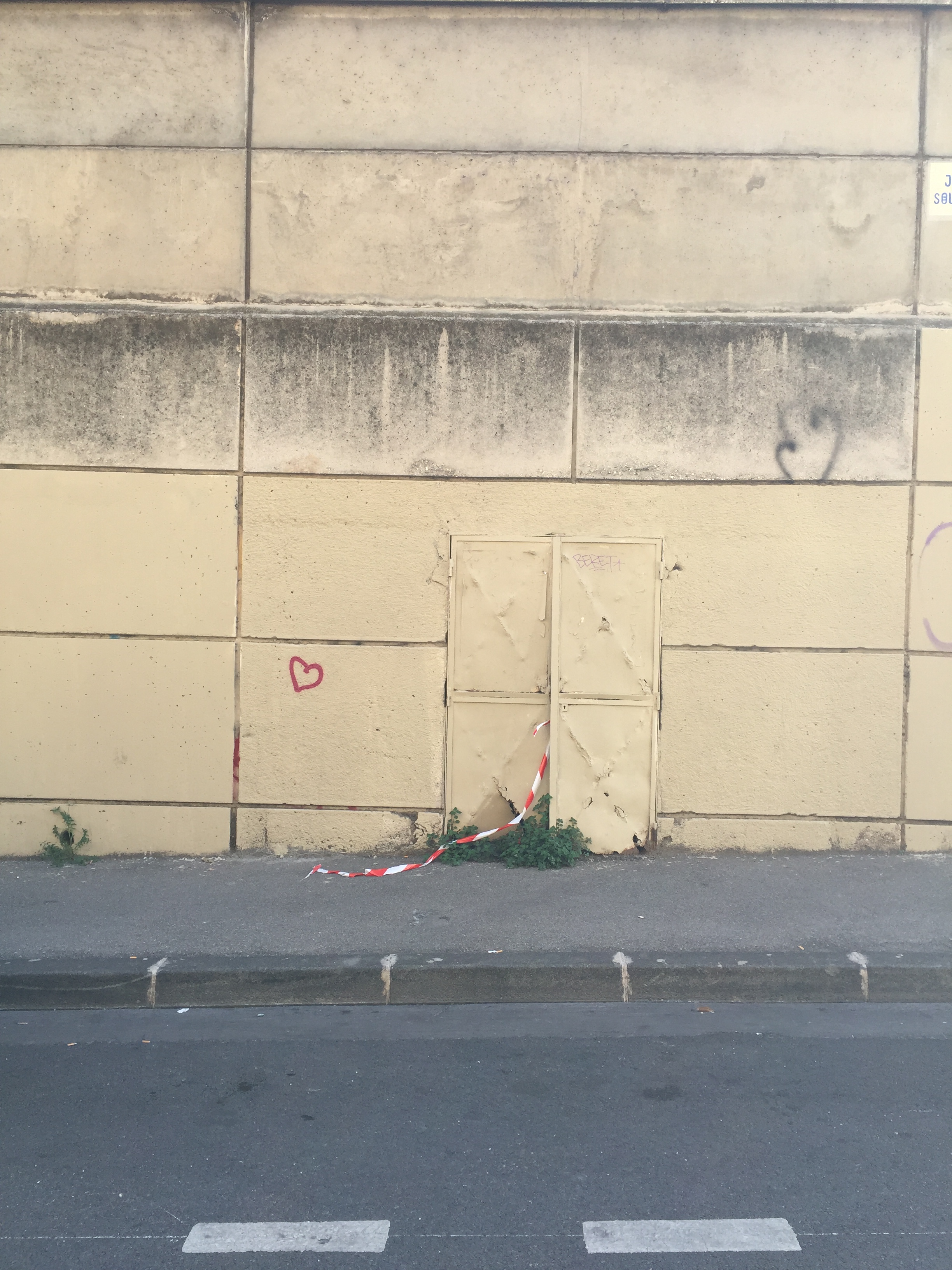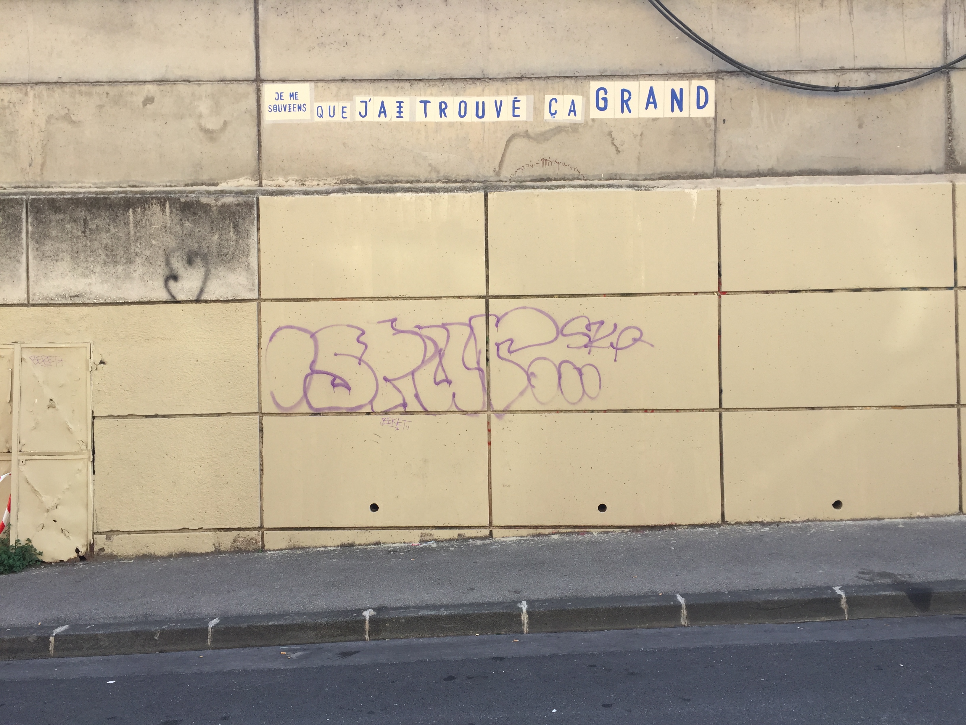 La route qui monte à la Friche Belle de Mai est un grand livre horizontal coulissé le long des rails qui conduisent à Saint-Charles. L’histoire qui s’écrit sur ces murs se passe d’histoire : des mots arrachés sans doute à la nuit ; pas même des mots, des lettres ; pas même des lettres – des signes inventés comme un secret. Quand je dois aller à la Friche, je prévois souvent un peu d’avance pour prendre des images de ce long mur de plus d’un kilomètre.
