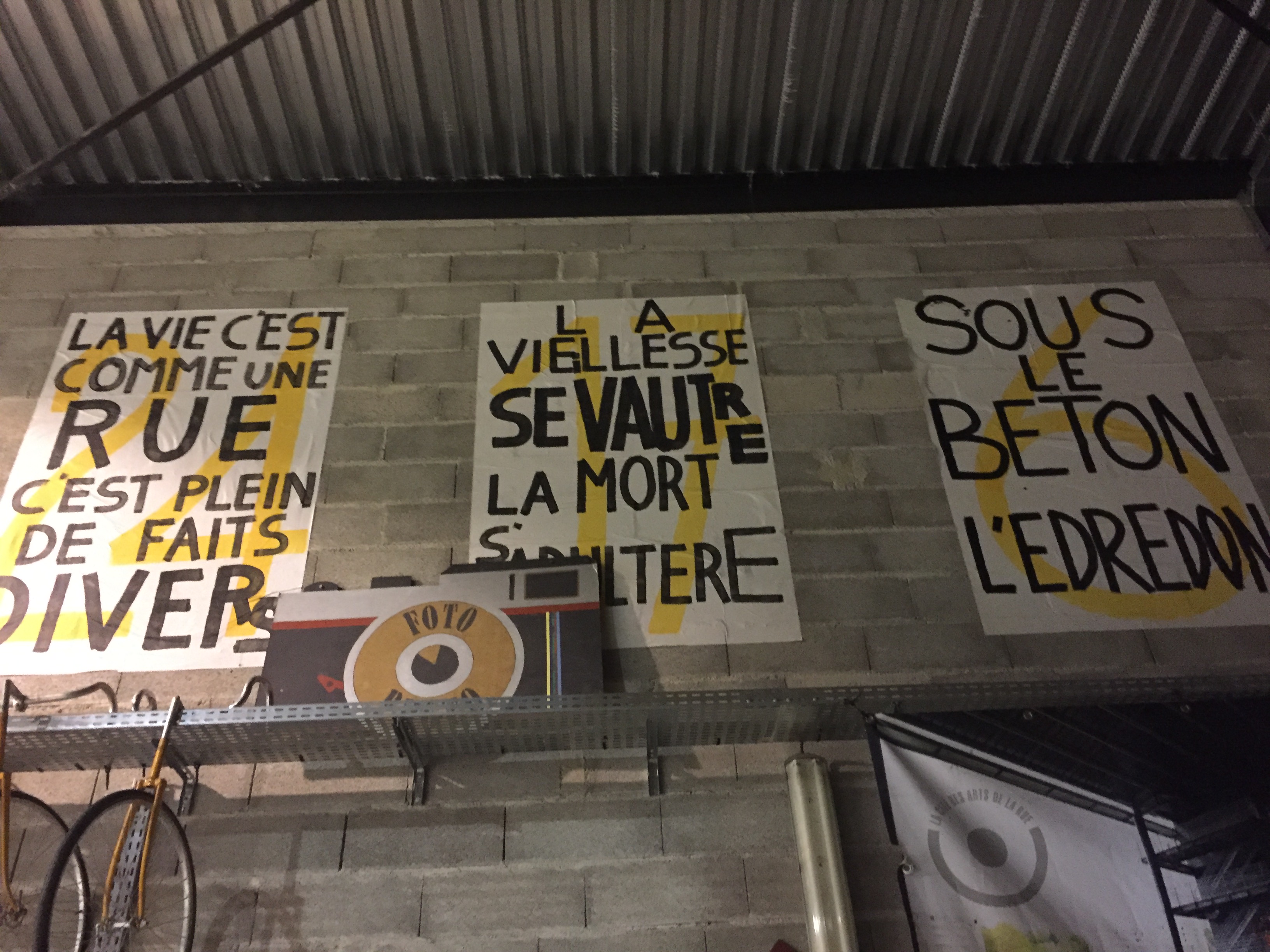 La ville peu à peu recomposait les slogans dans cet envers-là. Les phrases par contagion prenaient corps sur les murs, se donnaient naissance : elles racontaient ce que disaient les épopées, mais sans les corps, sans les buts, sans les moyens. Elles disaient seulement la folie de dire et de nommer ce qui autour vibrait encore, un peu. La ville se laissait recouvrir de ces slogans renversés qui rejouaient la geste des formes anciennes.