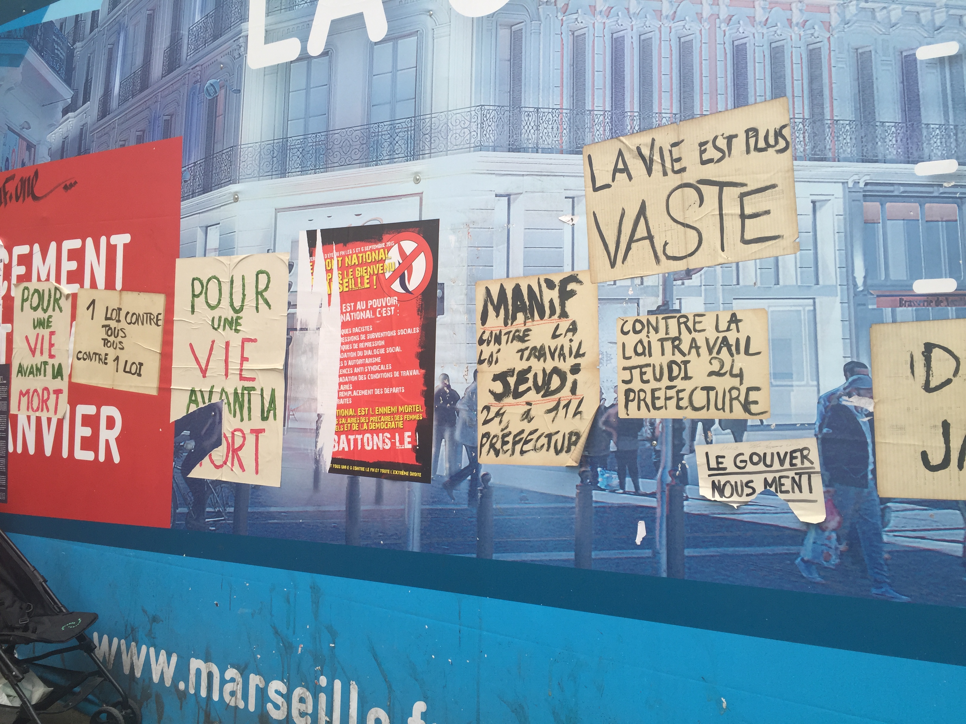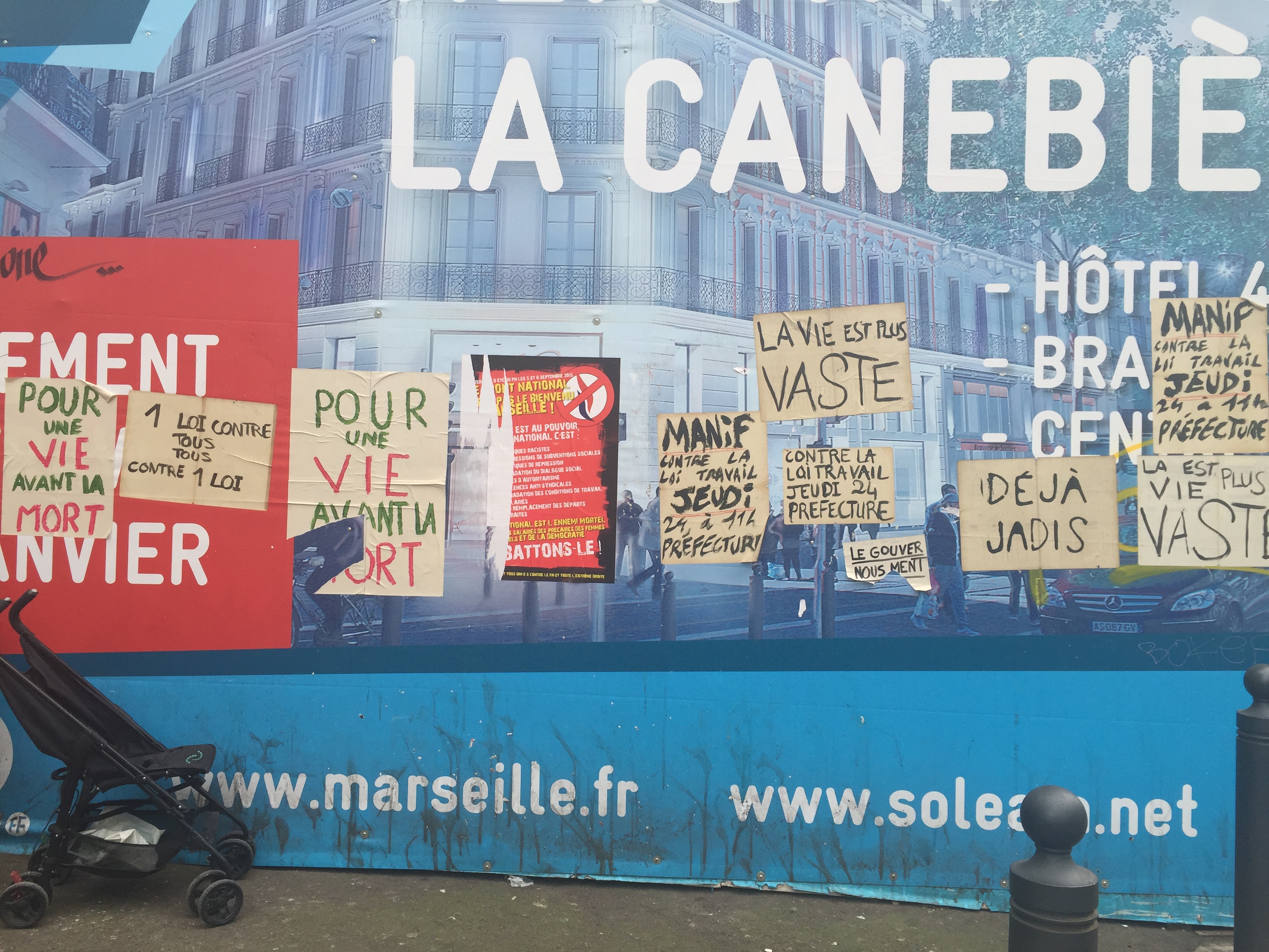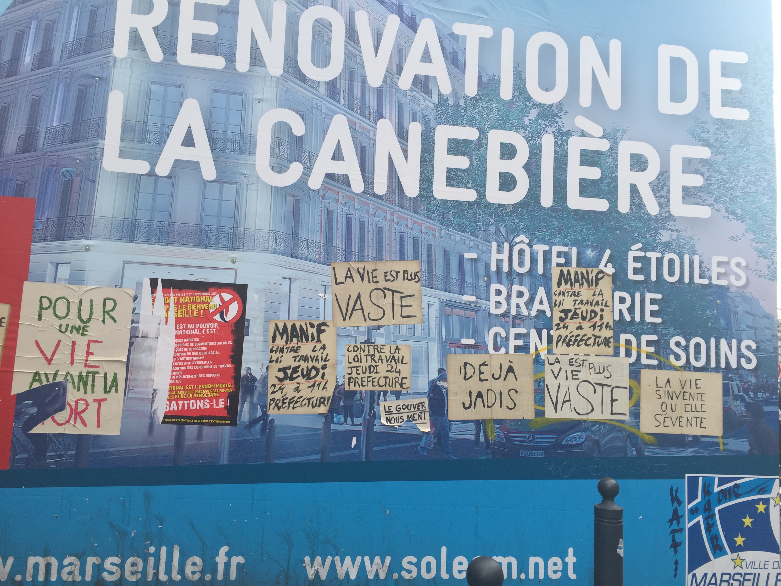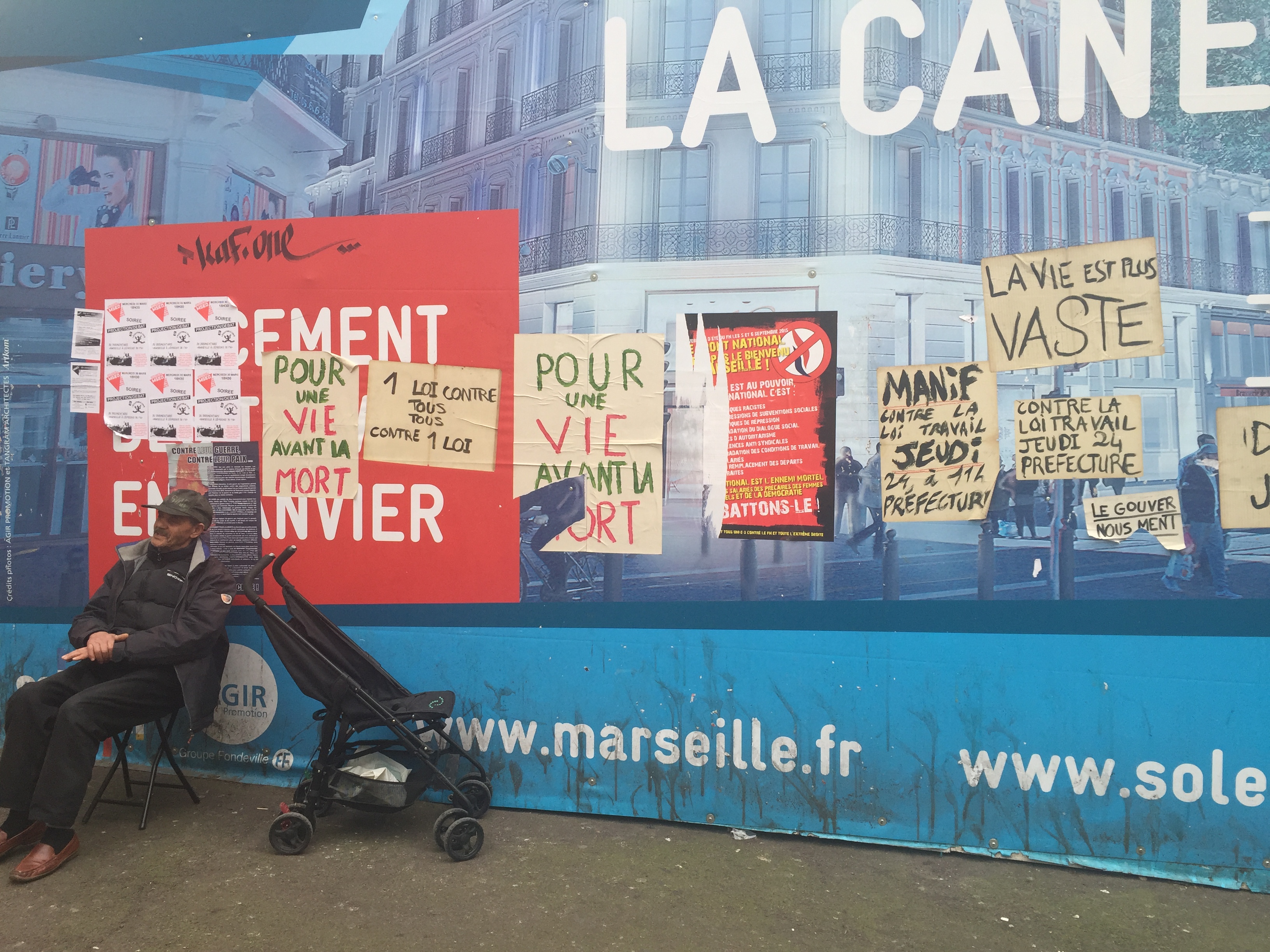 Ici, ce seront bientôt des hôtels quatre étoiles, des brasserie de luxe, des que sais-je – là où Noailles se jette vers le Vieux-Port. L’entreprise patiente de fabriquer la ville contre ceux qui y vivent, ceux qui la vivent, est sans répit.