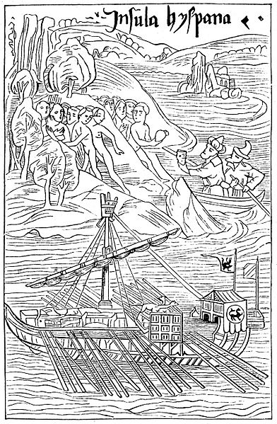 Sur l’autre navire qui suit de près celui-là, soudain, un cri déchire le silence : dans ce cri s’abîme soudain le monde vieux. On ne sera plus capable de remettre ce cri dans le passé, comme de l’eau hors du vase brisé. Ce cri hurlé à plein poumons depuis l’autre navire, c’est Juan Rodriguez Bermejo de Molinos – dit Rodrigo de Triana – qui le pousse devant lui .