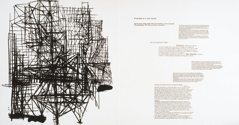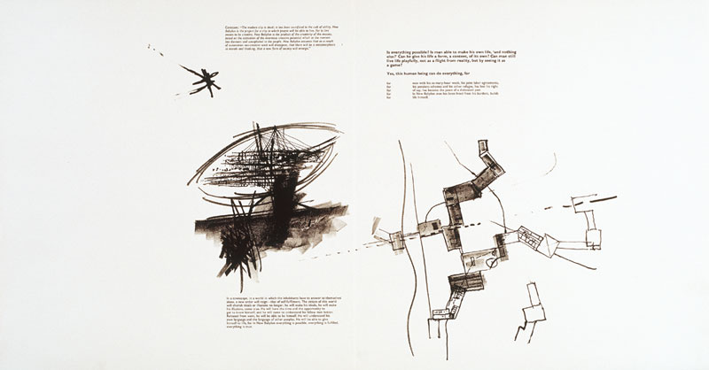 Si New Babylon existe comme rêve, c’est pour nous donner le dégoût de la réalité : et puisqu’il a été réalisé sur le papier dans les croquis de Constant, il est la seule réalité admissible, et le monde autour, ce mauvais rêve dont il faudra bien se réveiller. Voici ce que propose New Babylon : ce désir d’un autre monde, il le transforme en besoin nécessaire d’autres manières de vivre.