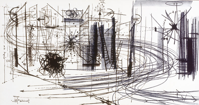 Le geste de la clôture qui fait advenir une propriété (privé) est aboli : geste qui n’a fait que « déshumaniser la terre », note Constant — aux lignes tracées pour séparer, New Babylon proposerait des lignes qui sont des signes d’interconnexions — des secteurs aériens se chevauchent, forment comme autant d’artères, d’embranchements, de lignes de fuite : des lignes de sorcières.