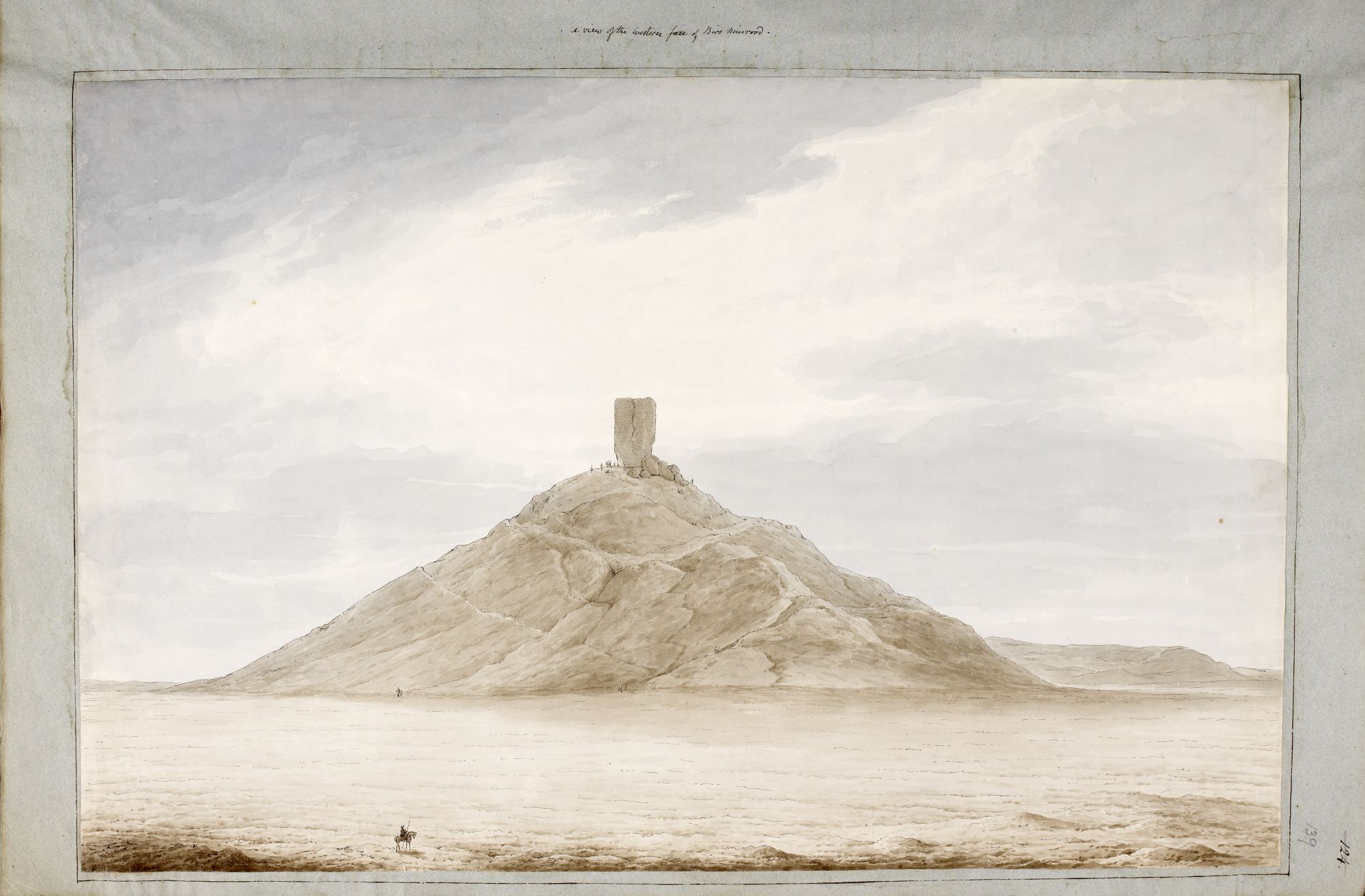 J’ai cherché tout à l’heure une image recomposée de la Tour de Babel et n’ai seulement trouvé sous quelques visions de cauchemar des images, jamais des puissances et jamais des énigmes : tout est toujours là dans l’éventrement de la Tour, le bavardage des sermons à peine effroyables — puis, par hasard, je suis tombé sur les croquis de Robert Ker Porter qui fut dans les bagages de quelques aventuriers d’alors chargé de dessiner à mains levées les ruines ensablées d’Akkad et de Sumer, et puisqu’il n’en restait rien, il se contenta de dessiner ce rien, dunes, horizons troués ici et là de monceaux de pierres sans nom, couleurs blanches étales dans toutes ses nuances : il suffisait de tendre la main vers ces monticules et de décider de jeter sur l’un ou l’autre les noms de Ninive, d’Assur ou d’Uruk, voilà tout — et sur toutes, désirer voir Babel ; je ne fais pas autrement, ces jours, alors comme un pillard de tombes des cimetières royaux, j’ai volé cette image de ce qui n’est que Birs Nimrood et l’ai fiché en fond d’écran pour ne pas cesser d’oublier ces souvenirs.