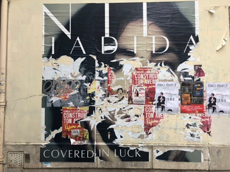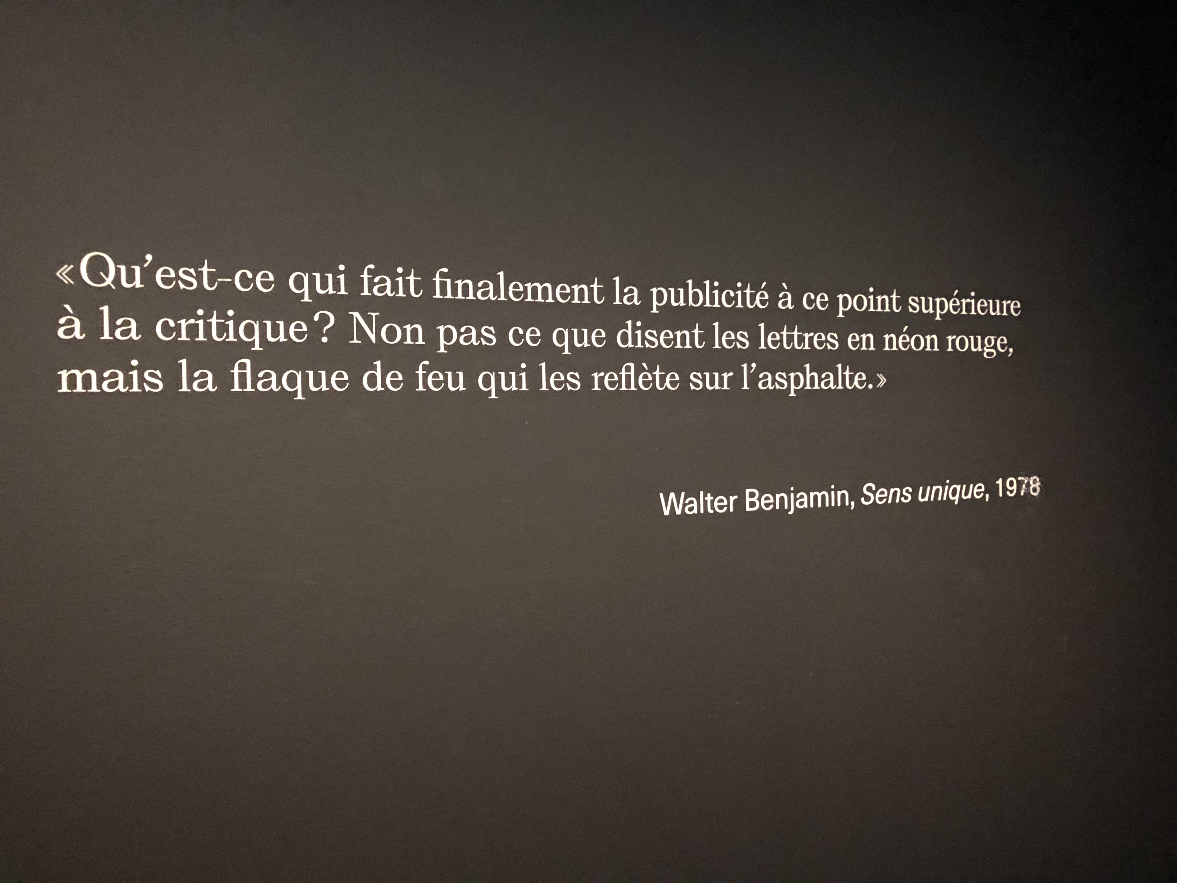 Sur les affiches, tout ce qui sert à vendre : même le rien, surtout lui. Nous, on ne fait que marcher devant les réclames sans rien demander.