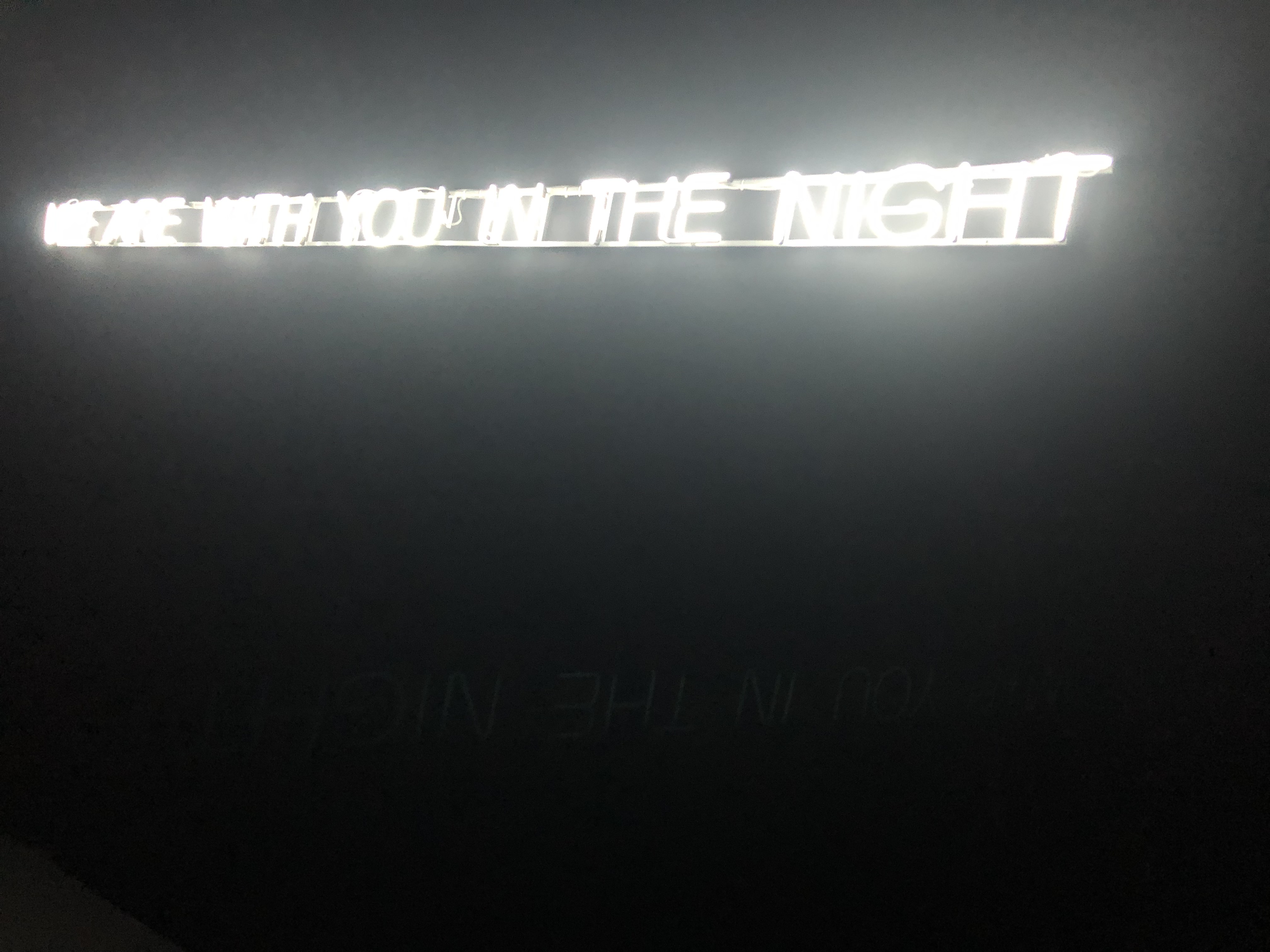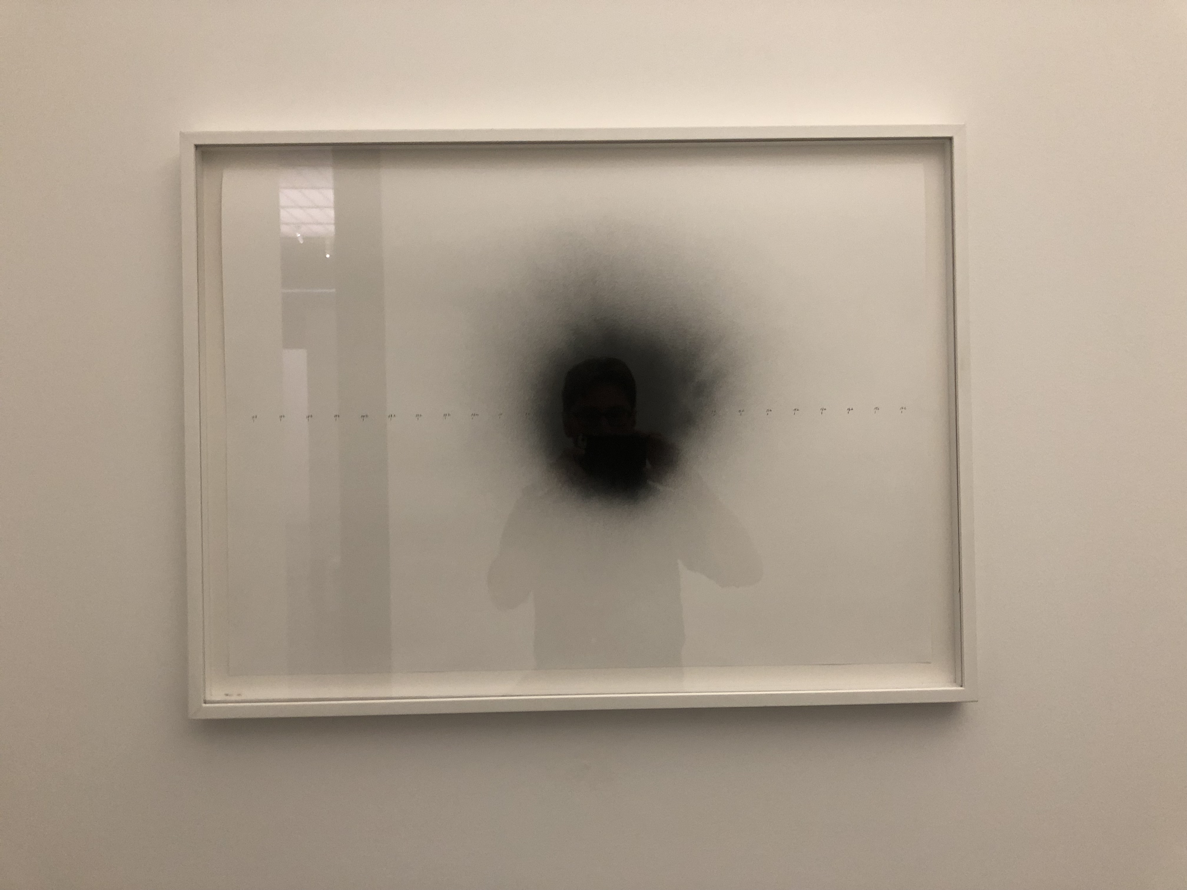La dernière image : c’est cette toile, une tache noire — image littérale d’une nuit ? Oui, mais quand je pose les yeux sur le cadre, c’est mon visage qui se laisse cerner par la nuit. Une autre leçon, de laquelle je m’arrache : je suis de l’autre côté de l’image, et quand je prends l’image avec l’appareil, que je la regarde, je suis doublement hors de la nuit, tandis que je la regarde.