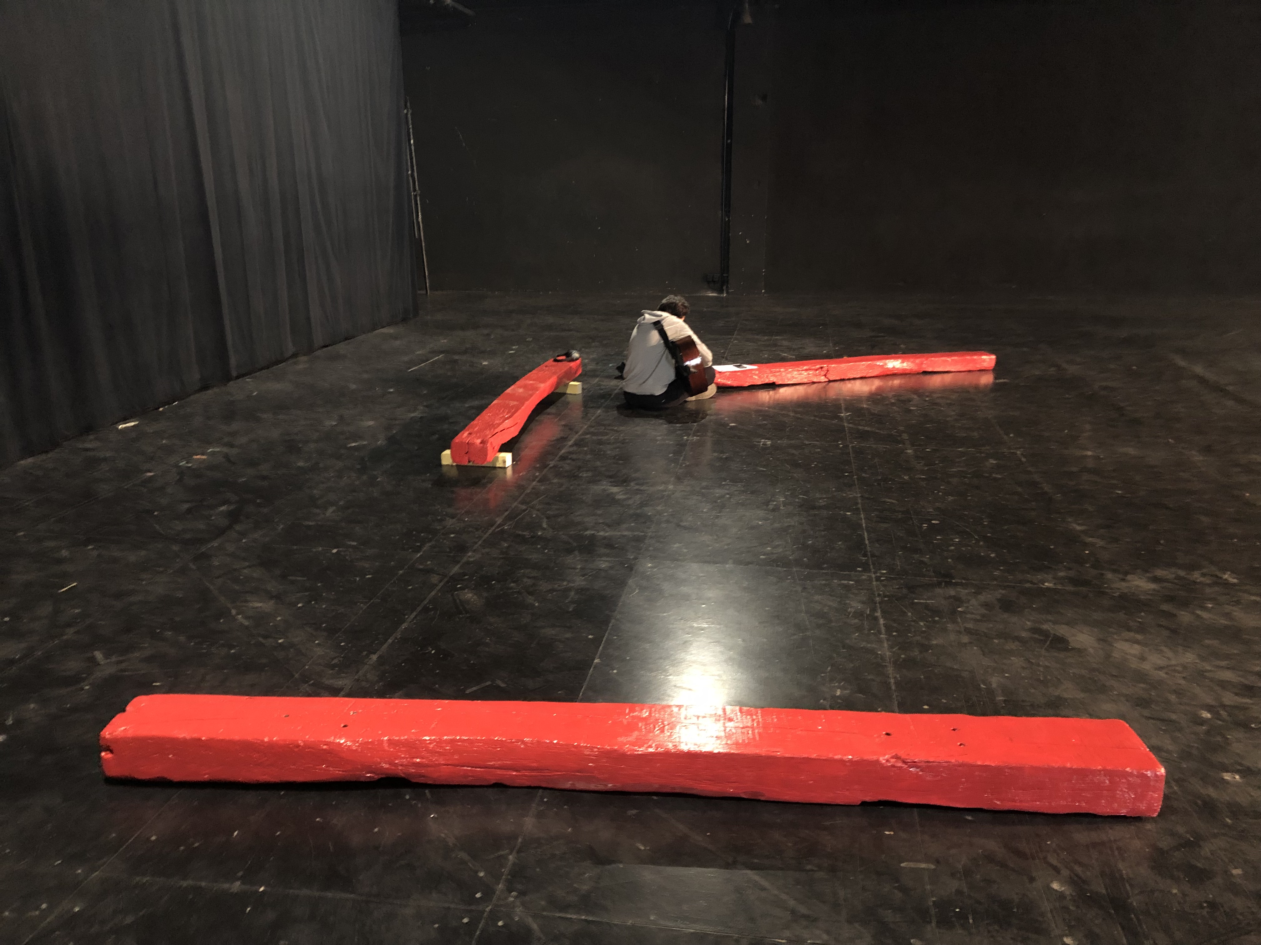 Ce que j’aime regarder au théâtre, ce sont les murs et le sol. Je pourrais prendre mille images des murs, du sol. Oui : on joue avec l’air qui nous entoure. On la déplace, on la saccage. On est ravagé par l’air qui nous sépare. On est une partie de l’air qu’on produit avec nos lèvres. On ne fait rien d’autre, au théâtre que de brasser de l’air et parfois, il atteint les visages et parfois, il remue d’autres airs, et du vent fabrique du vent qui fabrique le souffle qui renverse une feuille d’arbre, une forêt, un désir.