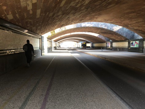 Essayer de passer sous le tunnel de ces jours. De Lyon à Marseille, en passant par Metz donc, soudain : début avril comme en contre-plongée, chercher à quoi ressemble cette vie. Image du tunnel à travers lequel passe la lumière. Dans Metz à la recherche de quelques fantômes. Ne trouver qu’un musée et de la nuit. Et les vitraux de Chagall. Et les bords de la Seille, et quoi d’autres ? L’homme qui marchait devant moi n’a pas de nom : c’était peut-être mon ombre.