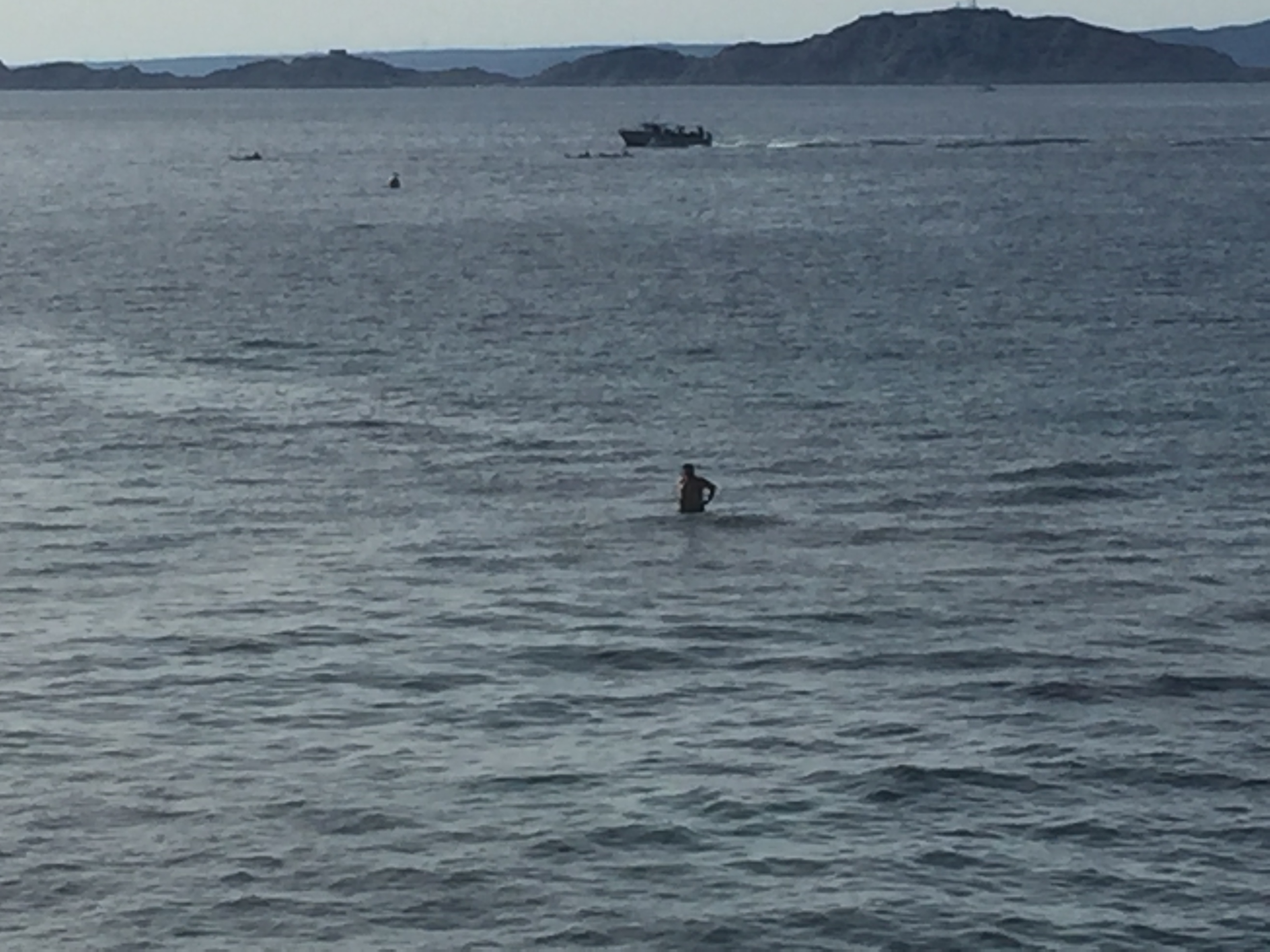 Cet homme dont on ne voyait que le tronc – Minotaure étrange et idiot au milieu de la mer étale ; cet homme dont la solitude muette resplendissait tranquillement dans le vacarme de la plage proche, de la route, de la ville, de juillet déjà épuisant de cris. Cet homme comme on serait dans l’immense. Un simple type au milieu de ce qui pourrait nous soulever mais ne le fait pas.