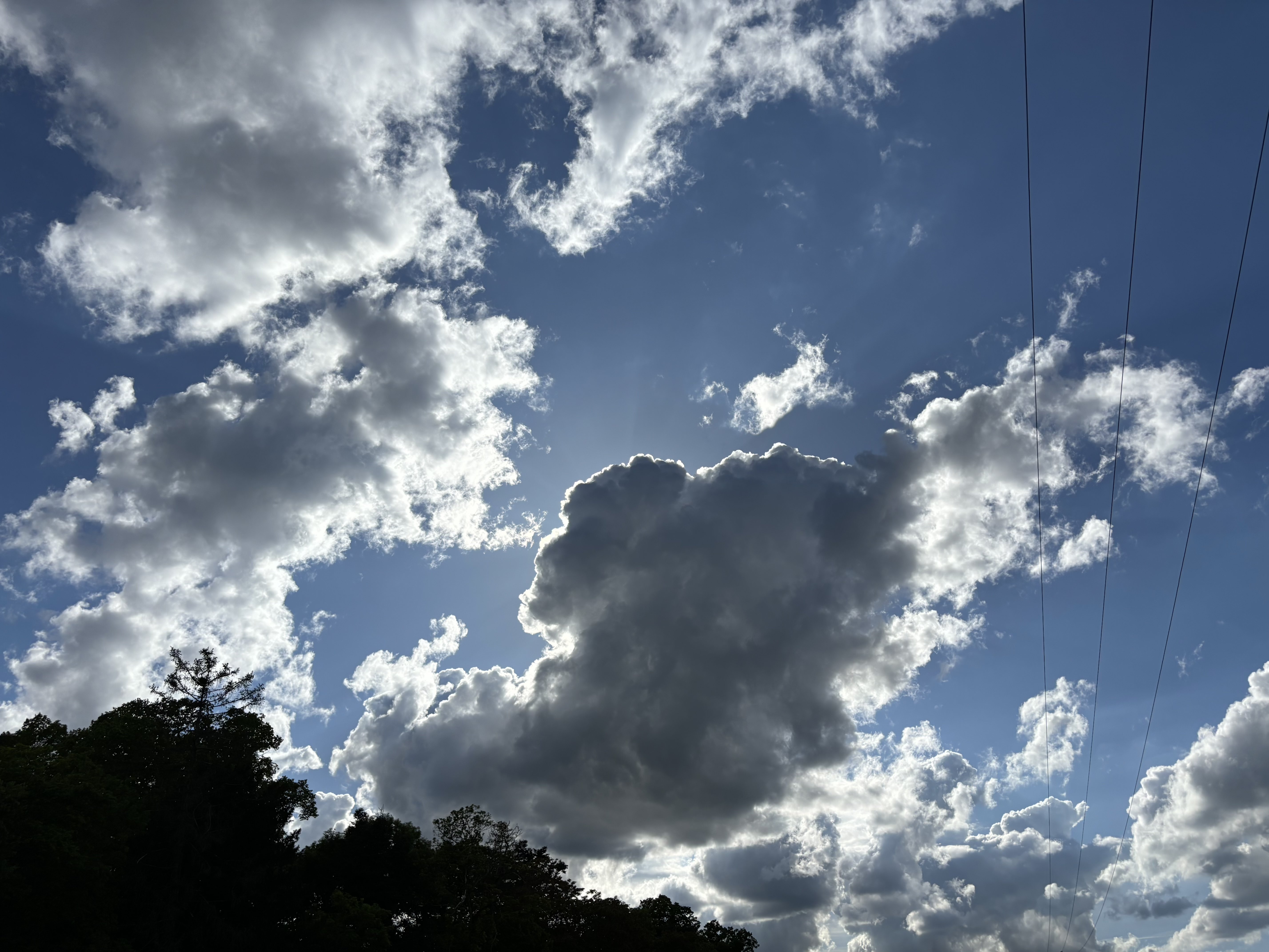 D’ici, on ne voit de la Centrale nucléaire de Chinon que ces immenses nuages qui partent à la verticale du ciel venir se confondre avec là-haut, ce qui n’a pas de noms, sont les bêtes fantastiques que lit Hamlet quand il voudrait faire du ciel le grand livre des choses, et qui disparaissent sitôt nommées. À défaut de chameau, de belette ou de baleine, il semblerait que ce soit plutôt des cumulonimbus — nuage dense et puissant, à extension verticale considérable, en forme de montagne ou d’énormes tours, dont une partie au moins de sa région supérieure est généralement lisse, fibreuse ou striée, et presque toujours visible et s’étale en forme d’enclume ou de vaste panache, au-dessous de laquelle, souvent très sombre, il existe fréquemment des nuages bas déchiquetés, soudés ou non avec elle, et des précipitations de tous genres. On préférerait évidemment à ces descriptions banales y voir des chameaux, des belettes, oui, des baleines prêtes à nous engloutir pour le simple plaisir de devoir nous recracher.