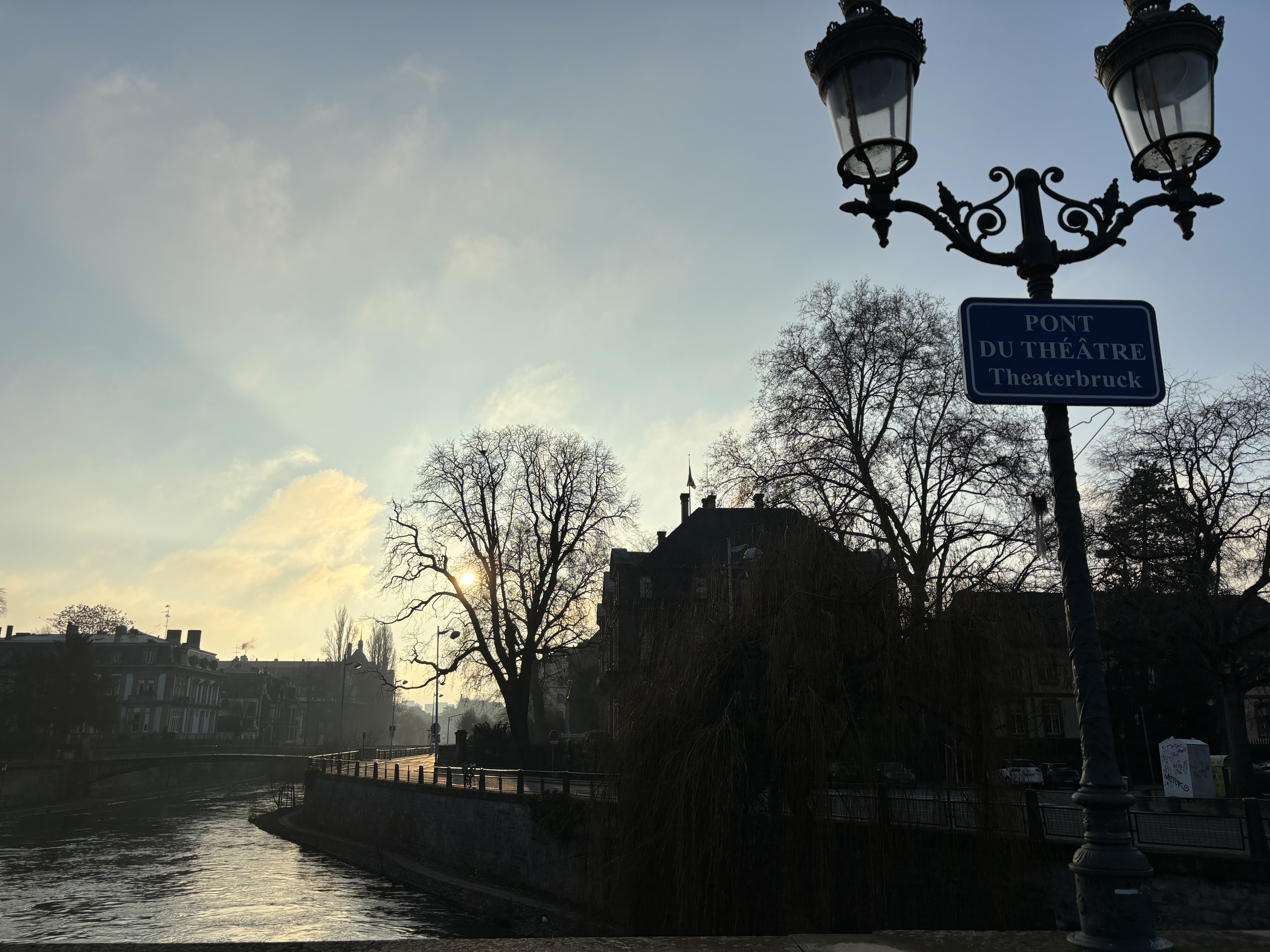 C’est vrai que Strasbourg flotte, que c’est une ville à la dérive : trois jours ici, à peine, dans le froid terrible de janvier qui forme cette lumière opaque, où la brume au-dessus de l’Ill paraît la matière dans laquelle on s’enfonce à chaque pas — c’est vrai que Strasbourg paraît s’éloigner à mesure qu’on avance en elle, comme près de la Cathédrale (une fois de plus, j’aurai renoncé à y entrer), ou le long de la rue des douane (ce matin-là, je marcherai seul ici et serai soudain entouré d’une patrouille de soldats fusils d’assaut à l’épaule, dans le silence étouffant de l’aube glacée) : c’est vrai que Strasbourg se dresse comme si c’était du passé pris dans le gel de la mémoire, ses fantômes ne sont même plus des ombres, je me souviens pourtant, d’y être allé comme si tout commençait, avec cette phrase en moi : maintenant ou jamais ; sur le Pont du Théâtre qui donne sur le TNS, je regarde l’eau s’enfouir sous elle, remonter le cours des choses jusqu’à se perdre dans la mer — mais on ne se perd jamais dans la mer, et maintenant : et maintenant ?