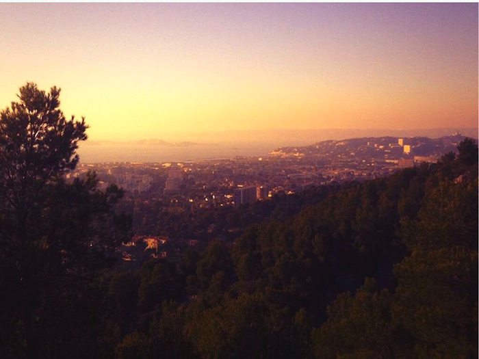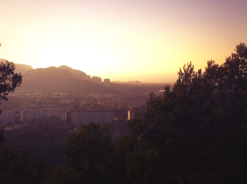 Sur la gauche de l’image, le sud encore, la ville arrêtée par la montagne ; au Nord, on ne voit pas la montagne, mais elle est là aussi. Entre les deux, le bruit qui monte d’une ville vers cinq heures, les voitures et quelques cris. Juste aux pieds de cette montagne où je suis, une prison — et les types dedans, au bord de la mer, tournent sans doute au milieu de murs qui ne laissent rien passer des embruns.