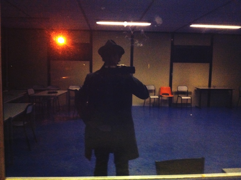 beaucoup de vent, et de fatigue, celle d’être en avance, celle d’attendre, de prendre possession des lieux, de regarder le plateau de théâtre vide, de le voir se remplir d’étudiants, de parler de Genet (de prononcer son nom), de dire les vers du condamné à mort (de s’en vouloir de ne pas les dire mieux), de regarder les étudiants chercher dans les gestes pour les faire, et les mots pour les dire, puis les trouver, de demander la confiance, d’aller regarder parfois vers le ciel ce qui reste de mer ou de ville, d’être fouetté davantage par le vent, alors de revenir, d’être plus fatigué, de passer la journée ainsi, dans les mots de Genet et sur le plateau pour les entendre et les dire parfois, voir les gestes se lever pourquoi, pour rien, pour cela, qu’ils se lèvent, nomment l’endroit où on les lève, d’être là, de voir le plateau se vider, de ranger les chaises et de se dire que cela fait partie du théâtre, de fermer la porte derrière soi après avoir longuement considéré la poussière remuée sur le plateau, de repartir puisque c’est le soir, d’attendre longtemps le bus à la gare, de repartir dans la nuit, de revenir dans le froid — de n’être pas assez fatigué alors de poursuivre.