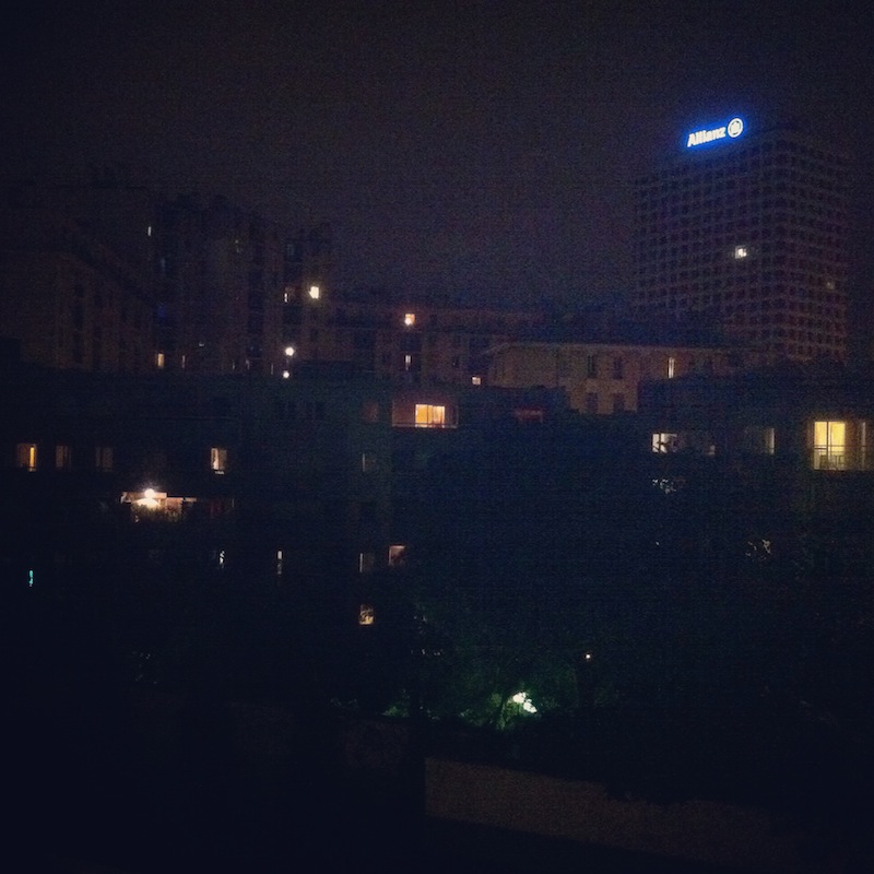 En face, l’immeuble immense qui se dresse, noir, est un paysage. Une lumière, une seule, ce soir, y est allumée — par négligence, erreur, oubli. Ou, selon mon désir, par la grâce d’une fatalité qui est celle de l’équinoxe : la ville comme une lumière durée sur le temps vaincu, conquis plutôt ; et nous, au milieu des distances, sommes à la fois le courant et le marin. Quelque chose qui tient d’un va et vient avec le jour et la nuit ; ce que nous habitons est la décision de relever de ce jour et de cette nuit ; et avec ceux qui veulent bien aller avec nous, croire que le mouvement des vagues est le nôtre.