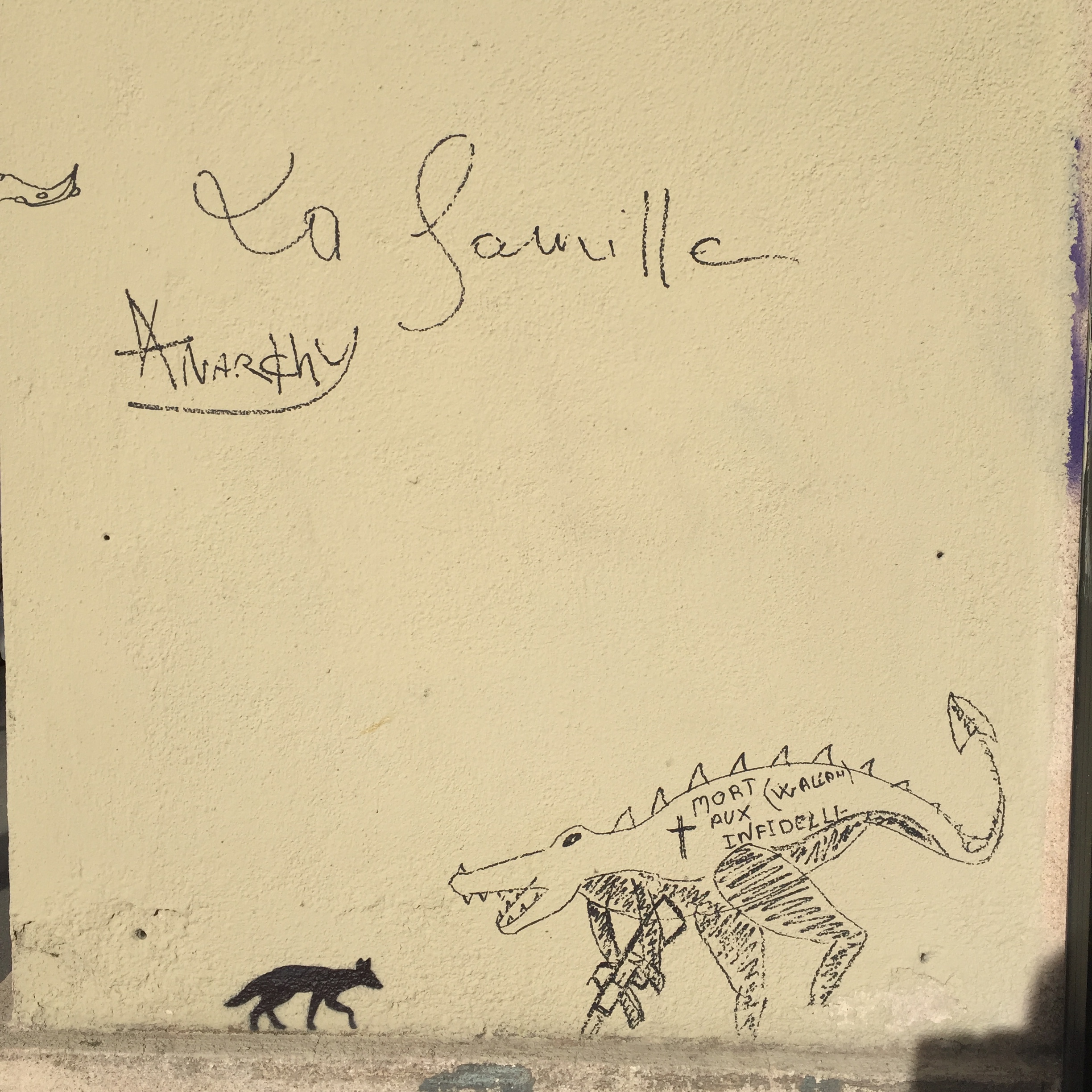 Lire la ville aussi, sur les murs qui l’écrivent comme sa légende. Un corps éventré où tous se jetteraient pour griffer entrailles et mordre la peau. La ville à la bousille, oui.