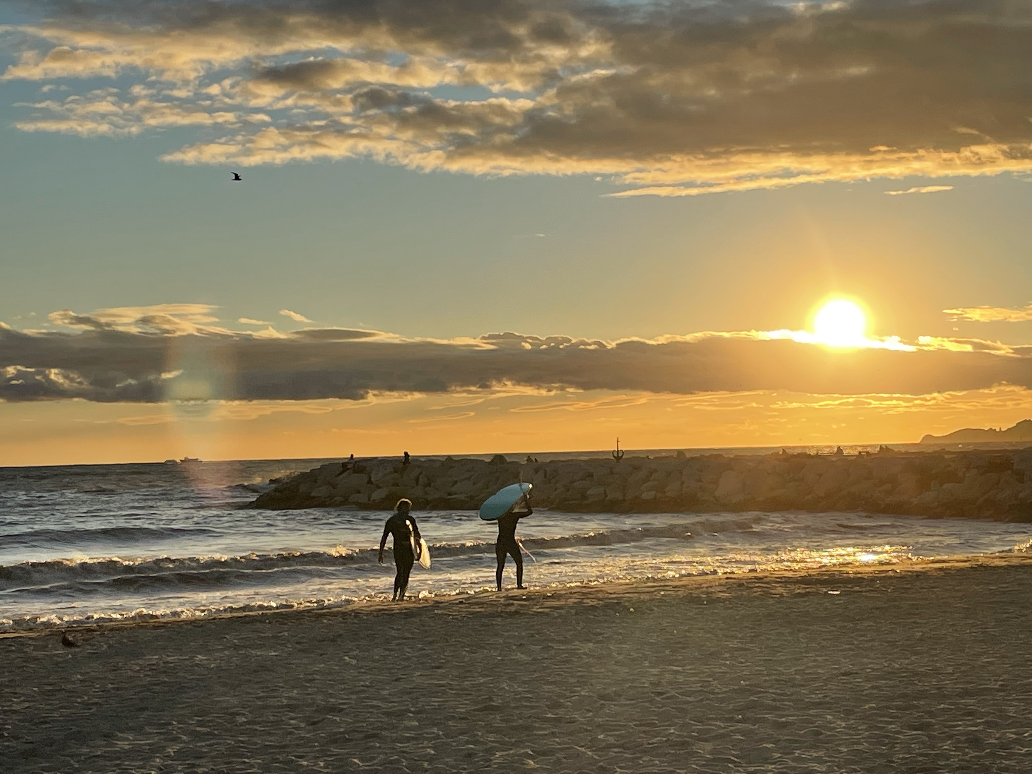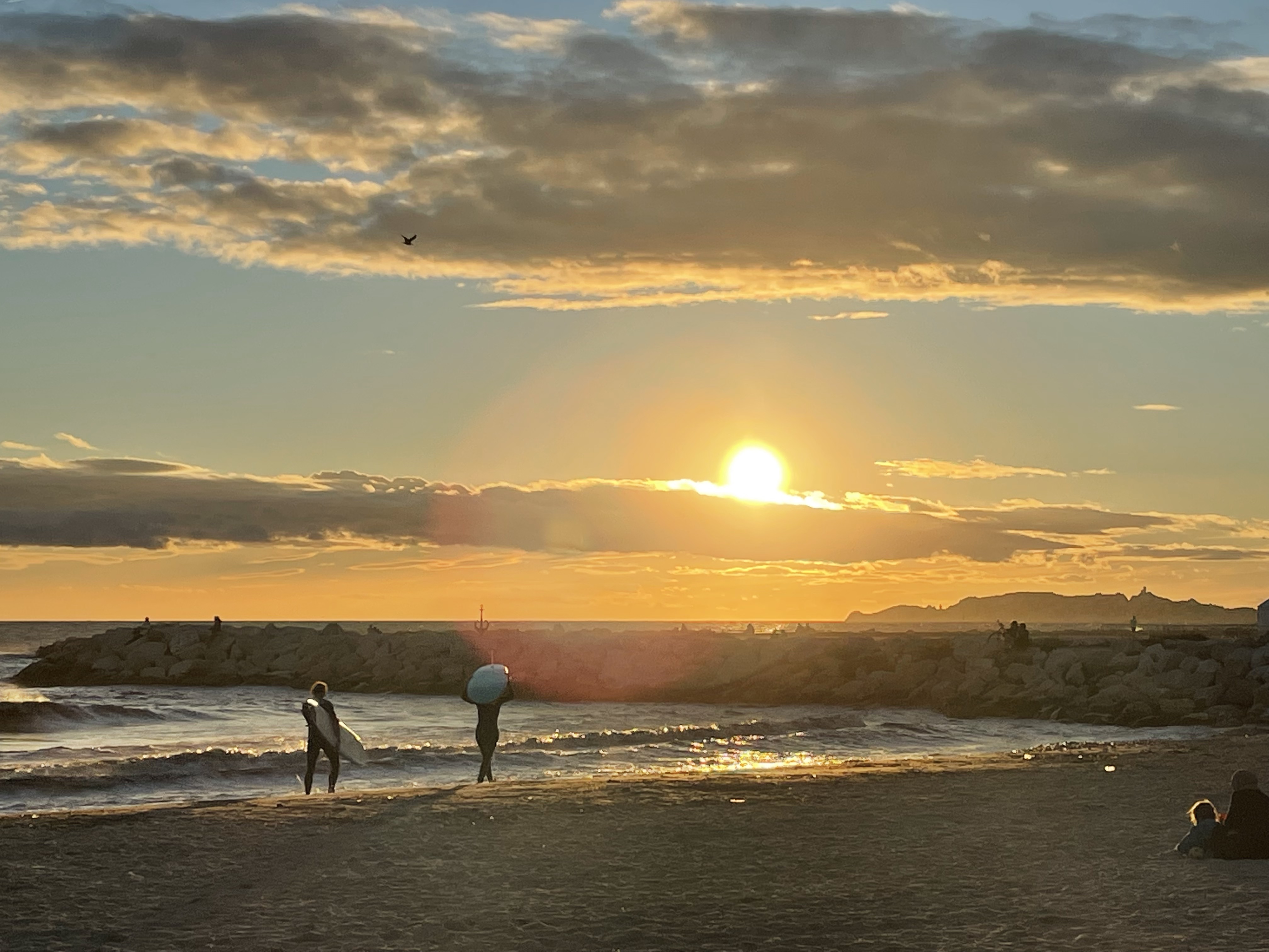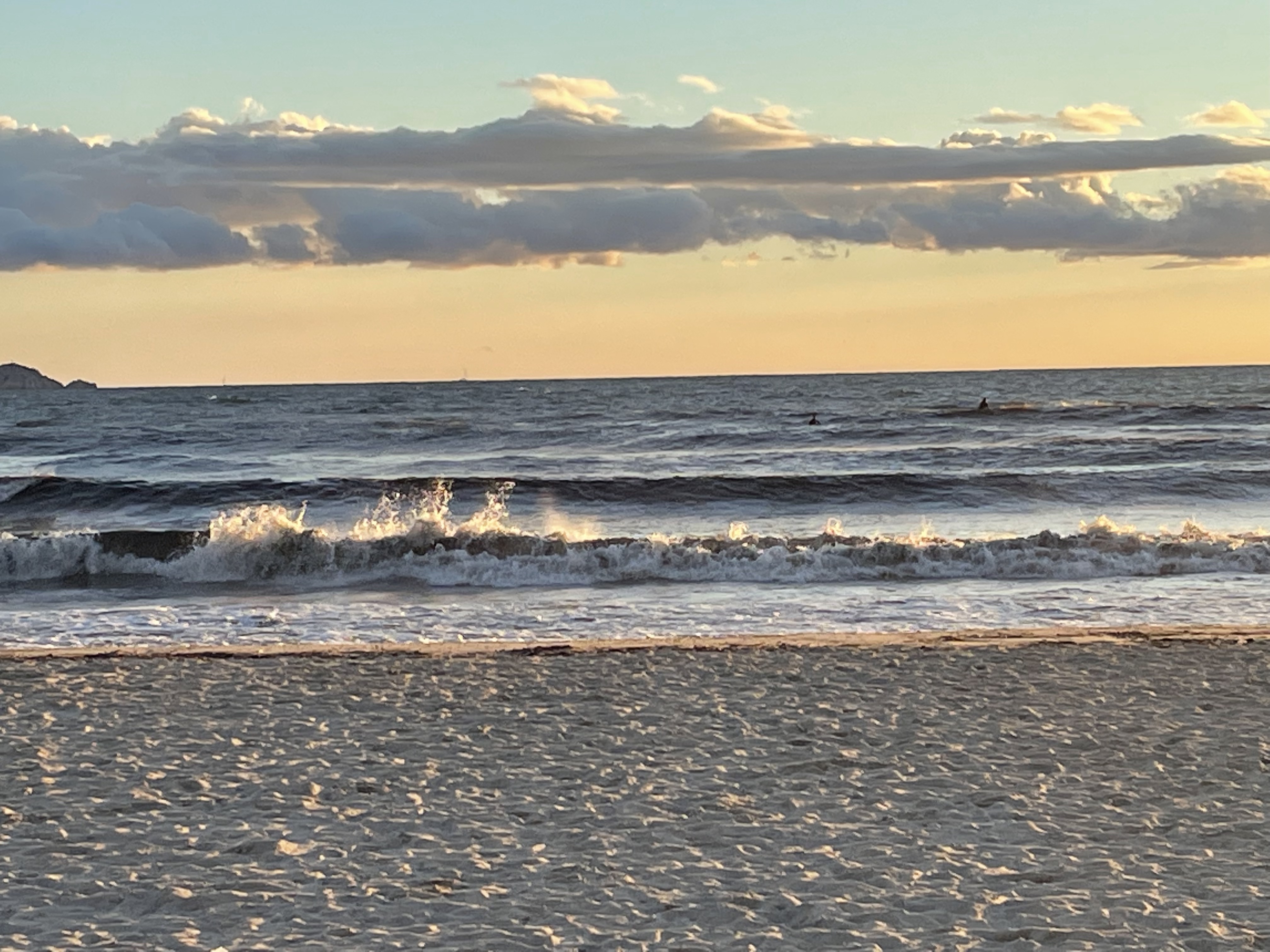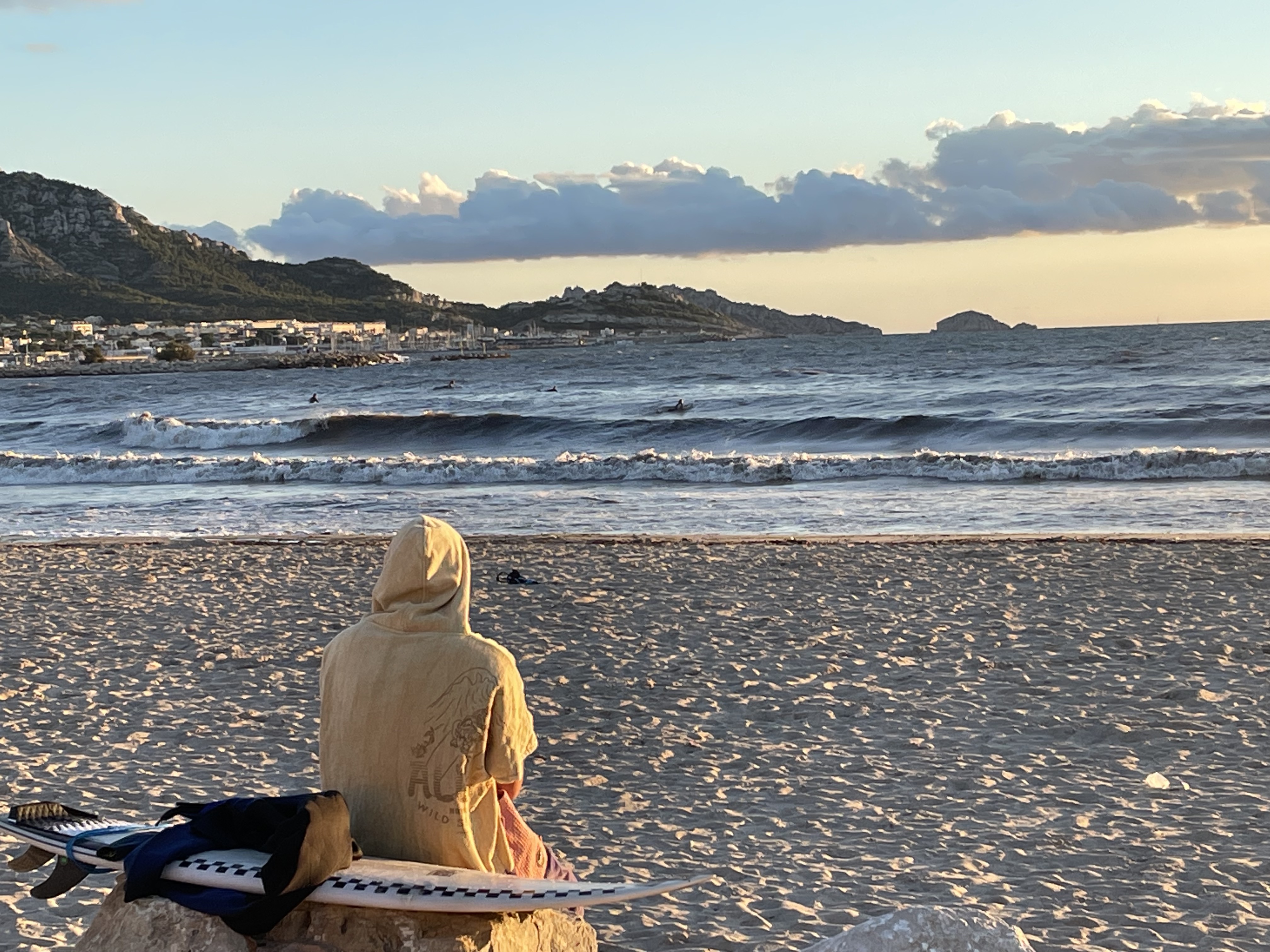 Pour me laver de toute cette fatigue, j’irai saluer les surfeurs. Je les regarde longuement : ils passent bien plus de temps à attendre, dans l’eau glacée, ballotés sur leurs planches, qu’à surfer. Mais je comprends que c’est déjà surfer, attendre de surfer : que surfer ne sert qu’à mettre fin au geste de surfer, c’est pourquoi on le repousse jusqu’à l’épuisement. Quand ils ont esquissé quelques pas de danse avec la mer, vaincus, les surfeurs rentrent. La mer indomptée de nouveau, se poursuit. Comme toujours.