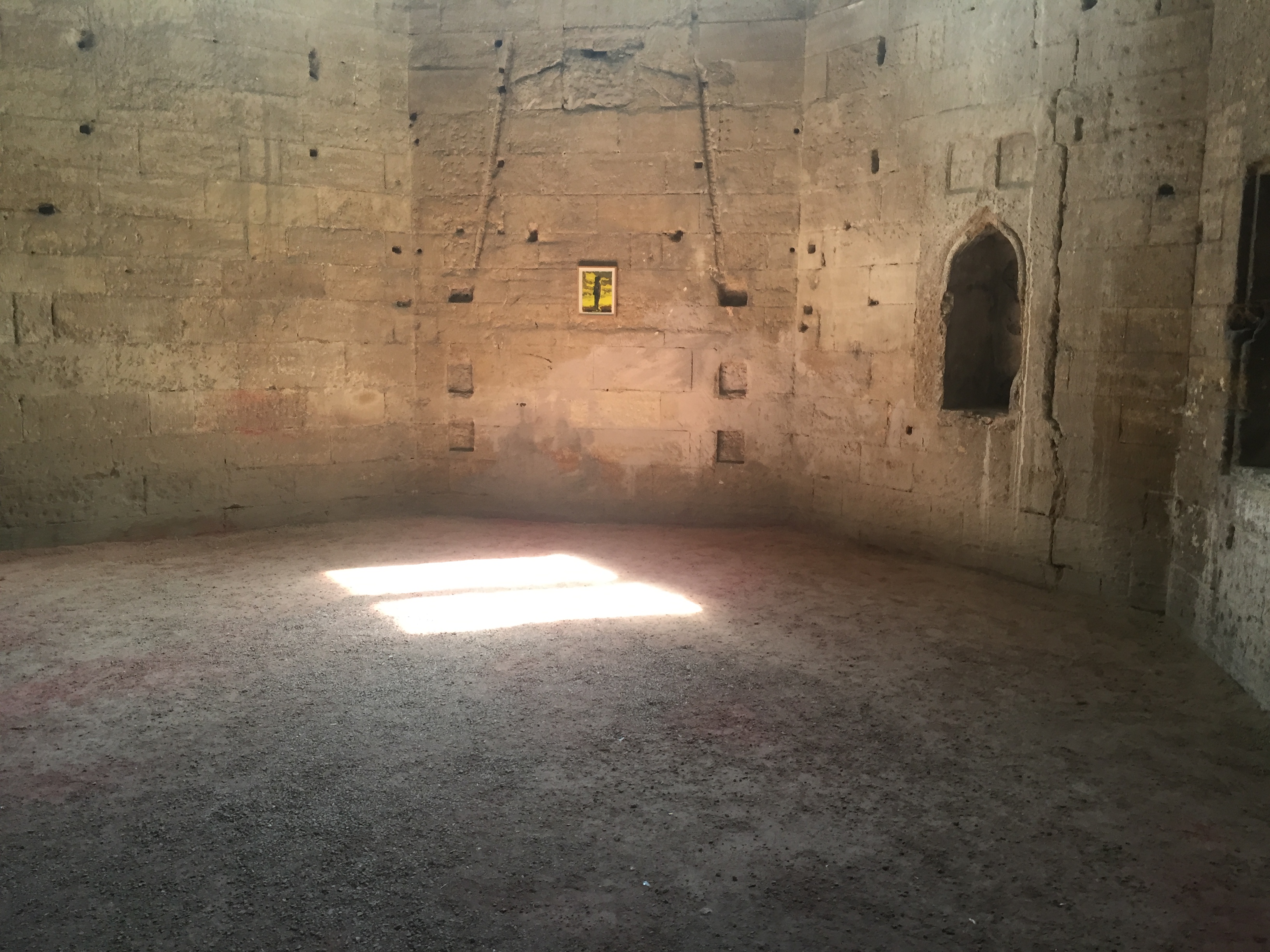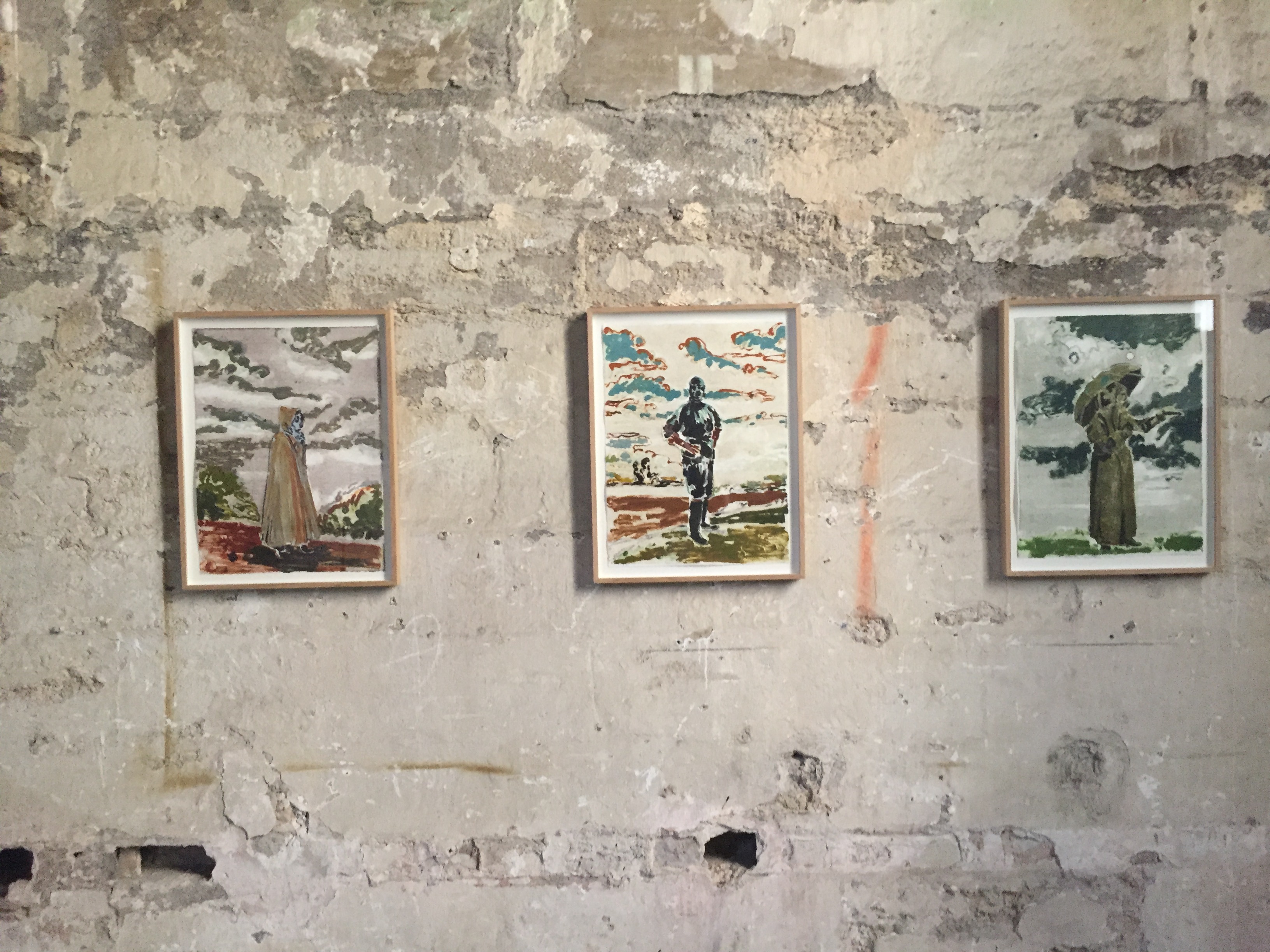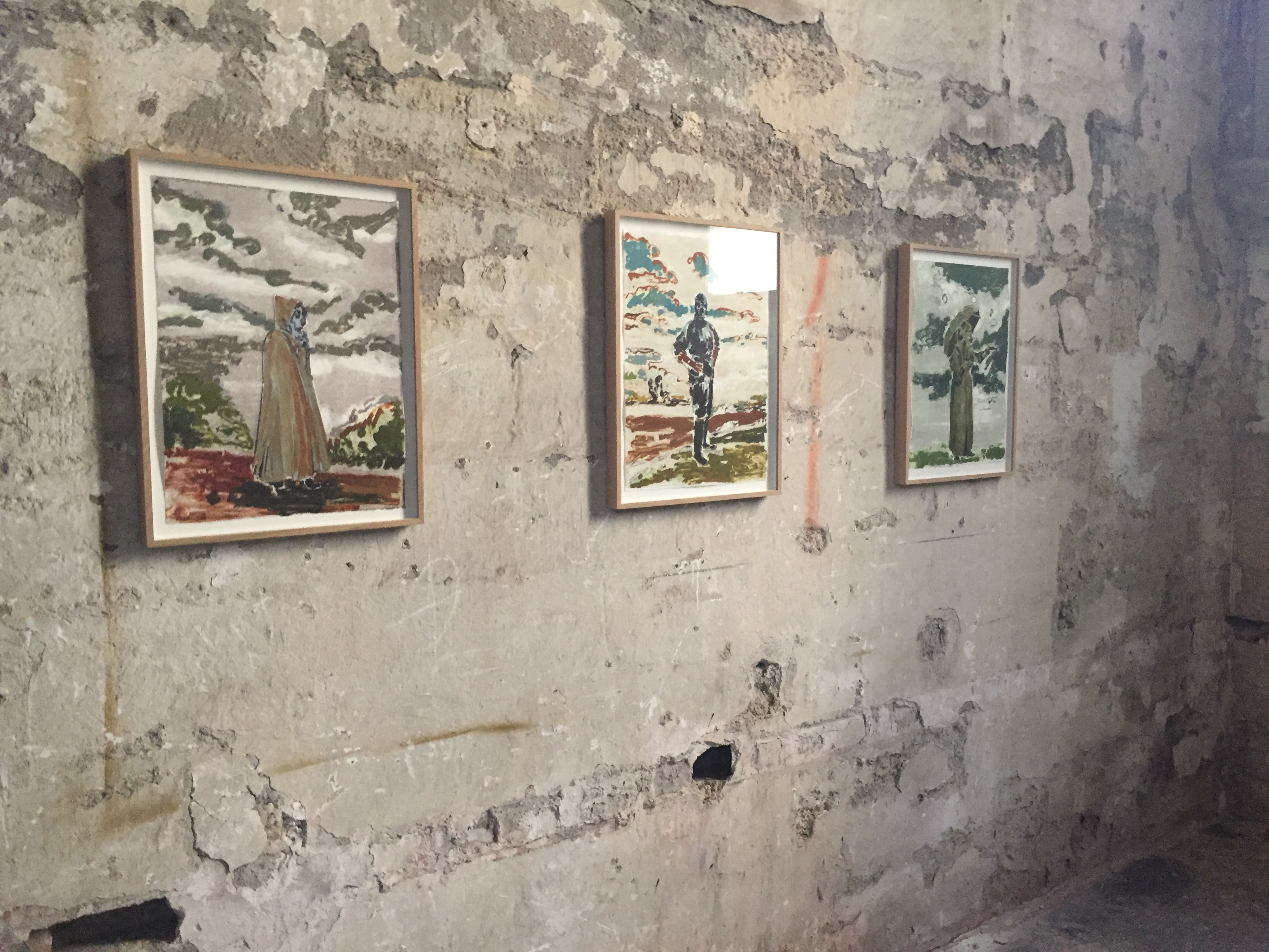 Elle est une hypothèse, une surface de projection : silhouette recouverte de latex sur paysage en décomposition, visage masqué de cuir comme pour un rituel inconnu, sadique et amoureux, ou voilé sous un masque à gaz dans un monde d’après la catastrophe : les portraits de l’errante errent à la surface de ces murs comme nous errons de l’un à l’autre, et en nous.