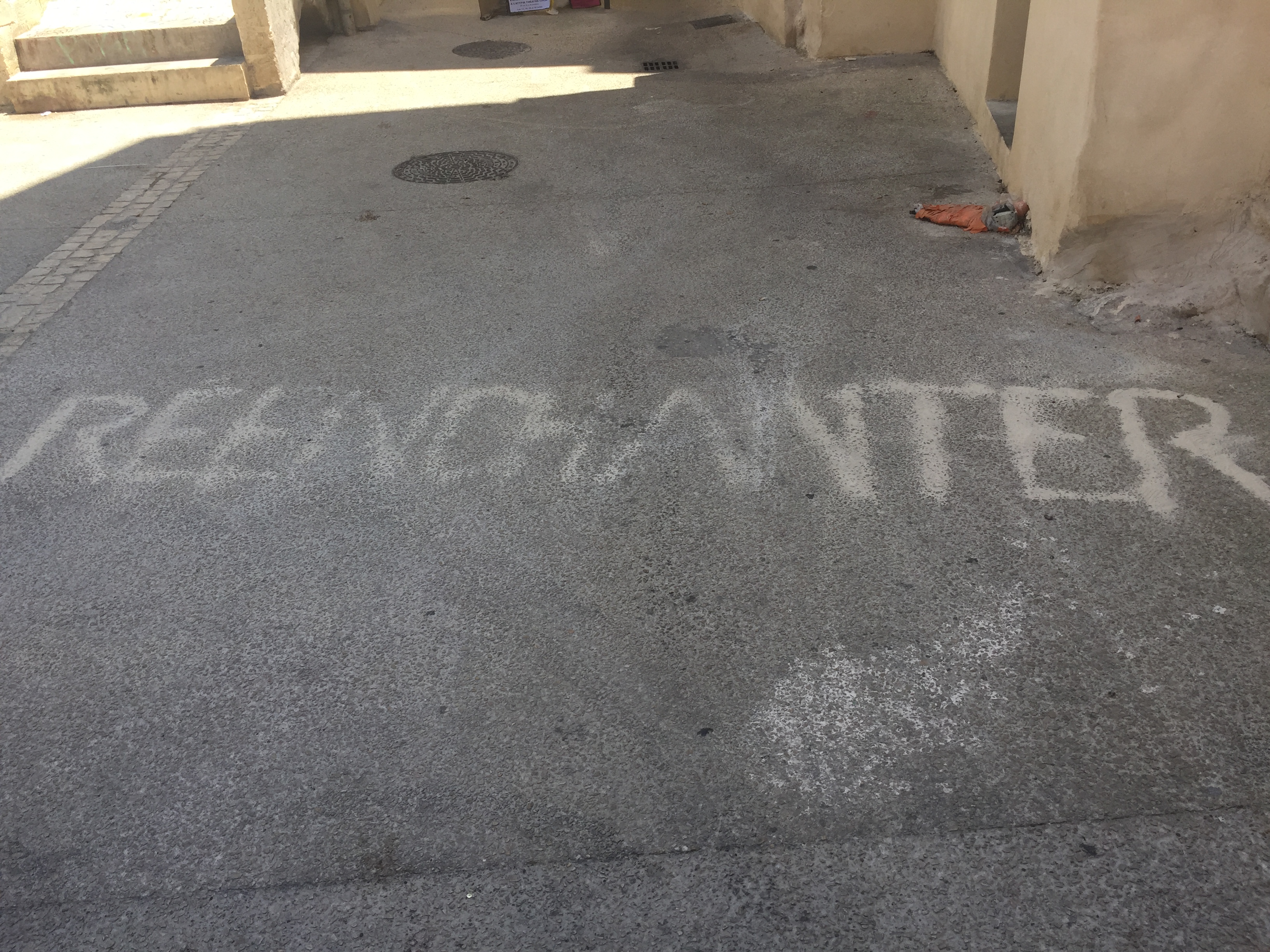 Cri : Elle est à qui ? (elle est à nous) / Elle est à qui ? (Elle est à nous) ; la rue : premier territoire du monde à prendre avant les palais qui sont de l’autre côté des rues, sur les hauteurs, là-bas.