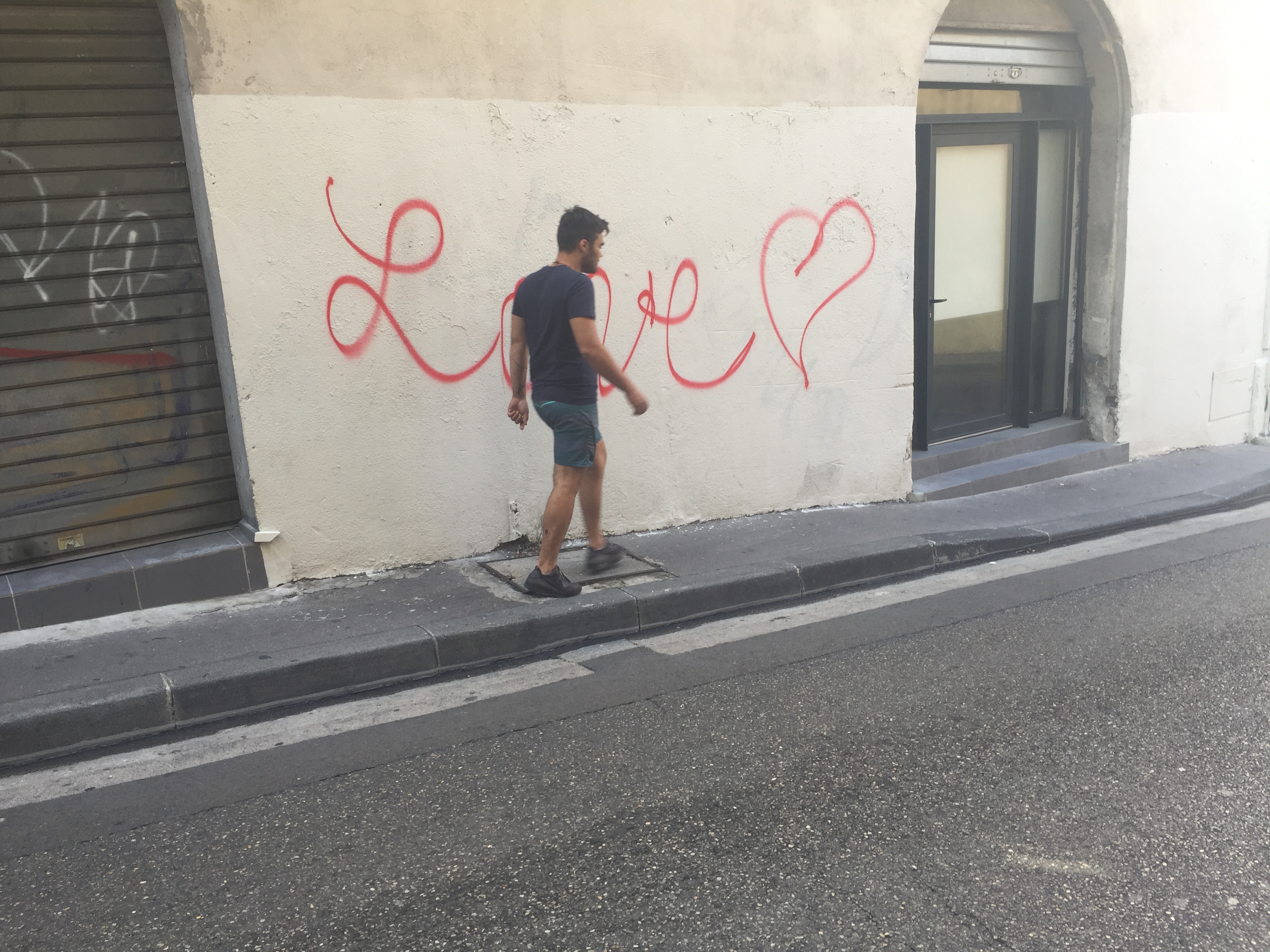 Dans l’ancien monde, rue se disait de ces tranchées dans les villes où on allait, d’un bord à l’autre du monde, parfois sans carte, et même parfois dans la nuit, et qu’on y faisait des rencontres, et qu’on prenait des coups, et qu’on cherchait les caresses, et parfois dans la solitude, ou tournait le coin d’une rue, il pleuvait, et tu étais là, et je t’aime.