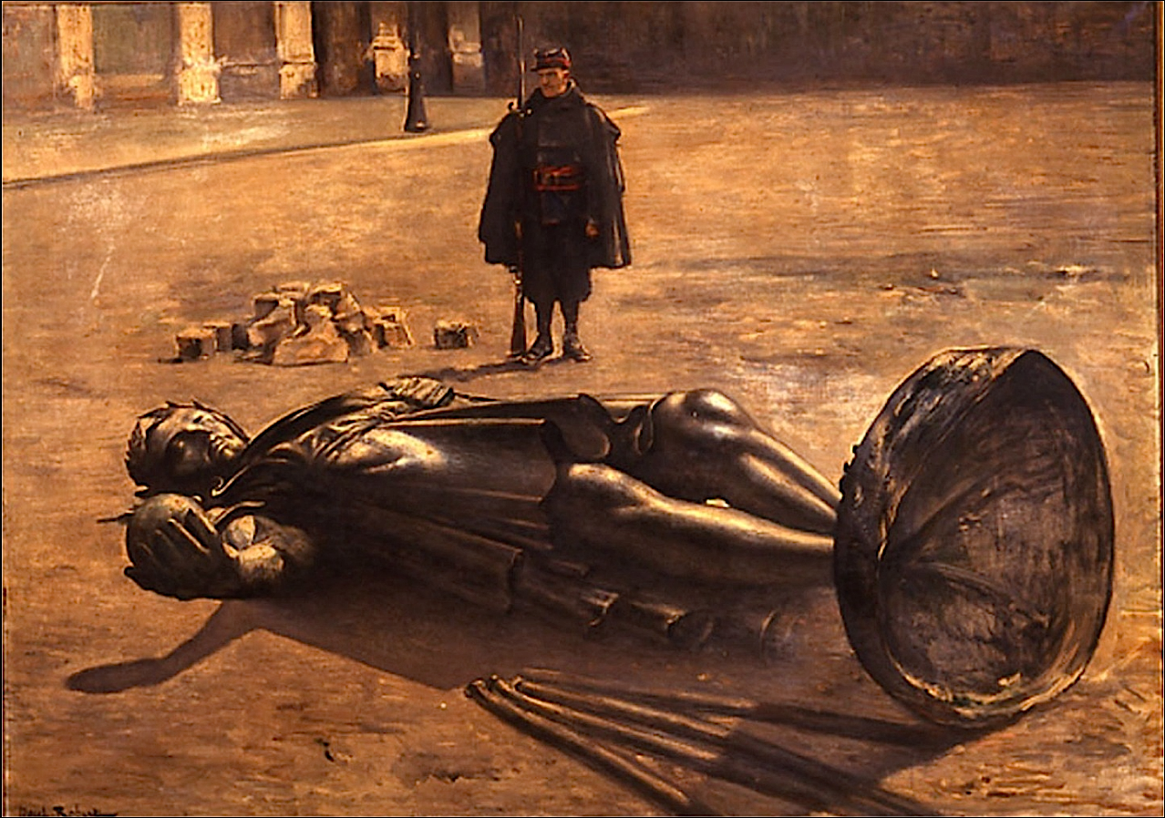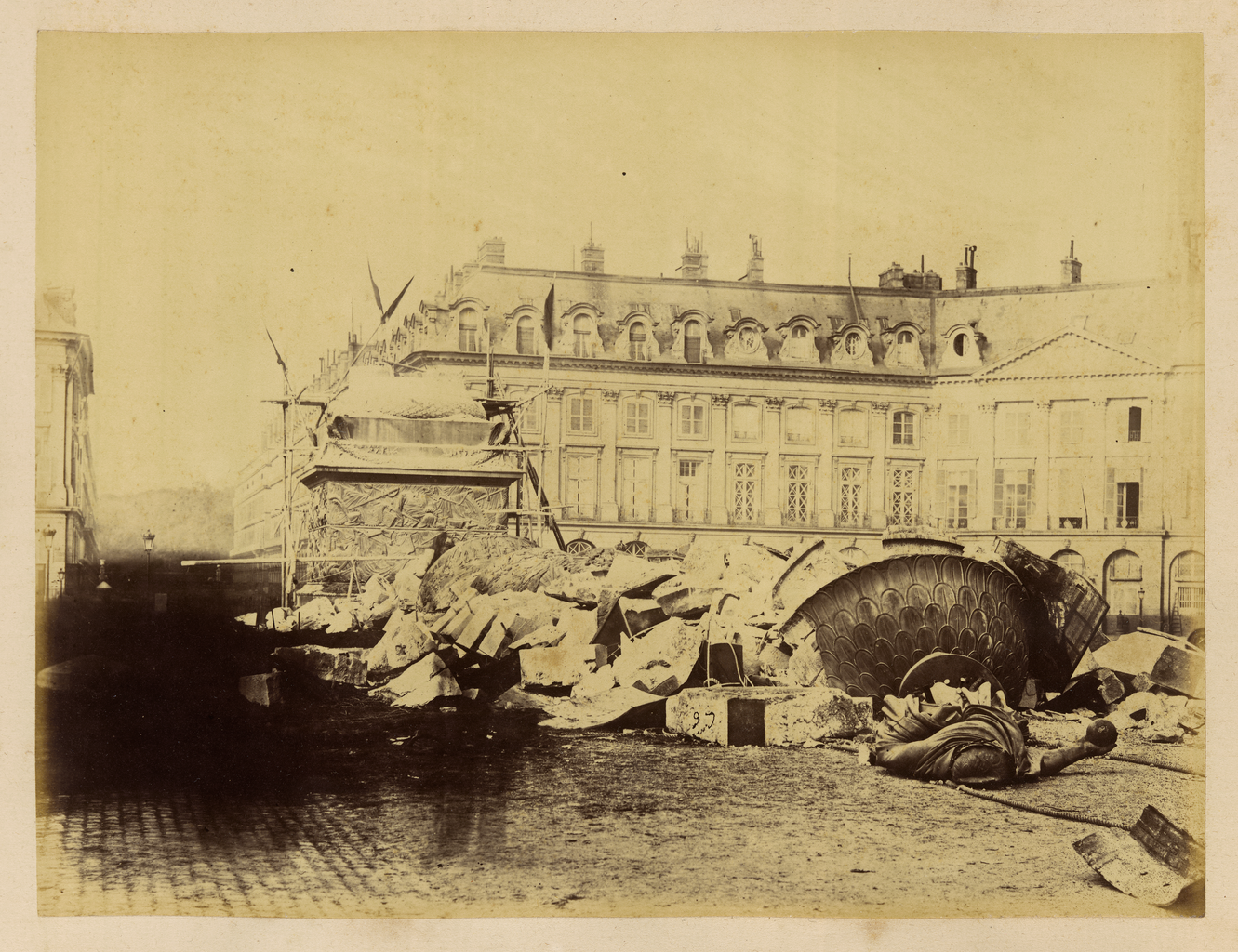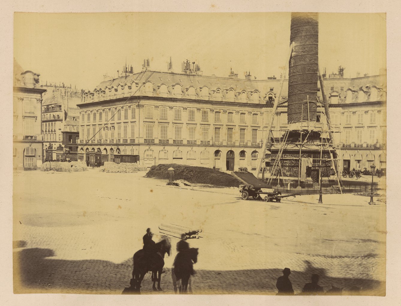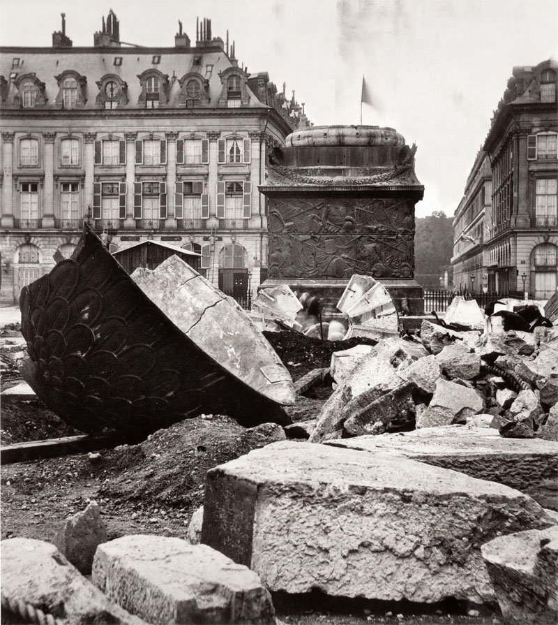 Nous sommes mardi. C’est le 16 mai. Depuis le matin, une foule s’assemble place Vendôme. Par décret du Douze avril, le gouvernement révolutionnaire a décidé en son article premier paru dans le Journal Officiel de la nouvelle République la destruction de la colonne impériale, « monument de barbarie, symbole de force brute et de fausse gloire, affirmation du militarisme et négation du droit, insulte permanente des vainqueurs aux vaincus, attentat perpétuel à la fraternité. »