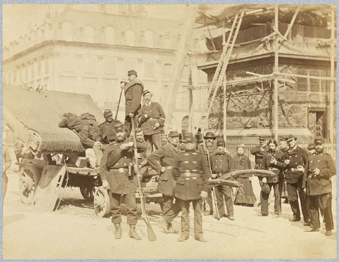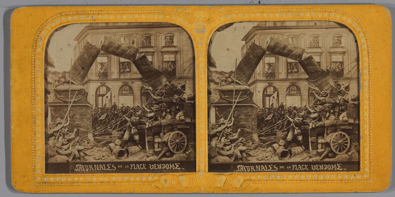 Et puis des dizaines d’autres témoignent des instants d’après : les Gardes nationaux au pied de la colonne renversée posent, le regard menaçant ou joyeux, brandissant le sabre, criant, levant le chapeau ou rêvant.