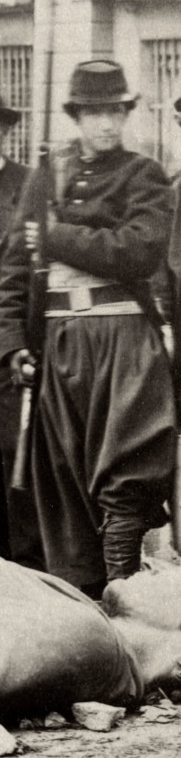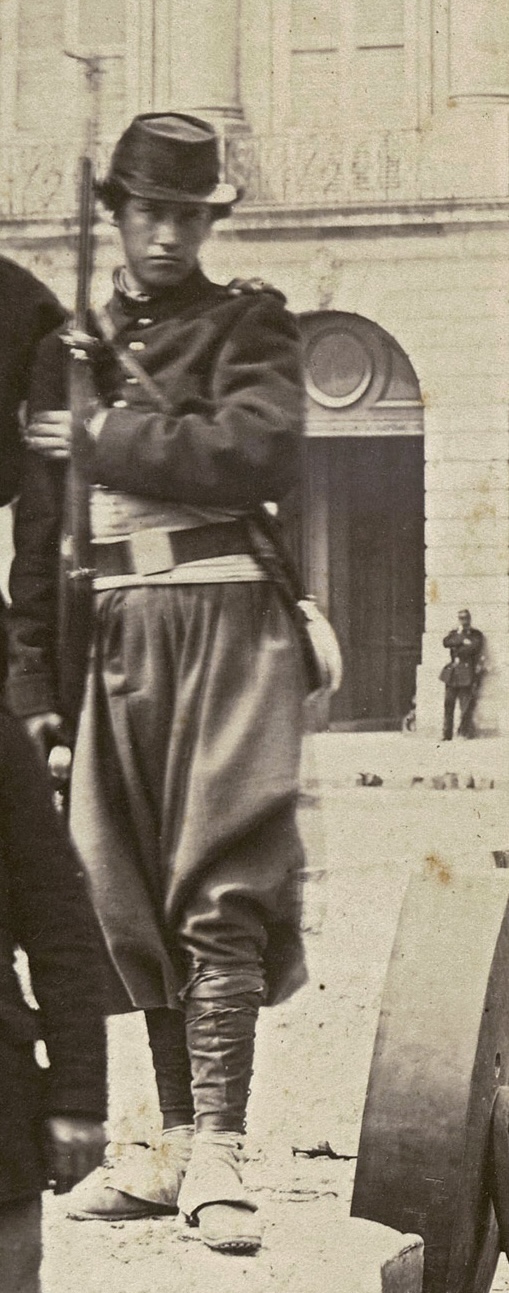 Le matin du 16, il se serait réveillé de nouveau dans Paris communarde. On lui aurait donné un fusil, un semblant d’uniforme, et le voilà place Vendôme, le regard furieux pour la pose et sur la pellicule de Braquehais toisant les ruines répandues à ses pieds des vieux Empires.