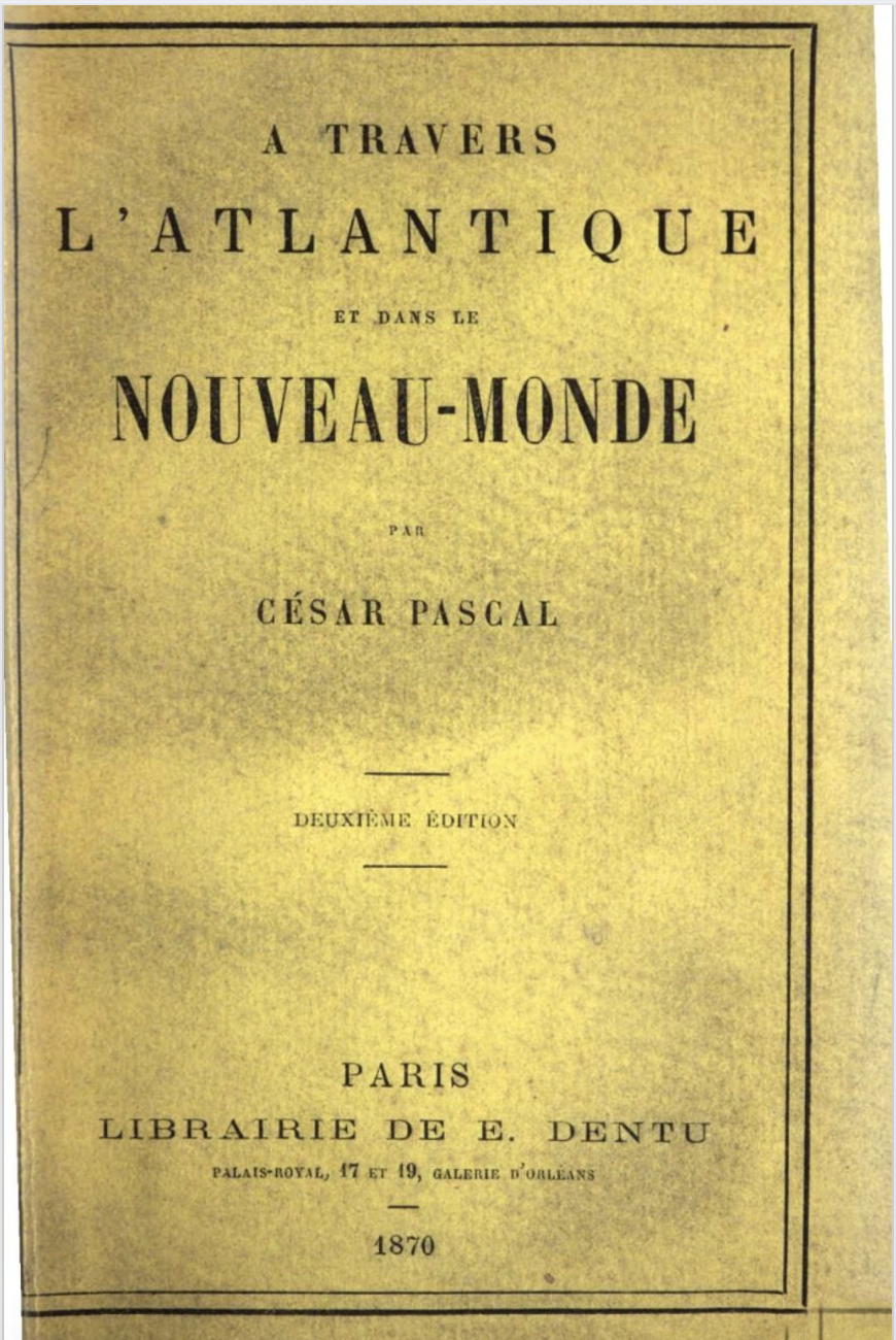 Mars 1871. Rimb. entre dans la librairie du bon imprimeur Lemerre — j’ai vue quelques nouveautés chez Lemerre —, écrit-il presque aussitôt à Demeny. Mais pas seulement. Il ne dit pas ce qu’il fait, quand il sort du 47 Passage Choiseul et débouche rue des Petits Champs alors il faut inventer. Mais est-ce qu’on invente, quand on sait, que trois cents mètres séparent la librairie Lemerre de la librairie Dentu, et qu’un garçon de 16 ans qui fait le tour des libraires du passage Choiseul au Palais-Royal ne saute pas une vitrine. Il suffit de fermer les yeux et on le voit, regarder la vitrine Dentu, l’éditeur de récits de voyage : voilà, il est entré. Il regarde les grosses couvertures, pose les mains sur l’une d’entre elles, regarde le titre. À travers l’Atlantique et dans le Nouveau Monde, tableau d’une Amérique en fusion – c’est signé César Pascal, il l’emporte évidemment, un titre pareil, vous n’y pensez pas.