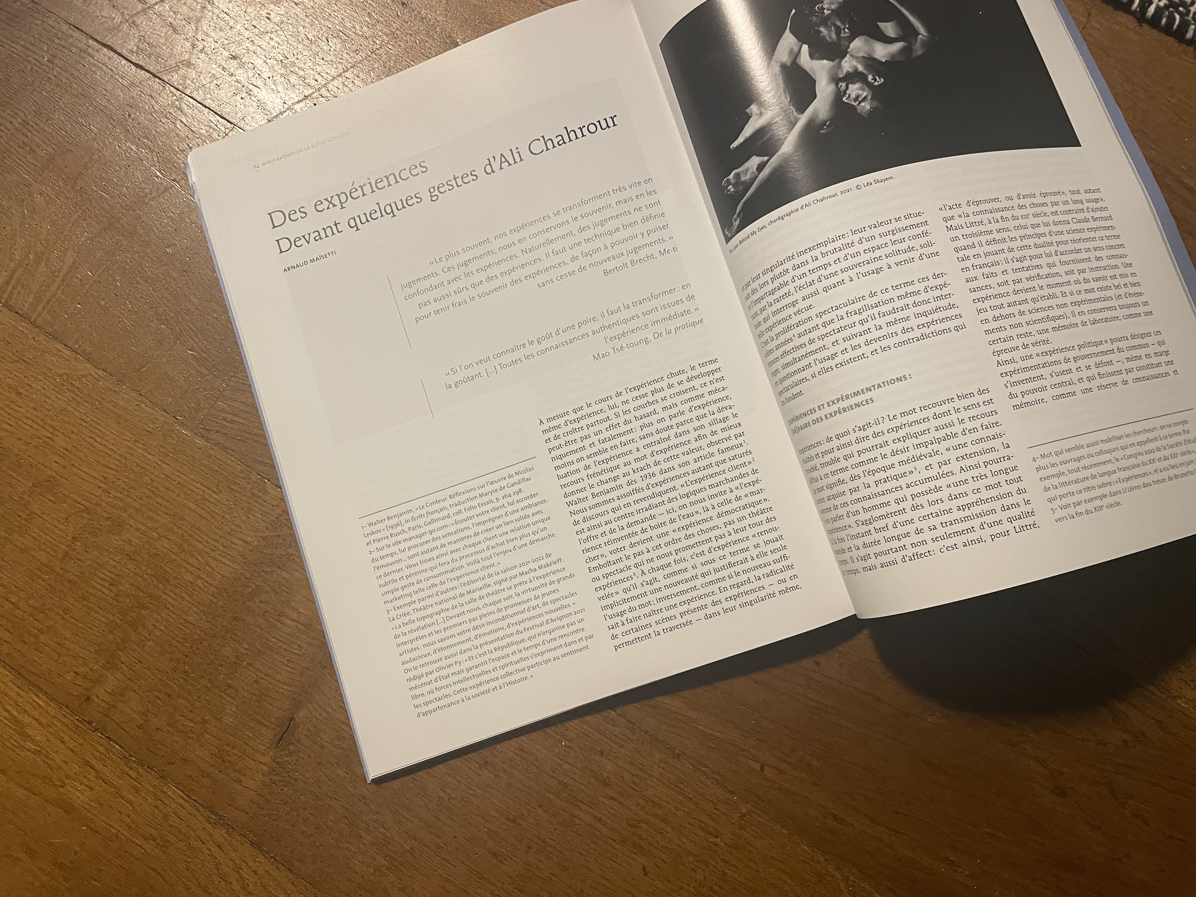 J’y parle des enjeux de ce que l’on nomme « expériences », à partir des dernières créations du chorégraphe libanais Ali Chahrour.