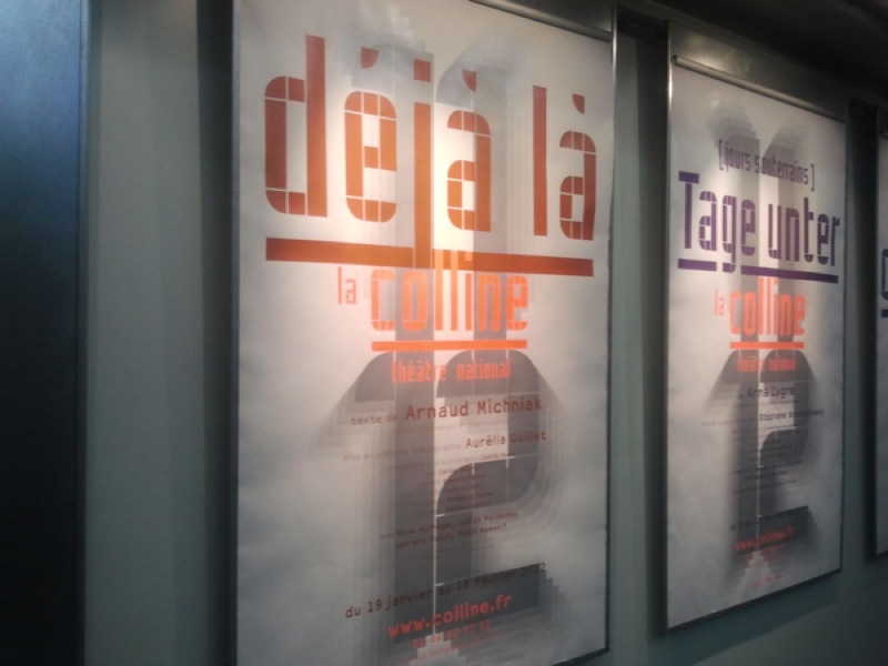 Troisième spectacle : écrit au présent, créé cet hiver, texte né d’improvisations sur le plateau et d’entretiens dans un va-et-vient entre la scène, la table d’écriture et le monde ; d’un dialogue entre Arnaud Michniak l’auteur d’une part, et Aurélia Guillet la metteur en scène et les acteurs d’autre part : le monde entre tout cela, les entretiens avec le dehors — Déjà là.