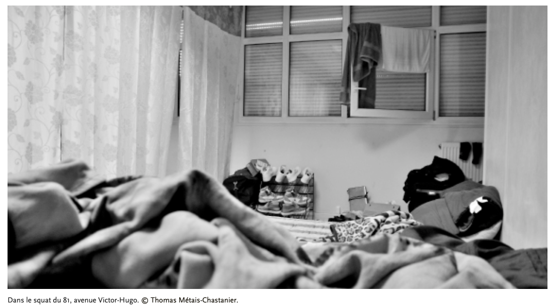 « La vie bouge, mais le théâtre l’attrape [3] », avait demandé Marie-José Malis ; elle ne se laisse pourtant pas facile- ment attraper. L’actualité est intempestive, invisible et labile. Ils croient parfois la saisir sous la figure d’un méde- cin ou d’un chauffagiste, mais cette actualité échappe — au présent ou au théâtre, qui voudrait la nommer ? Ce ne sera finalement pas dans les rues d’Aubervilliers que les trois artistes trouveront l’actualité, mais dans la médiation des actualités. Un article publié par Mediapart [4], lu au cours du projet et mis d’abord de côté. « Depuis le 11 août, environ quatre-vingts immigrés venus principalement de Côte d’Ivoire ont choisi d’occuper le 81 de l’avenue Victor-Hugo, un immeuble qui abritait auparavant les locaux de Pôle emploi. » En fait, ils sont là depuis la nuit du 4 août, et viennent égale- ment d’Afrique du Nord et du Bangladesh ; les « quatre-vingts d’Aubervilliers » sont la réunion de plusieurs collectifs qui vivent dans la ville et ses alentours depuis quatre mois [5]. L’actualité est un présent complexe, avec ses durées et ses résistances. Des collectifs comme ceux- là, il en existe tant ; et ces destins sont ceux de milliers d’autres hommes et femmes. Ils ne font l’actualité qu’au gré de brusques accès de violence policière ou quand se formule autour de ces hommes et femmes un projet commun. Peut-être l’actualité ne peut-elle avoir lieu que si elle trouve un lieu ?