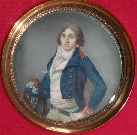 Portrait anonyme (en mission, redingote bleue, coiffe tricolore à la main droite).